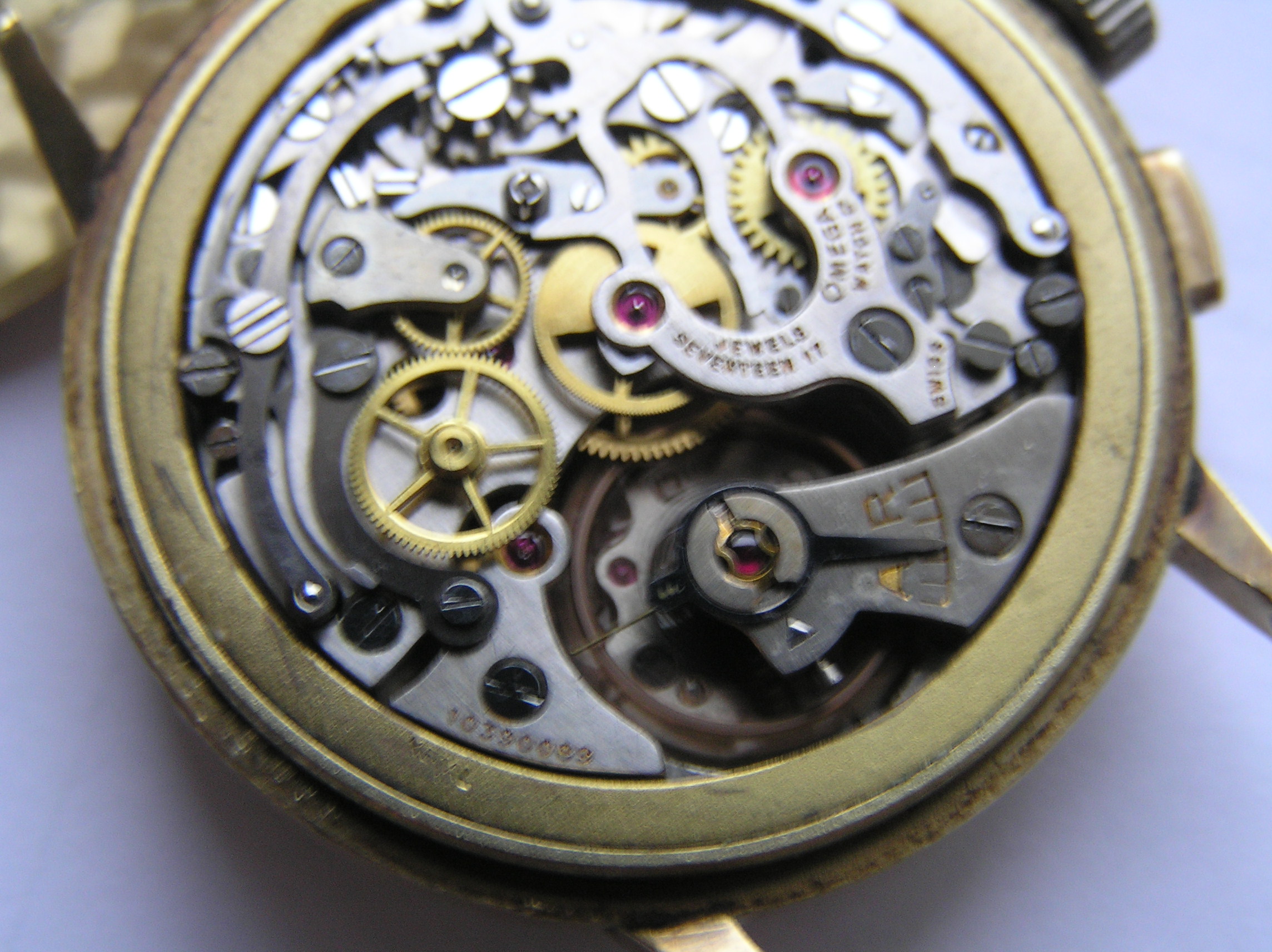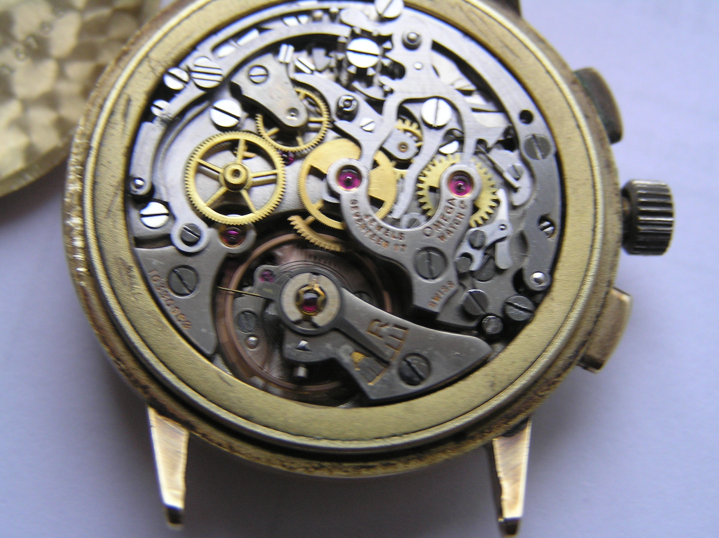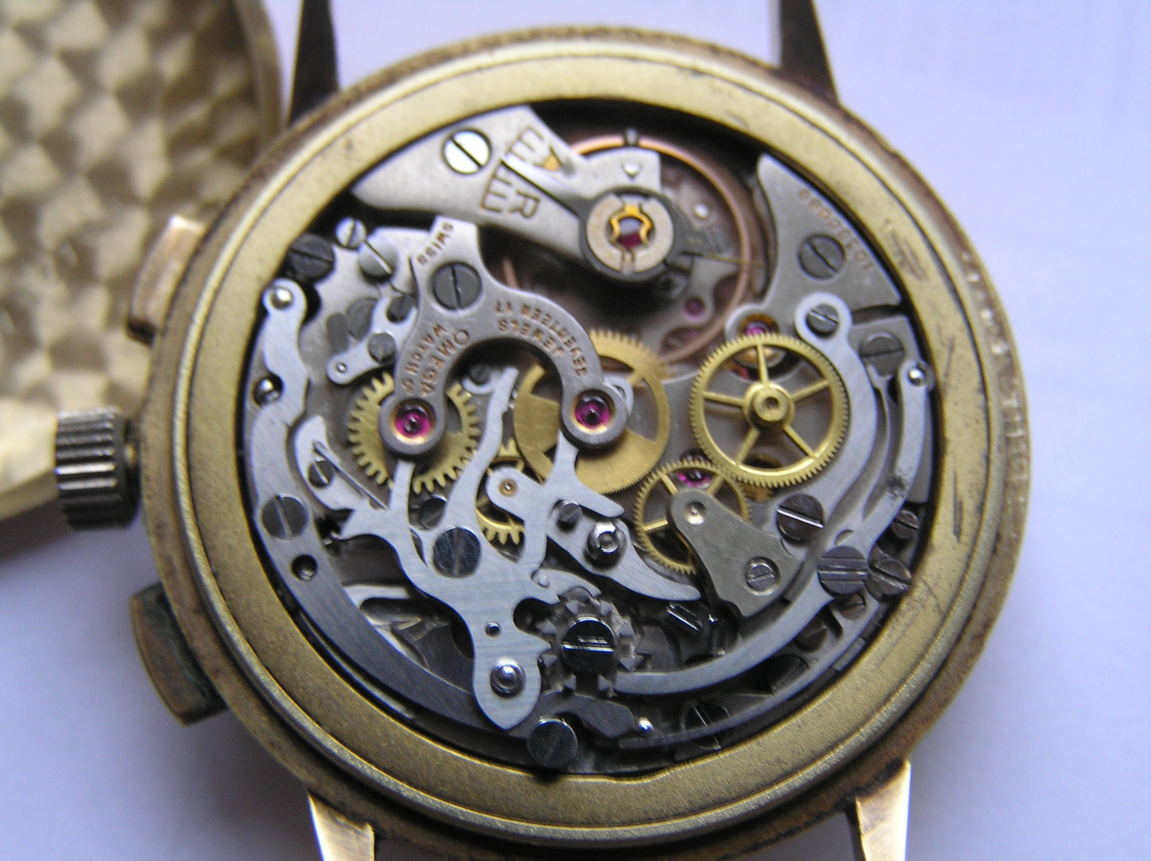 ·hello all. i recently obtain a 14k gold omega watch. cal 27 c12, case ref 10716765 , that shows wear. i was wondering if it is worth restoring. as you can see from the photos , its not perfect , the movement is running well,and keeping good time. but the chrono,s appear to be broken. plus there,s damage to the dial.. would this watch have been made for the french market. as it,s one that i have never seen before. please note that the photos are not sharp, due to the bad lighting as its raining and overcast... any info would help. . thanks again to all......
