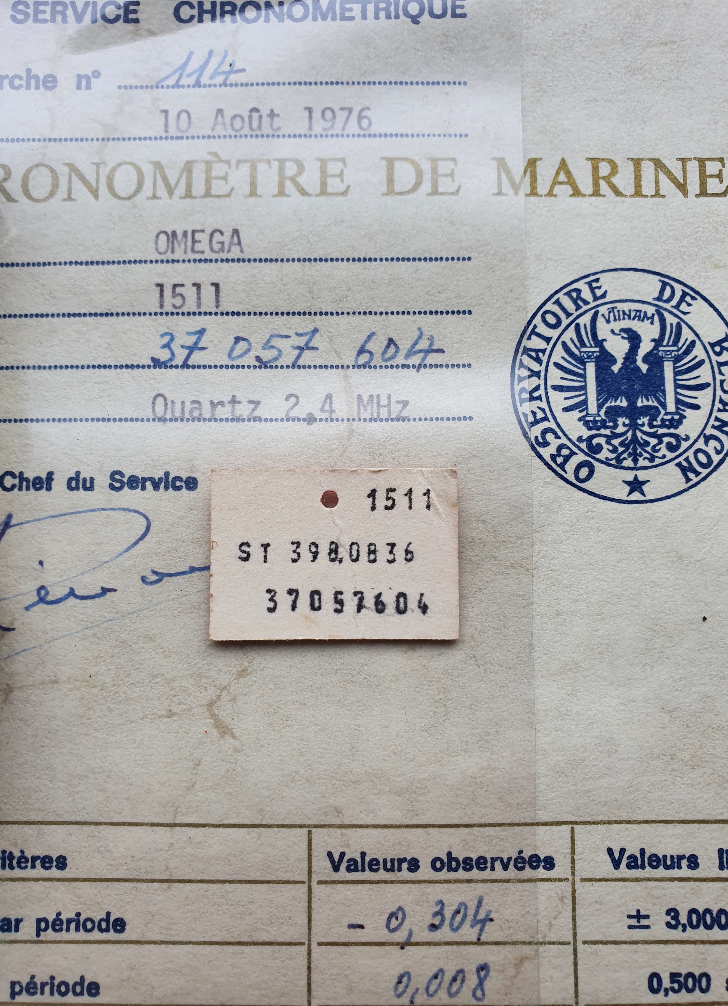 ·Omega 1511 Constellation Megaquartz Marine Chronometer 37m serial circa 1975/76.