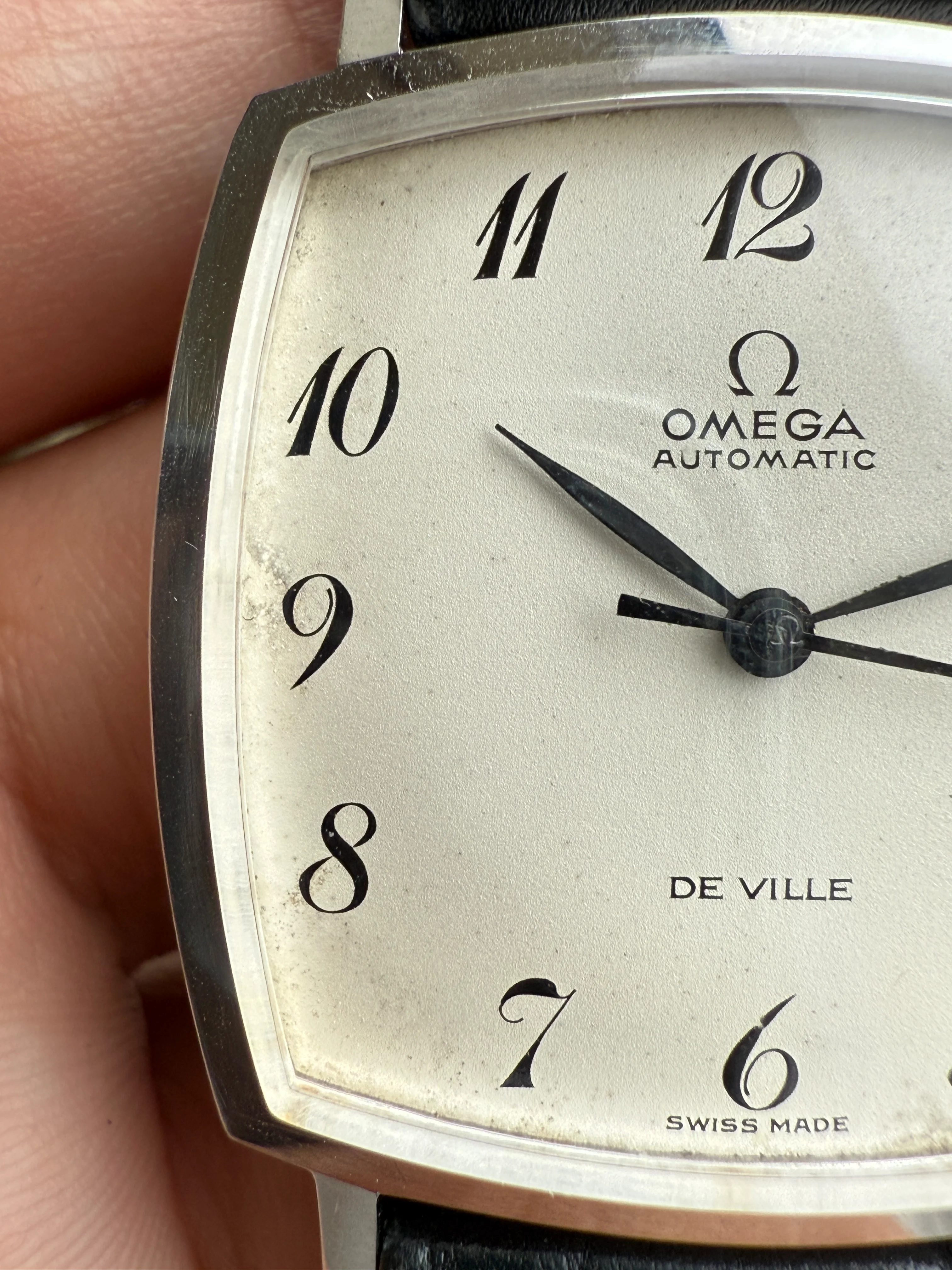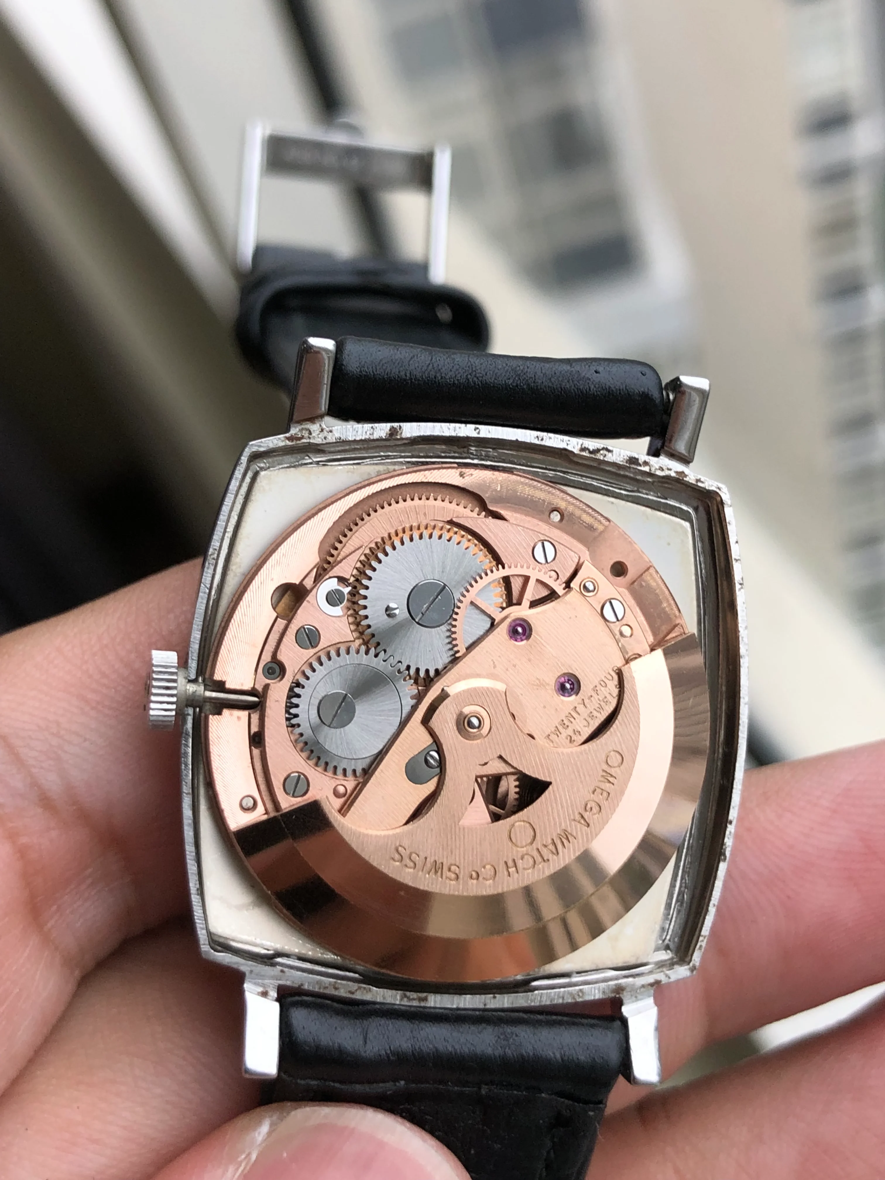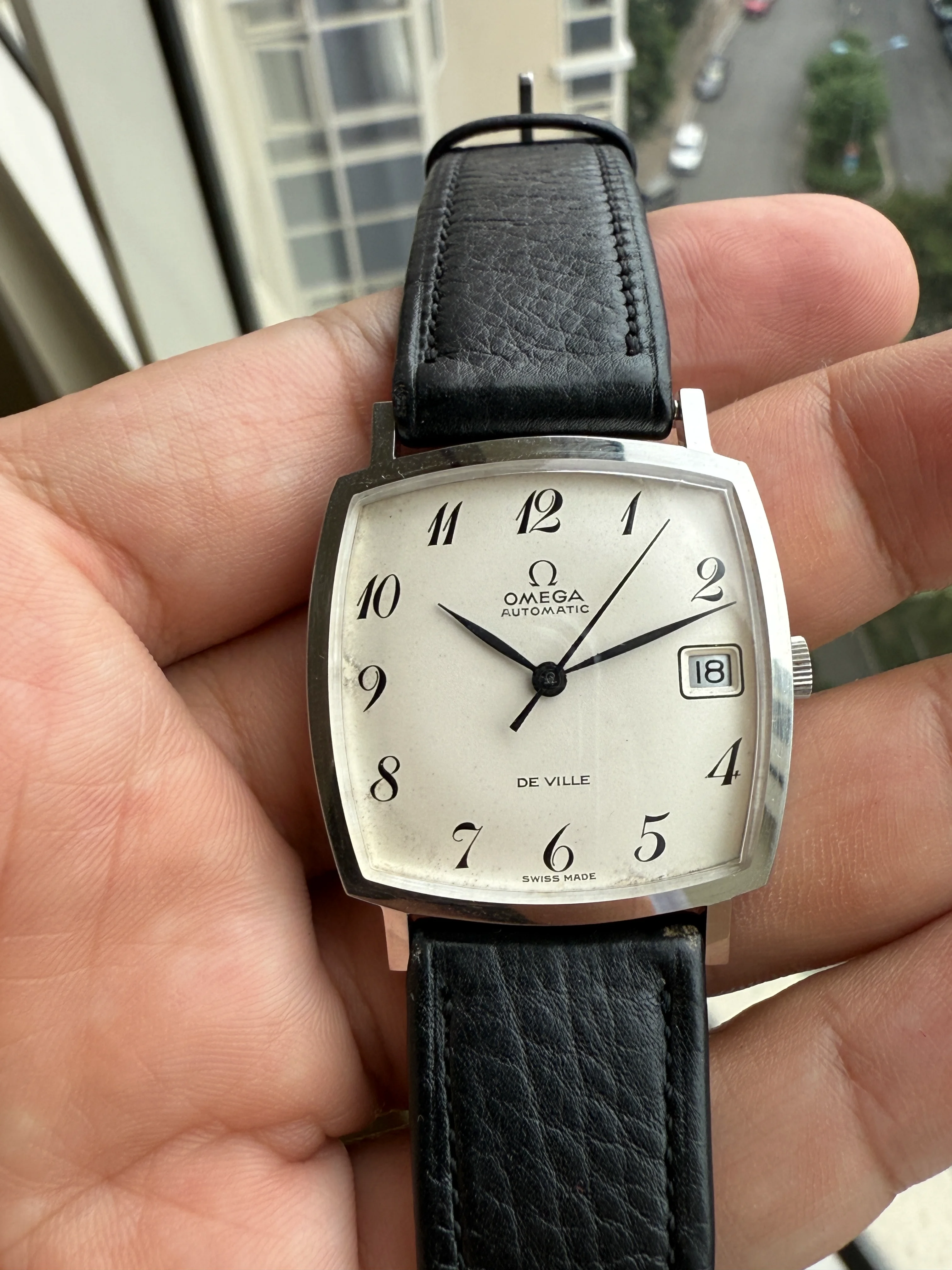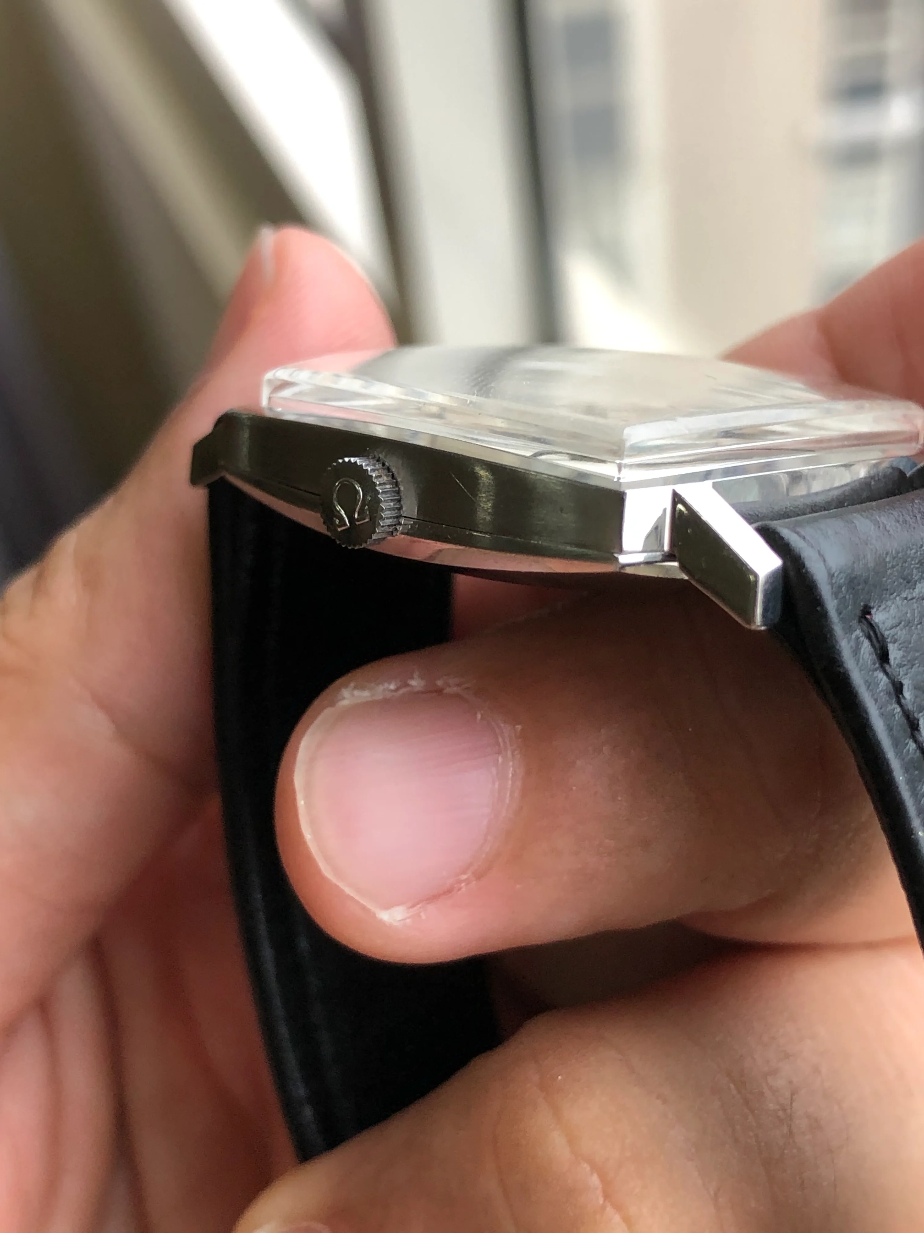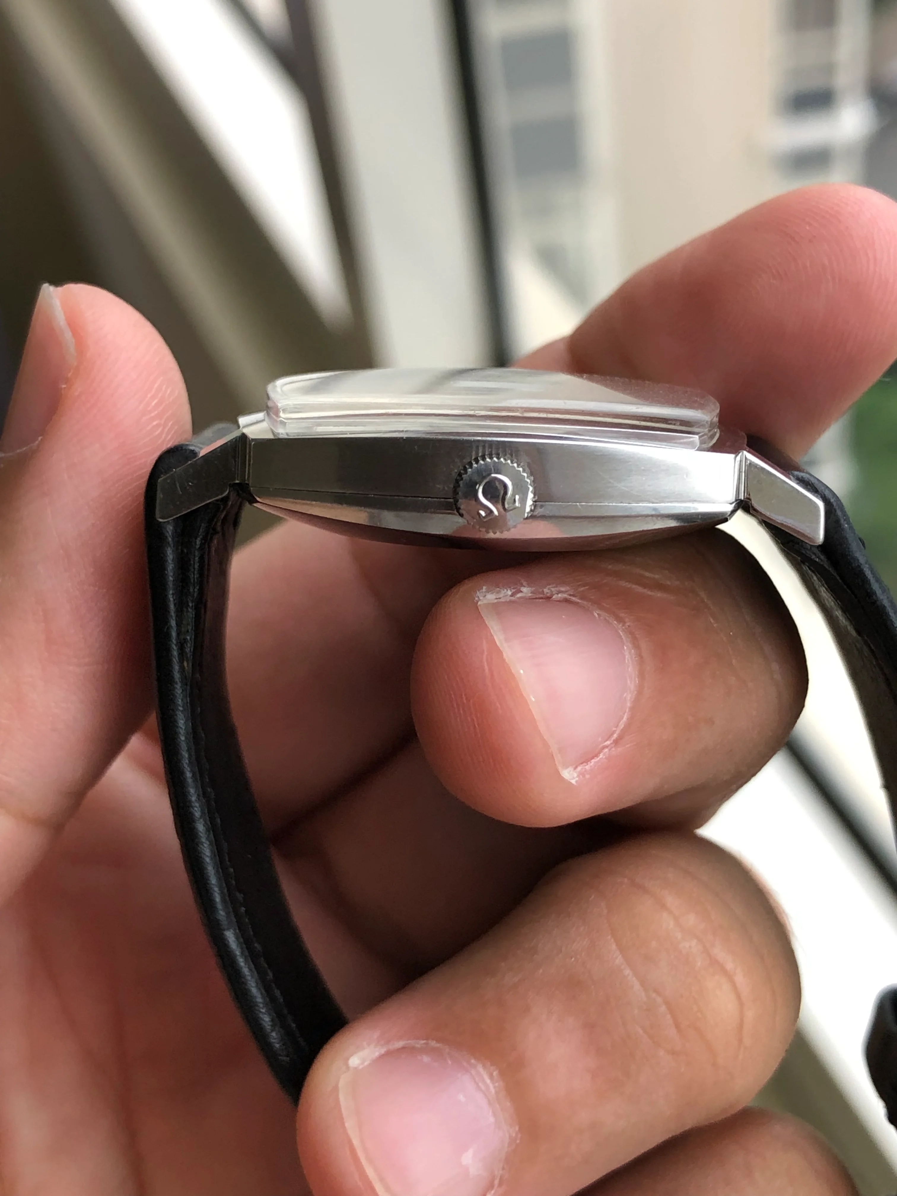 - Case: The diameter is 32x32mm without the crown. Original case is in good condition with scratches. Omega knurled crown.