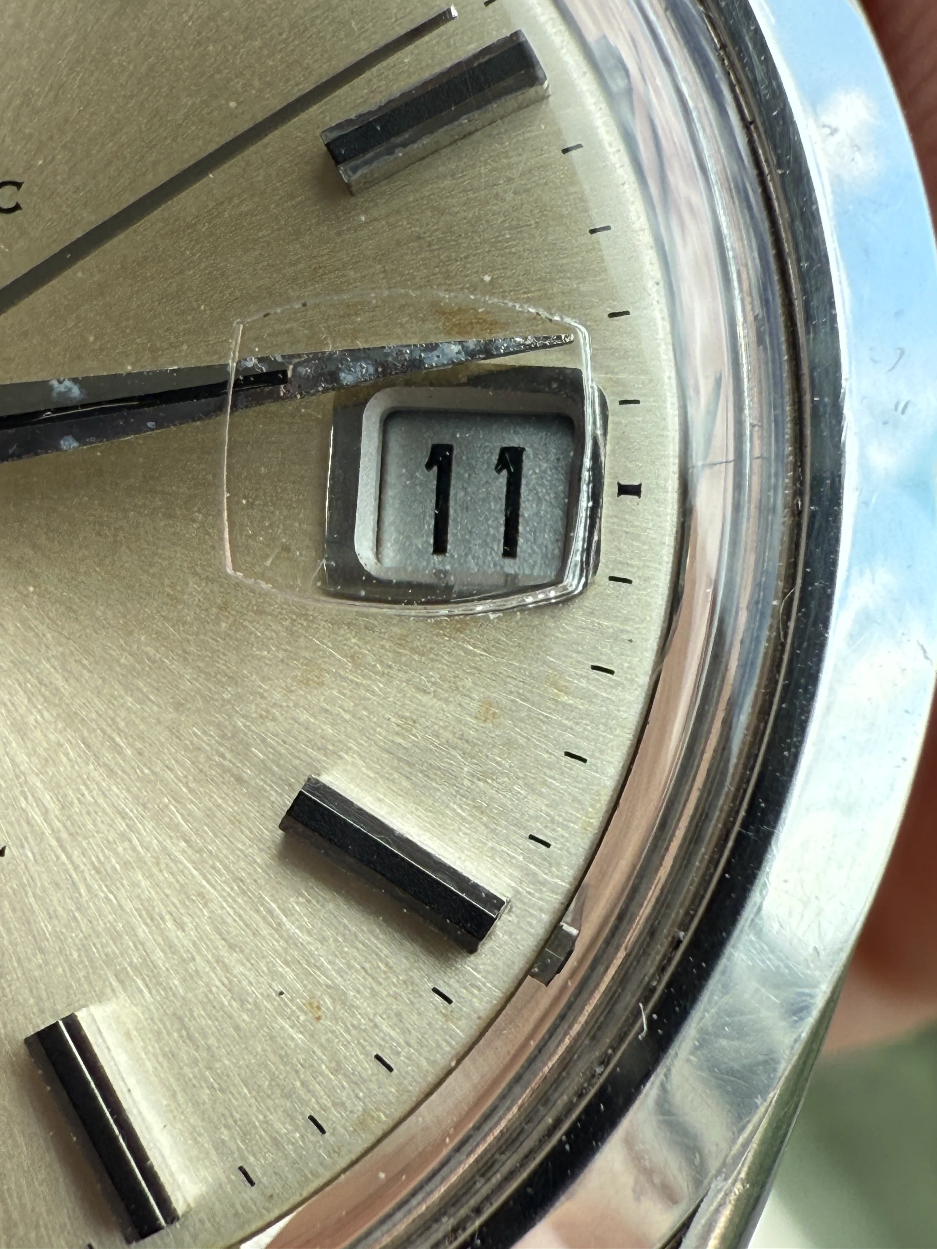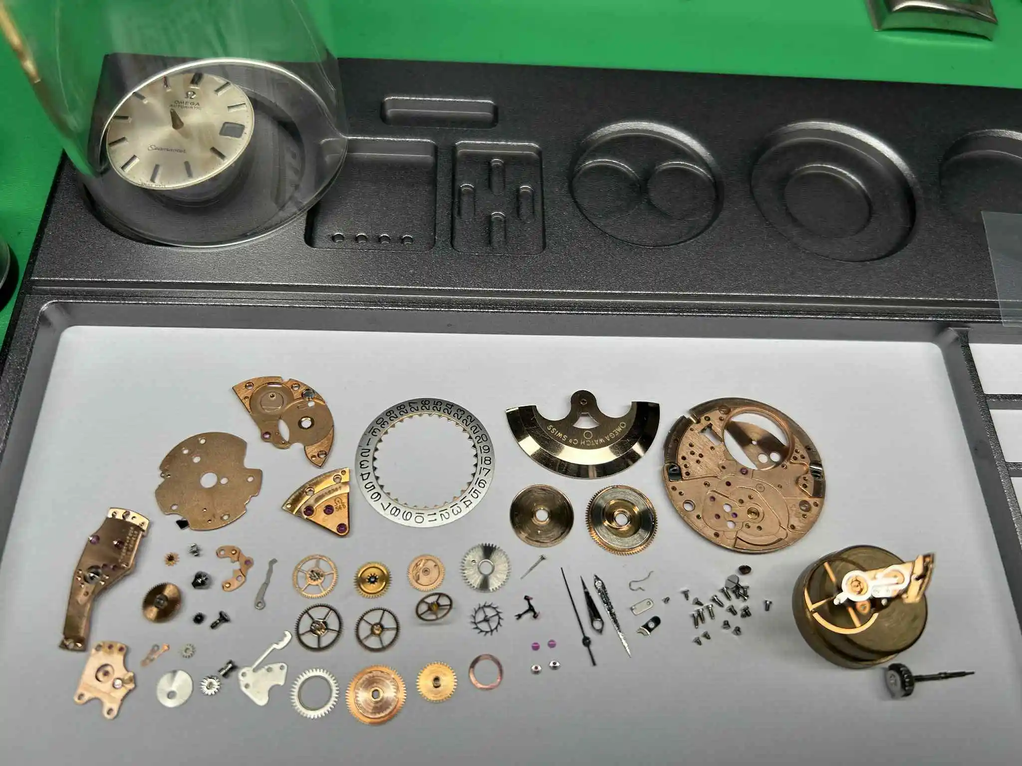 - Glass: Original with Omega logo, magnifying window at 3.