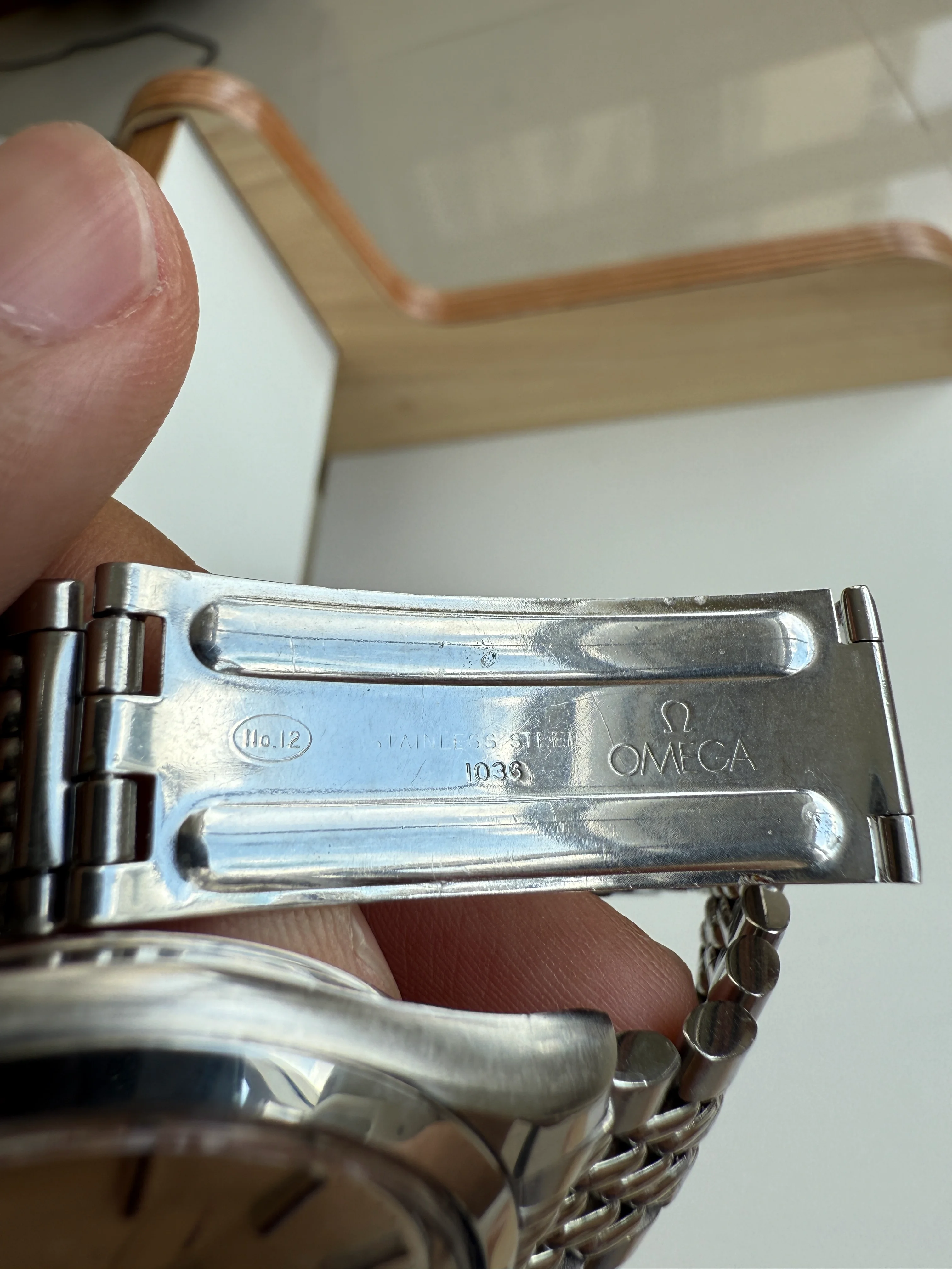 - Bracelet: Original Omega bracelet reference 1036 with 11 end-links in good condition, triple fold clasp featuring micro-adjust with Omega logo.