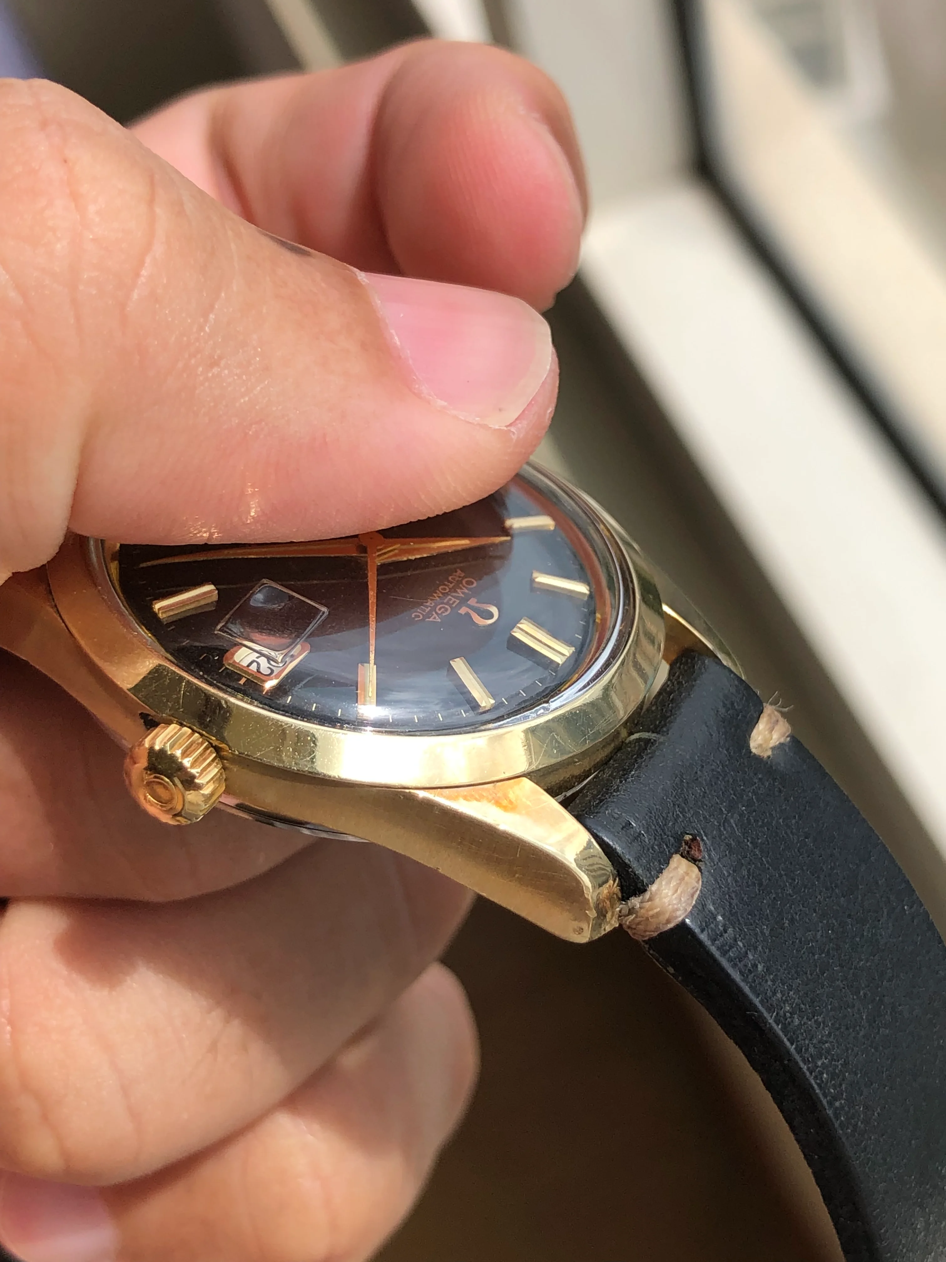 - Glass: Original glass in good condition with Omega logo, magnifying window at 3.