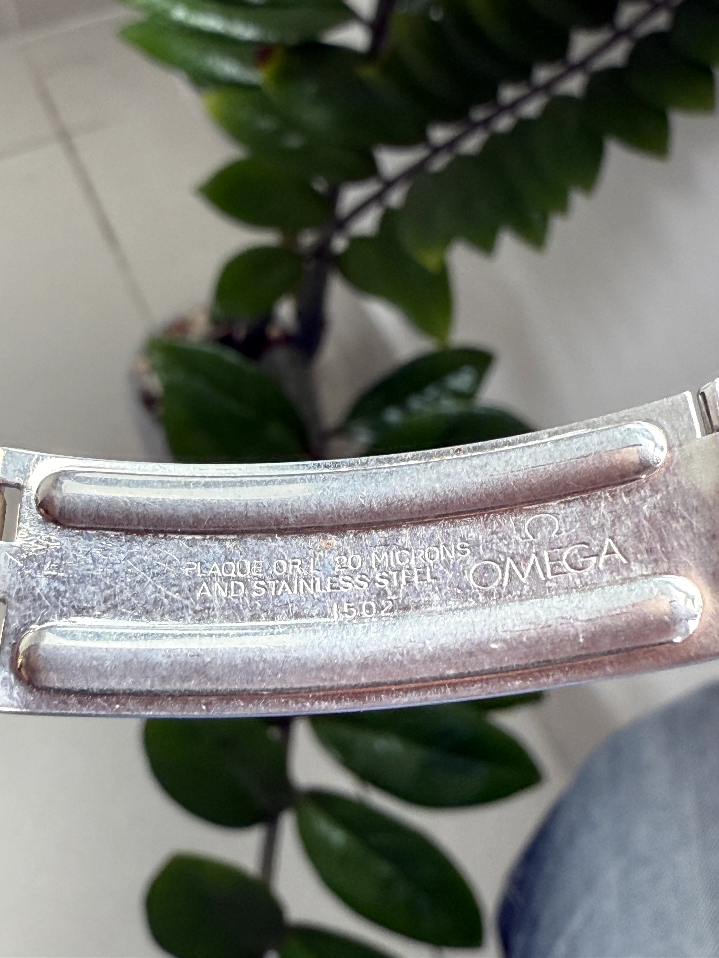 - Bracelet: 20 micron gold plated Omega bracelet reference 1052 with 11 end-links good condition; triple fold clasp featuring micro-adjust with Omega logo.