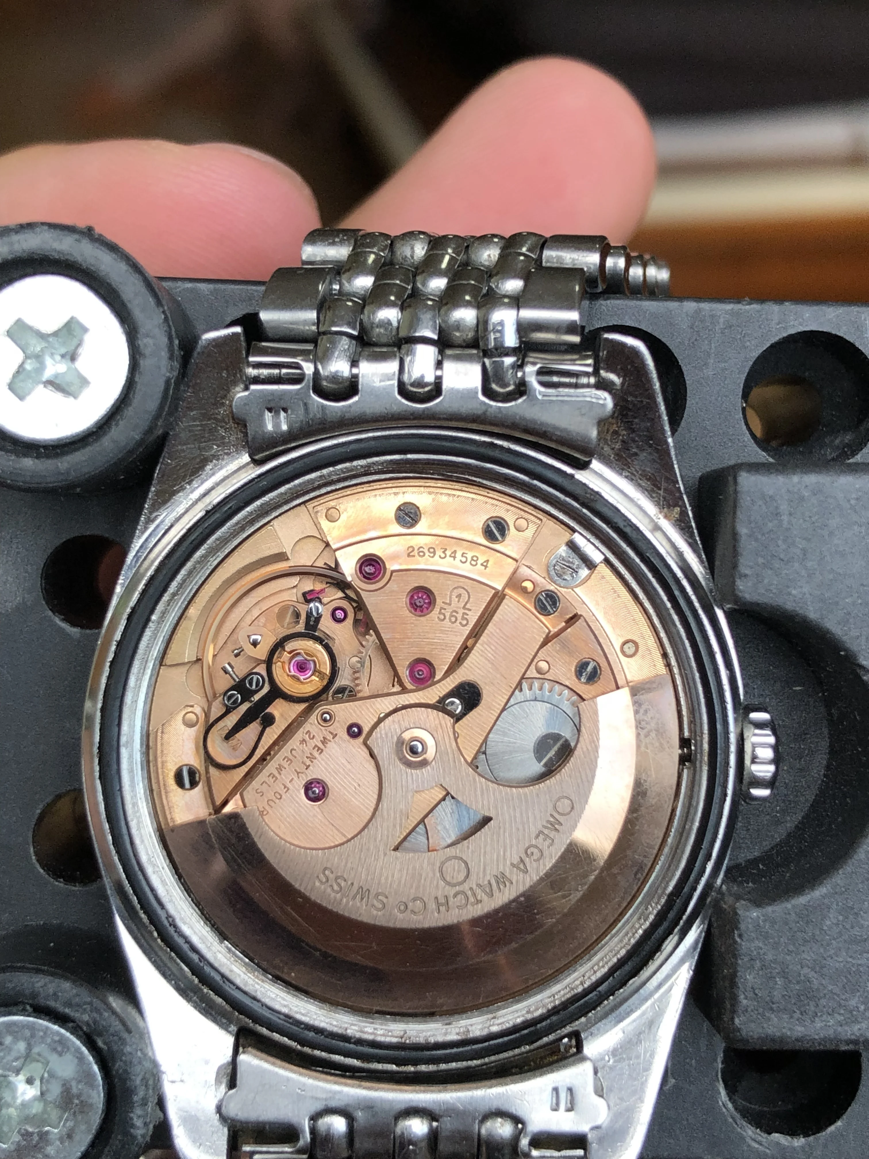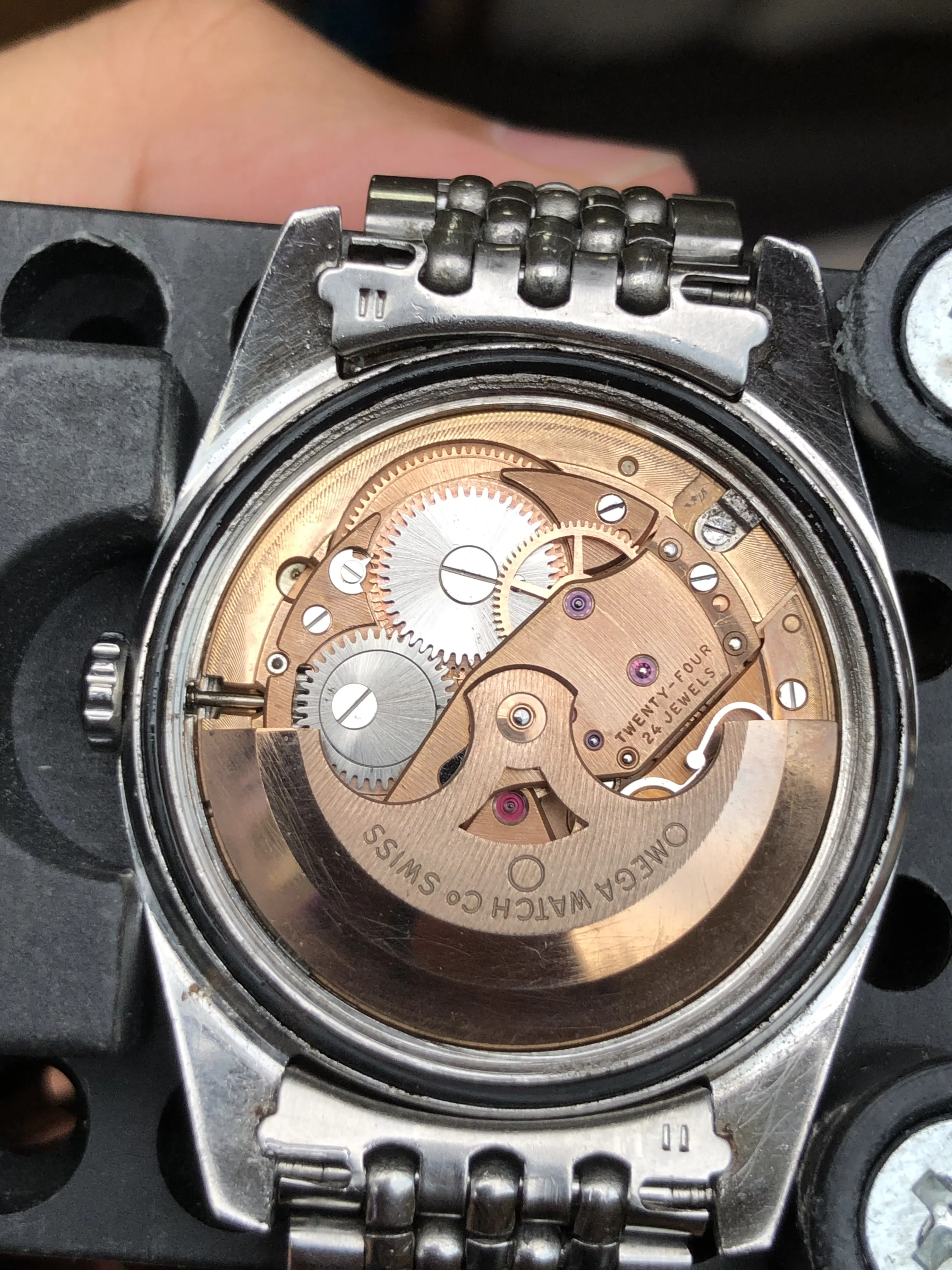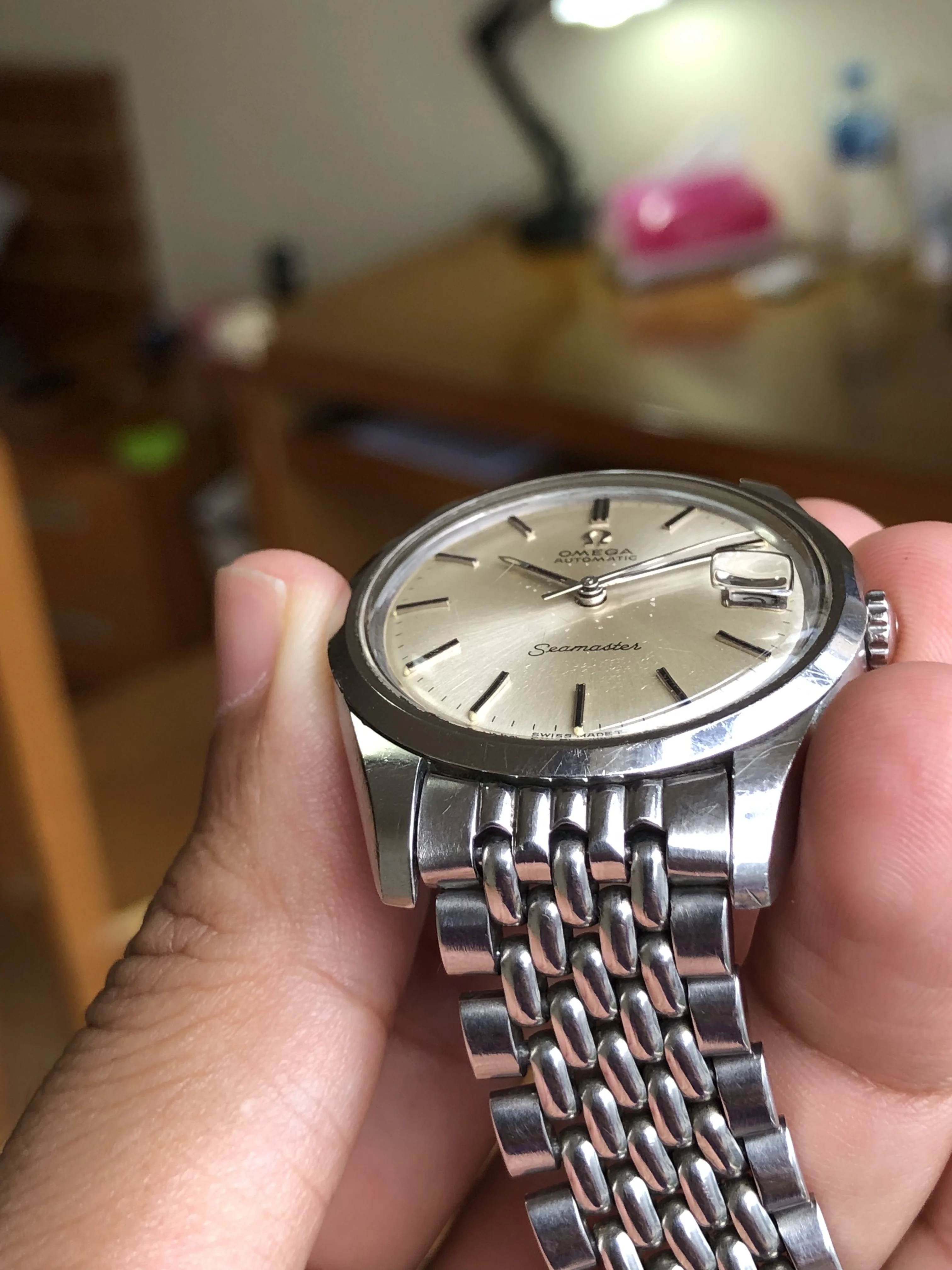 - Case: The diameter is 35mm without the crown. Original case in good condition with hairline scratches. Original Omega scallop crown (I changed it from the knurled crown during the last service).