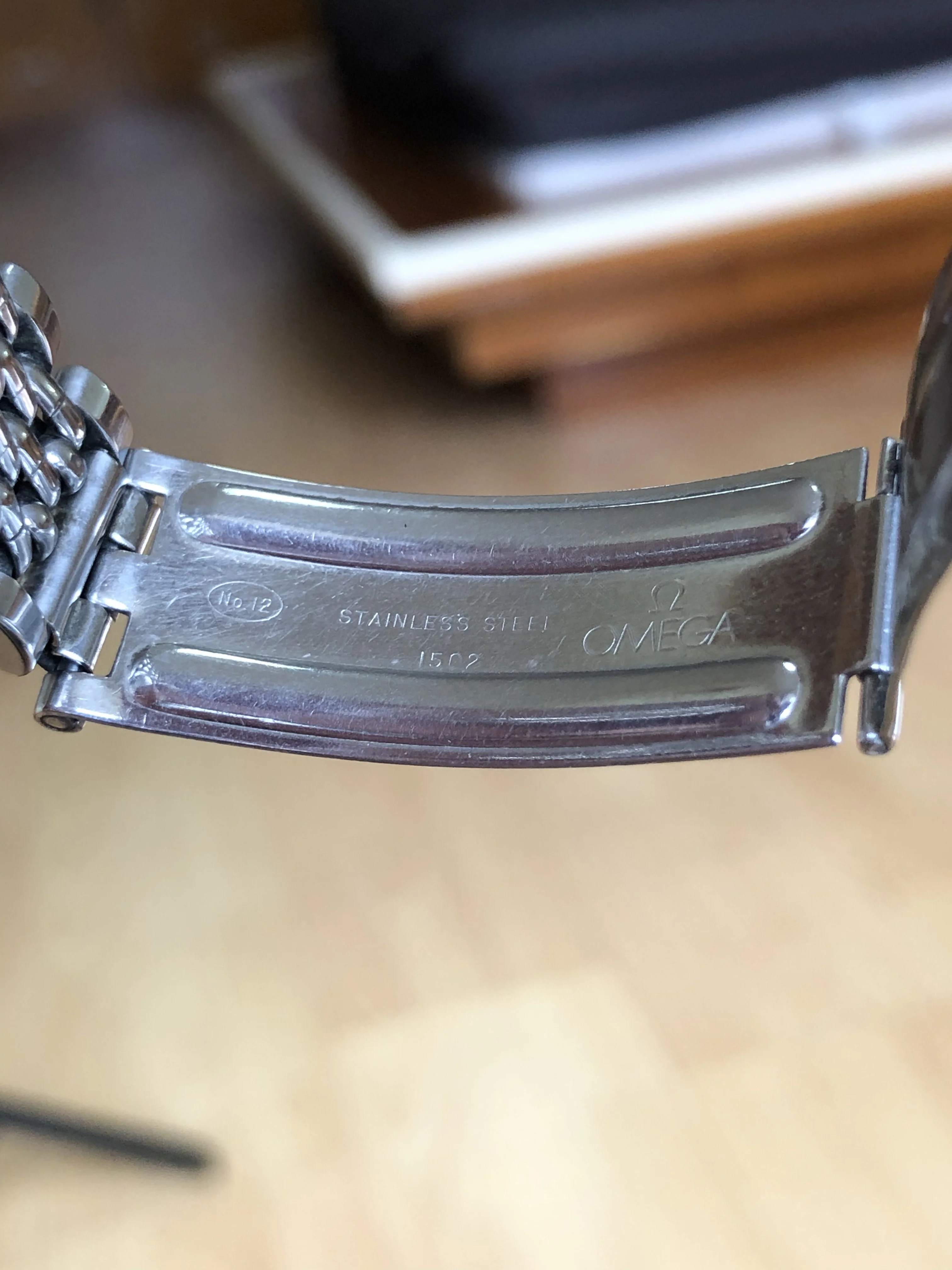 - Bracelet: Original Omega bracelet reference 1502 with 11 end-links in fair condition, triple fold clasp featuring micro-adjust with Omega logo.