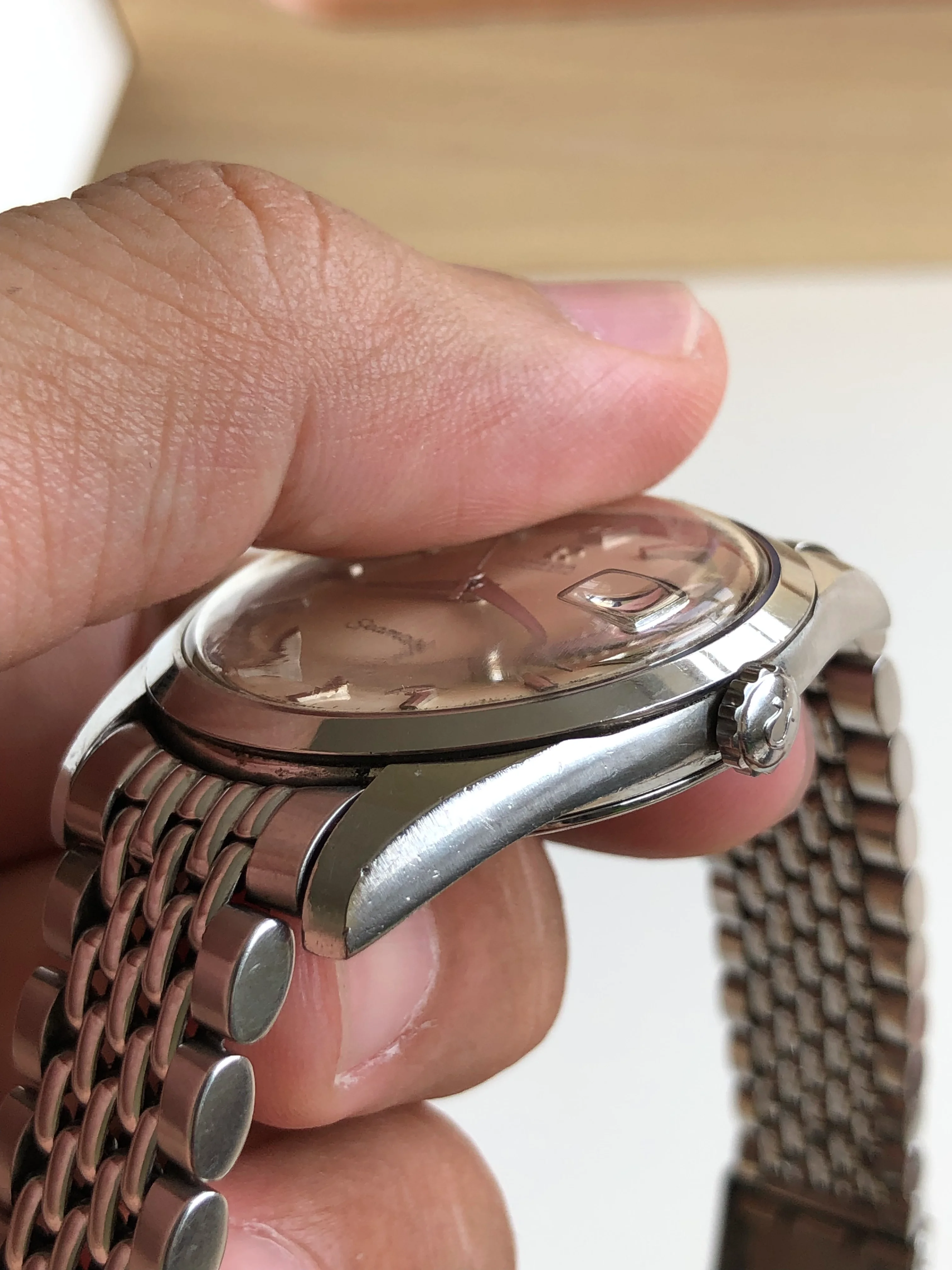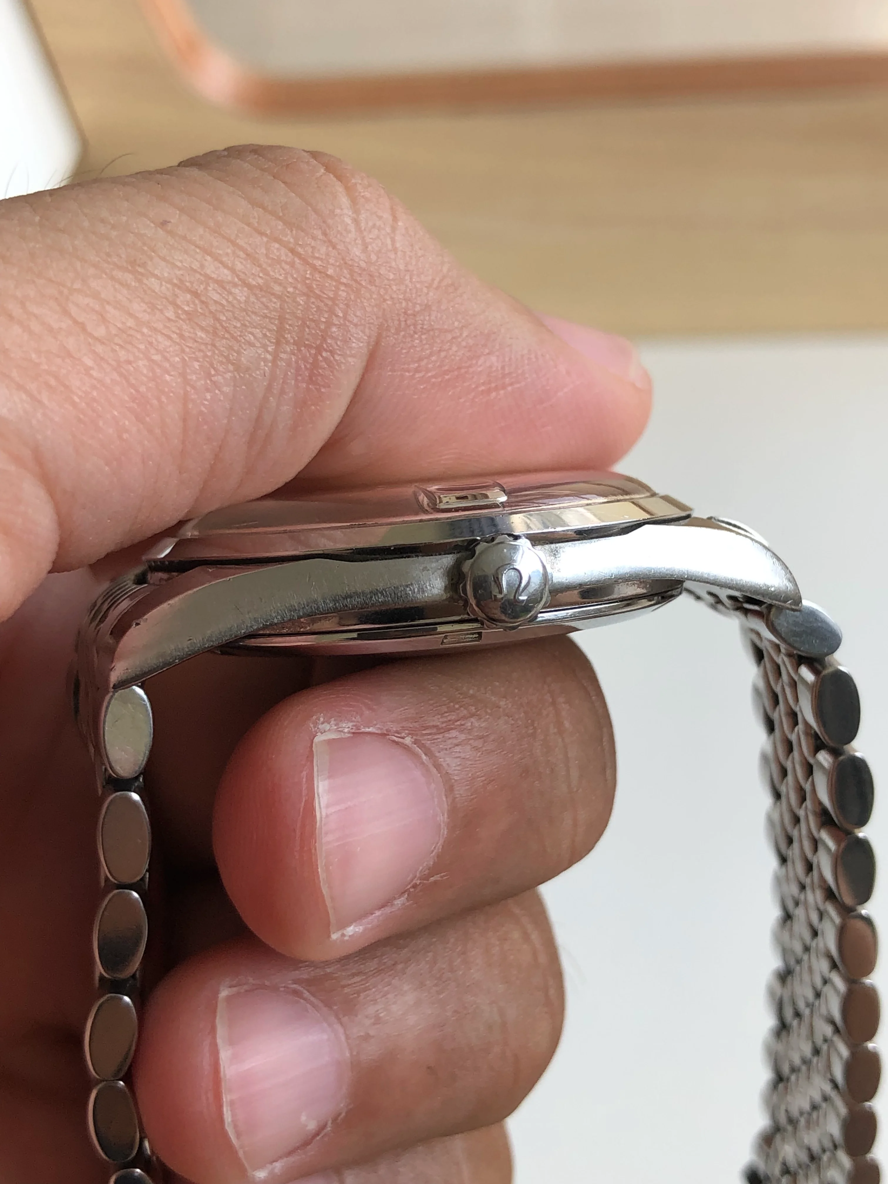 - Glass: Original with Omega logo, no visible scratches, magnifying windown at 3.