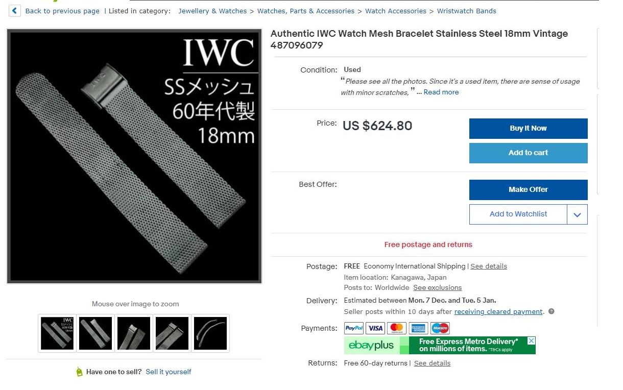 Also I was bummed it was on what looked like a rubbish 1980's digital watch bracelet, but its actually a 1960's IWC mesh bracelet. The last one sold for $600USD on ebay! I only paid $400USD for the watch, so I think it might end up being free if I can sell the bracelet.