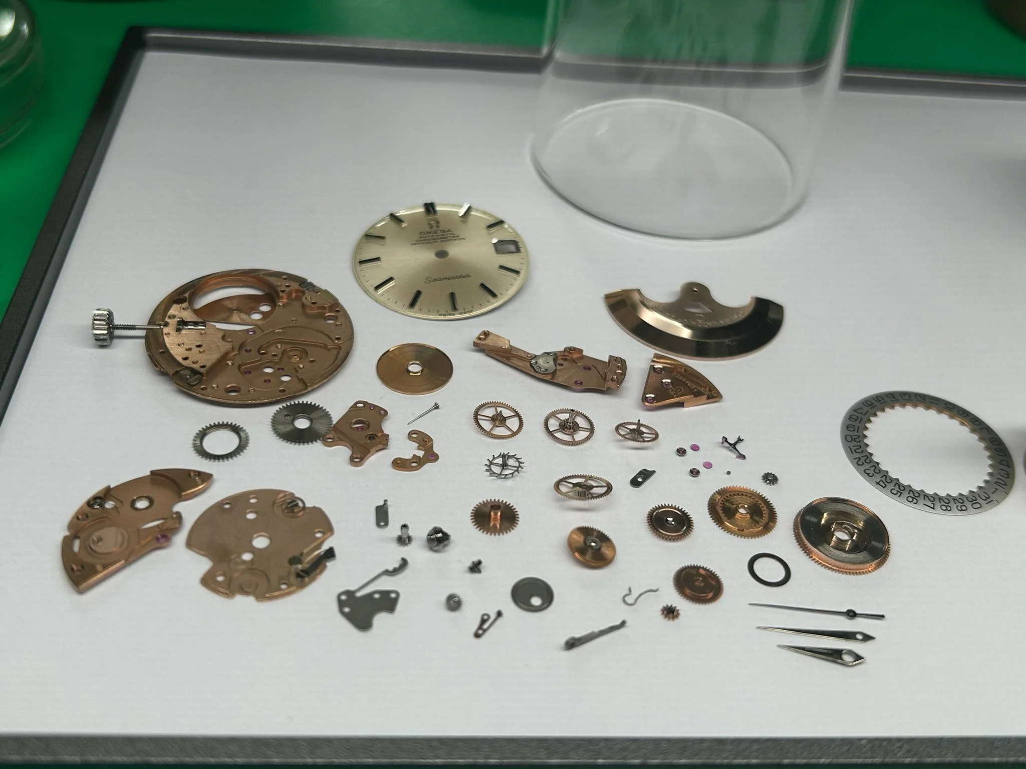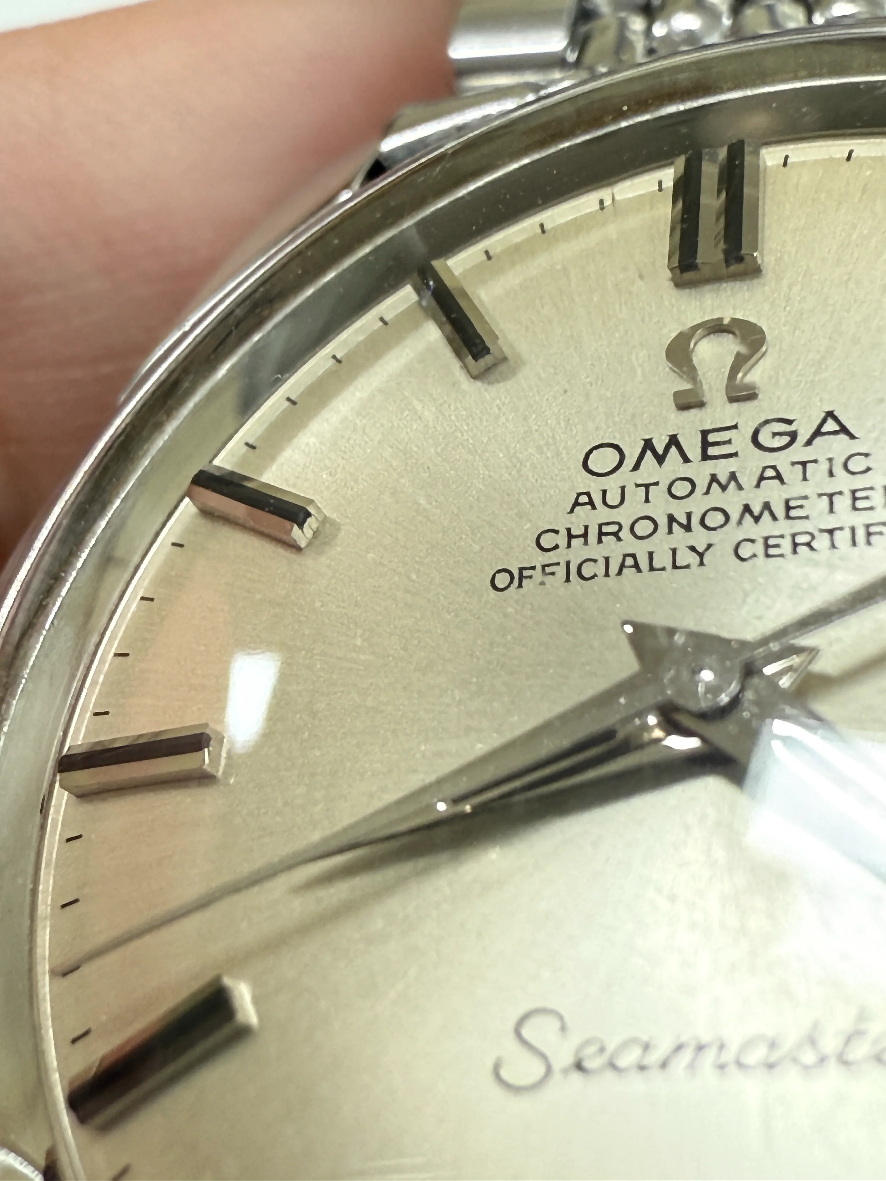 - Glass: Original with Omega logo, minor scratches.