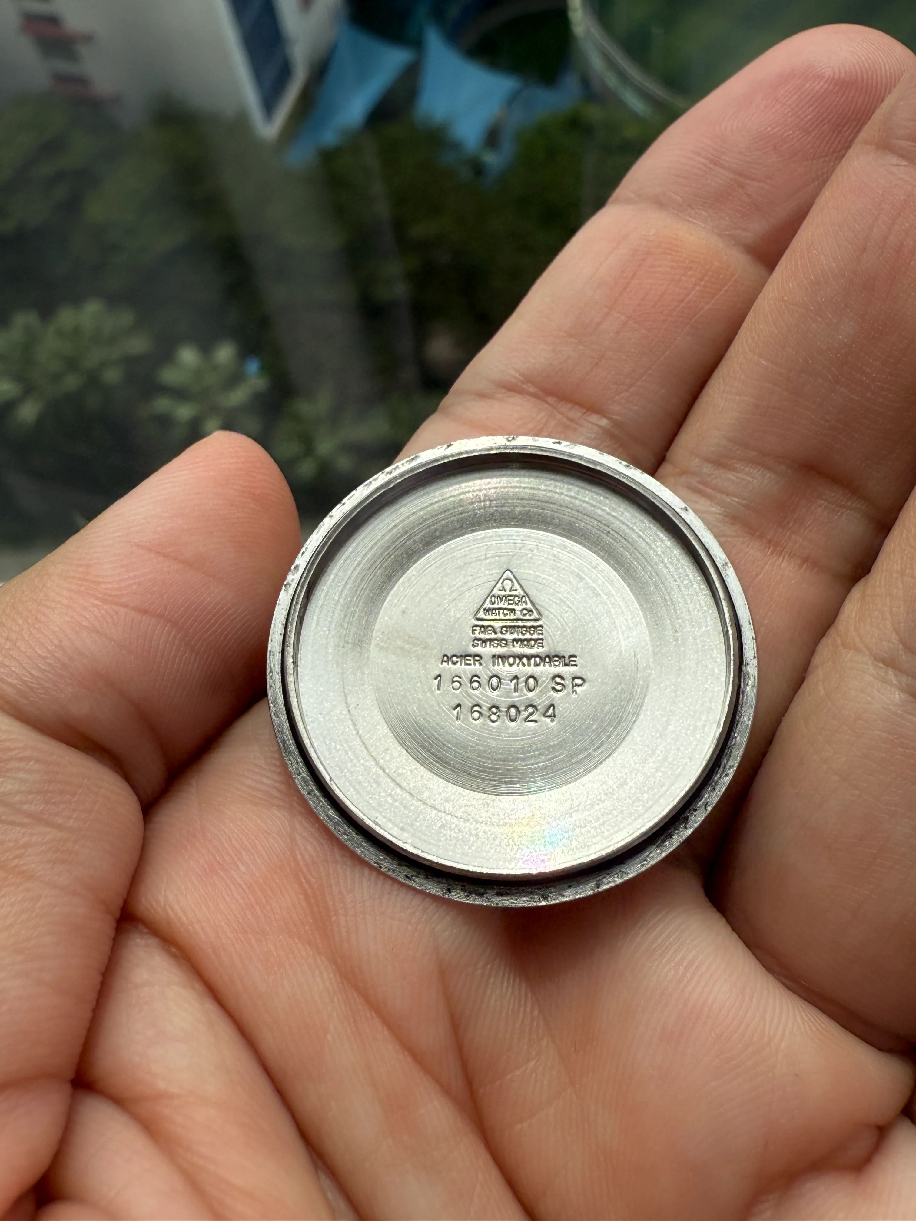 - Glass: Original with Omega logo, no magnifying window.