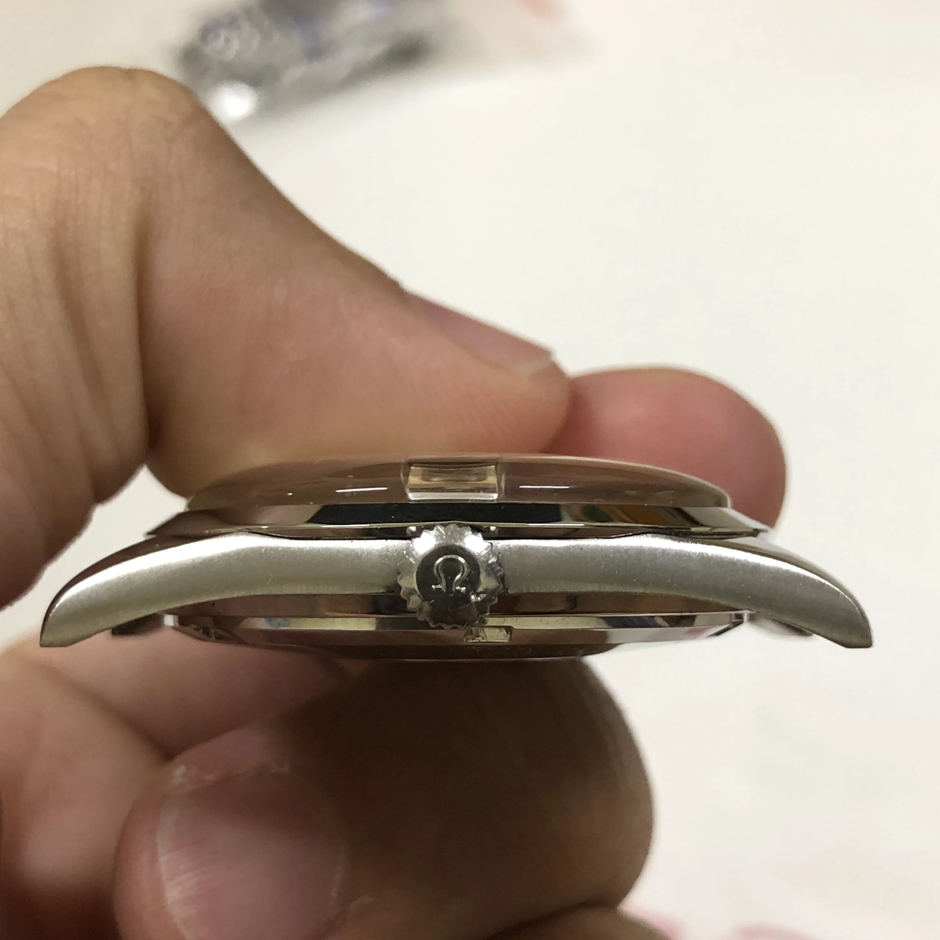 - Case: The diameter is 35mm without the crown. Original case in superb condition, razor sharp, few hairline scratches, still shining. The case back looks like it has not been opened (many times) before. Original Omega knurled crown.