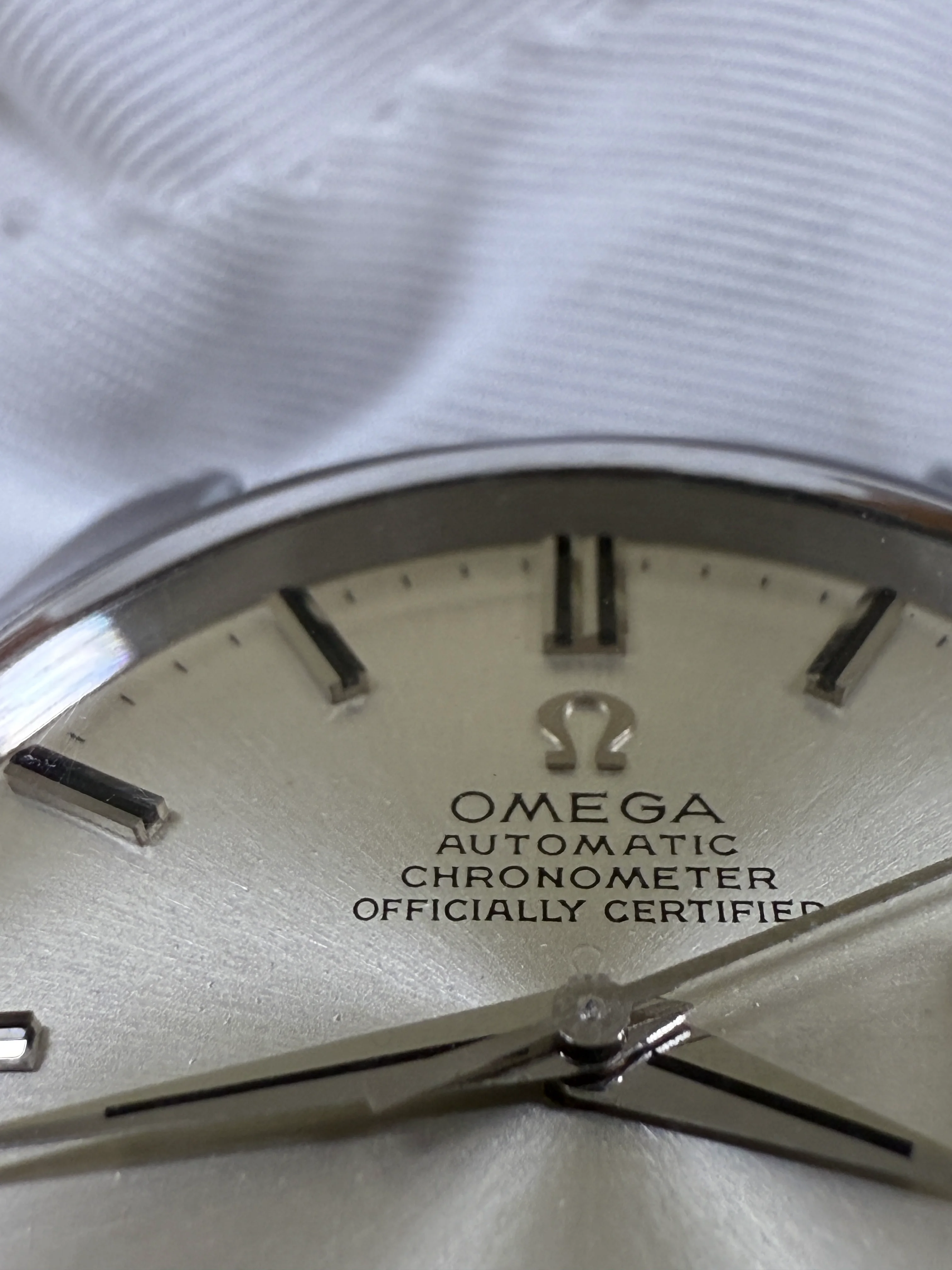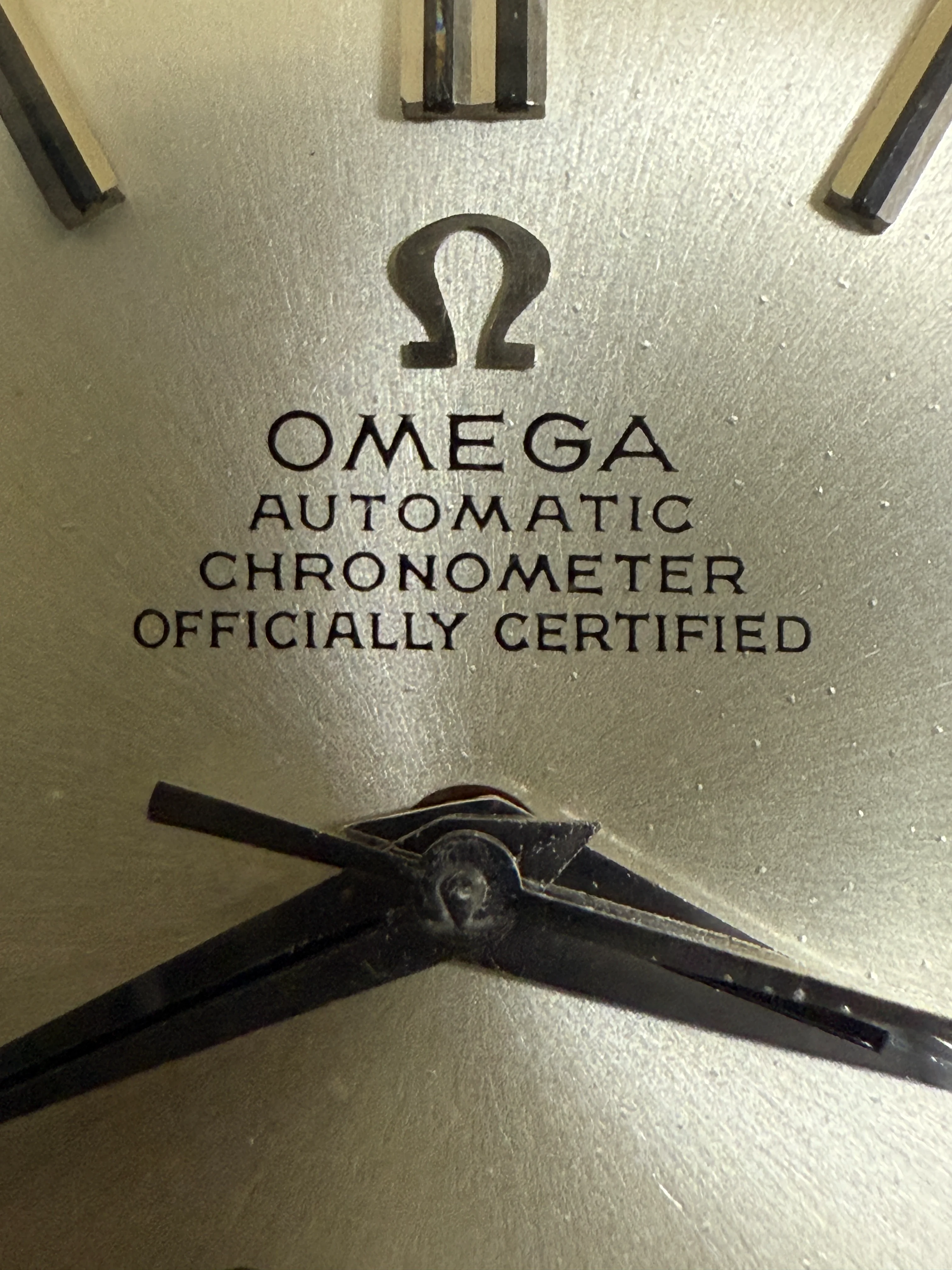 A very nice stainless steel Omega 168.024 (the chronometer version of 166.010), superb condition, 35mm, chronometer, onyx inserted hour markers, white sunburst dial, original Omega 1502/11 bracelet in very good condition.
