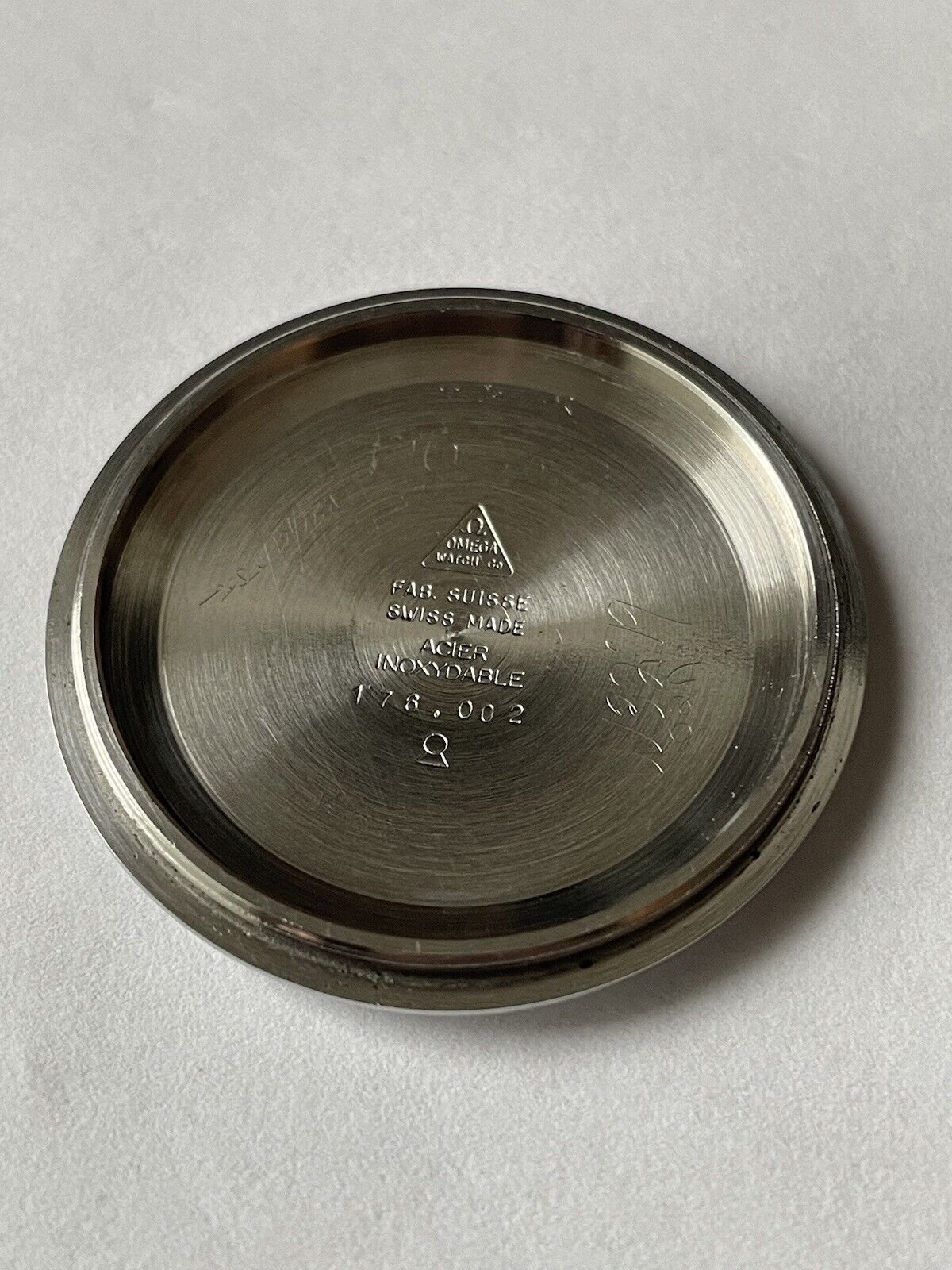 Offering for sale a pre-owned vintage Omega 176.002 Case Back. Case back came to me paired to a different reference mid-case but as I have no need for this case back I am listing it for sale.