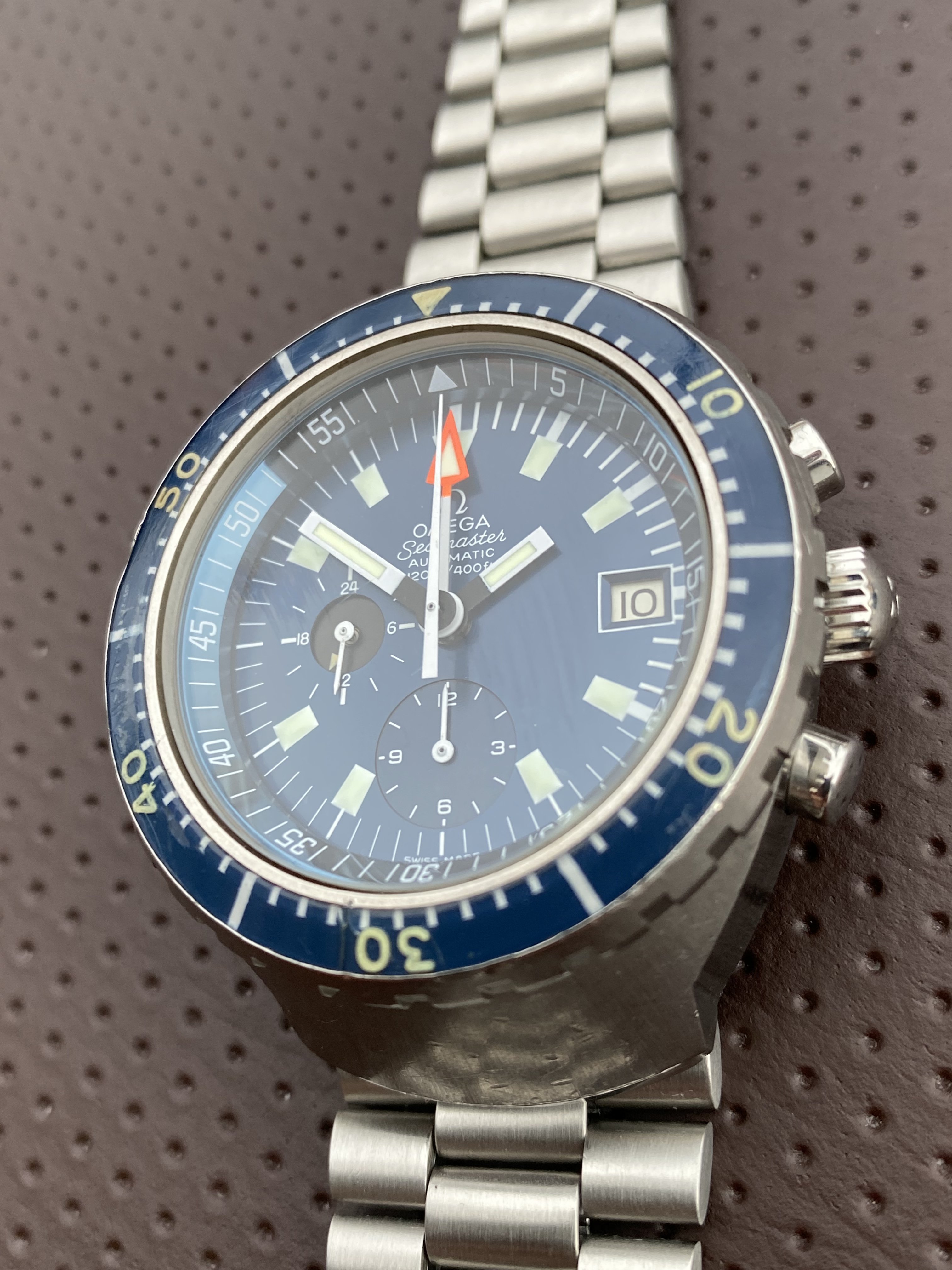 Looking to sell my Omega 176.004. Watch is in nice condition. Original bezel has a small crack at the 31’ mark and slight discoloration around the 45’ mark as can be seen in the pictures. Hands and dial are luminova. There are a few dings here and there from normal use as you might expect on a tool watch of this kind.