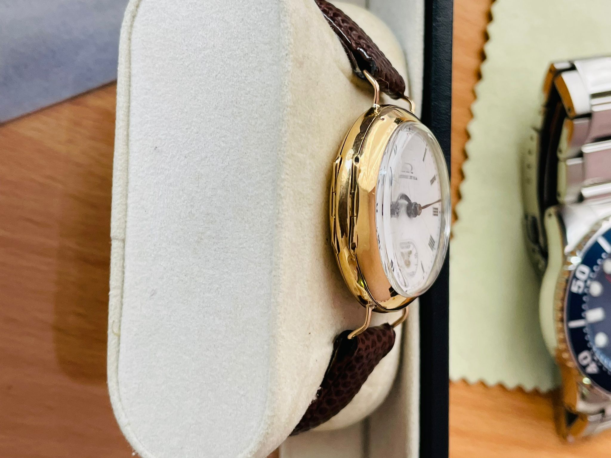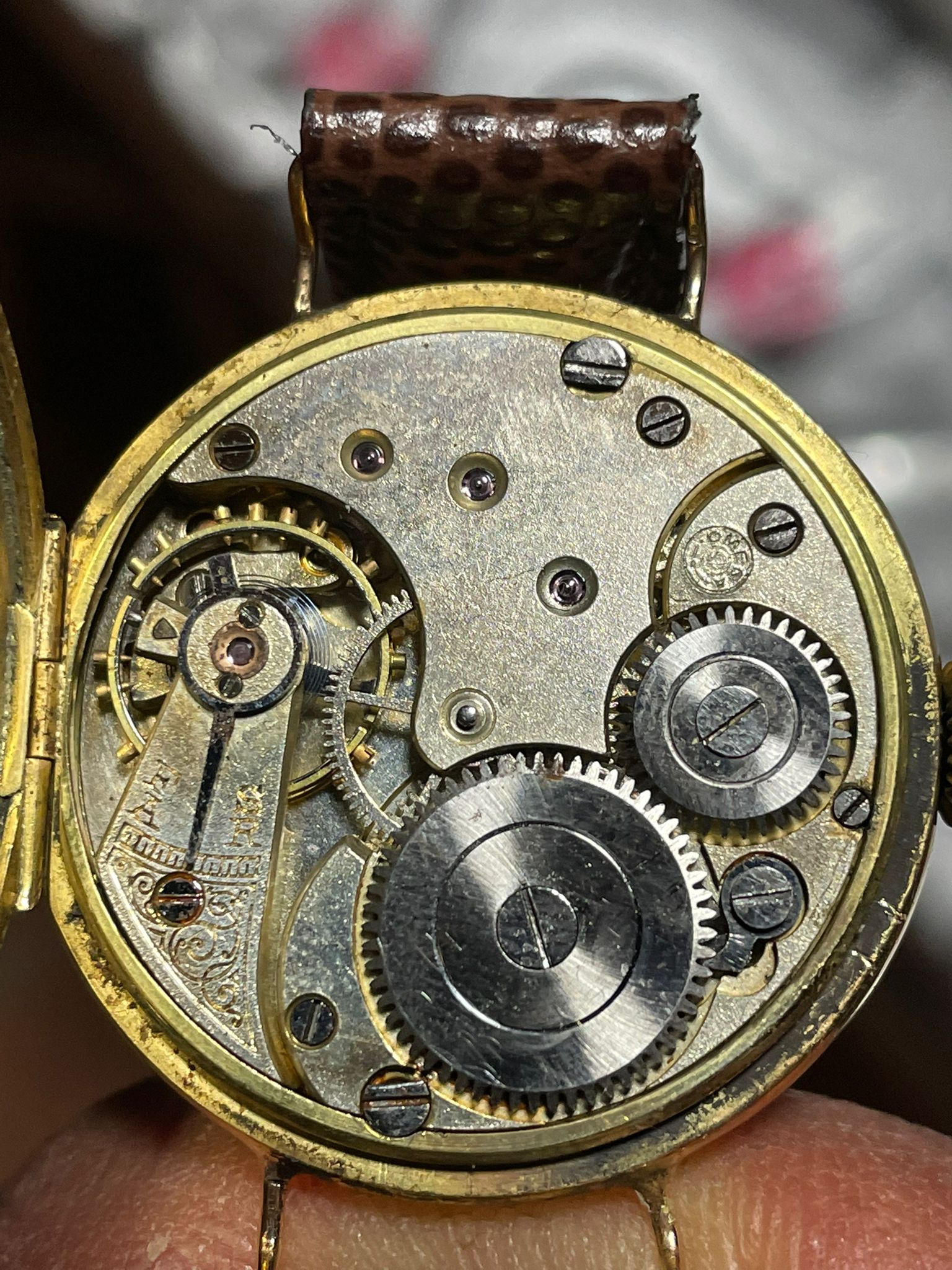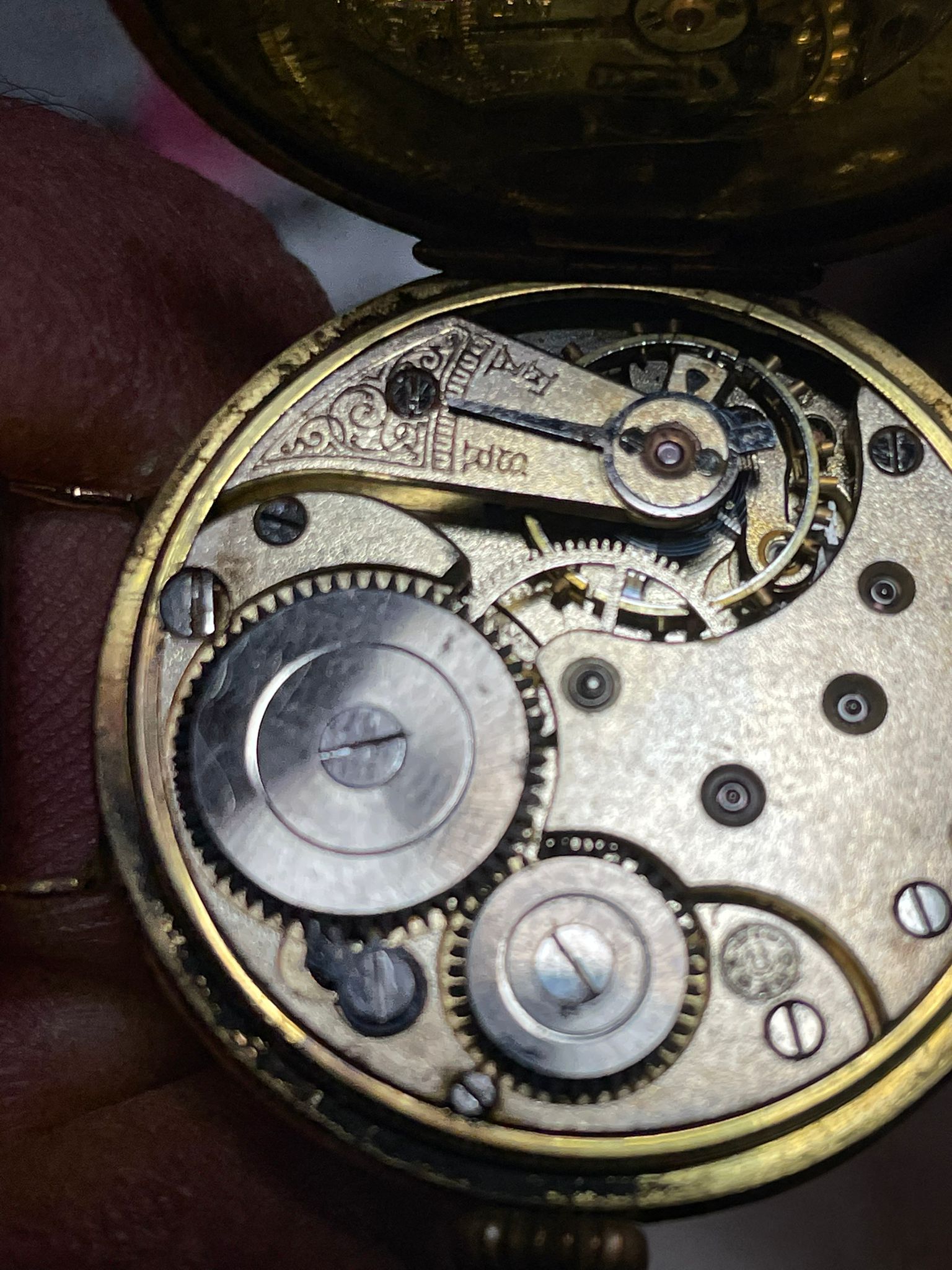 I can't say I've seen that type of logo on an old movement before either.