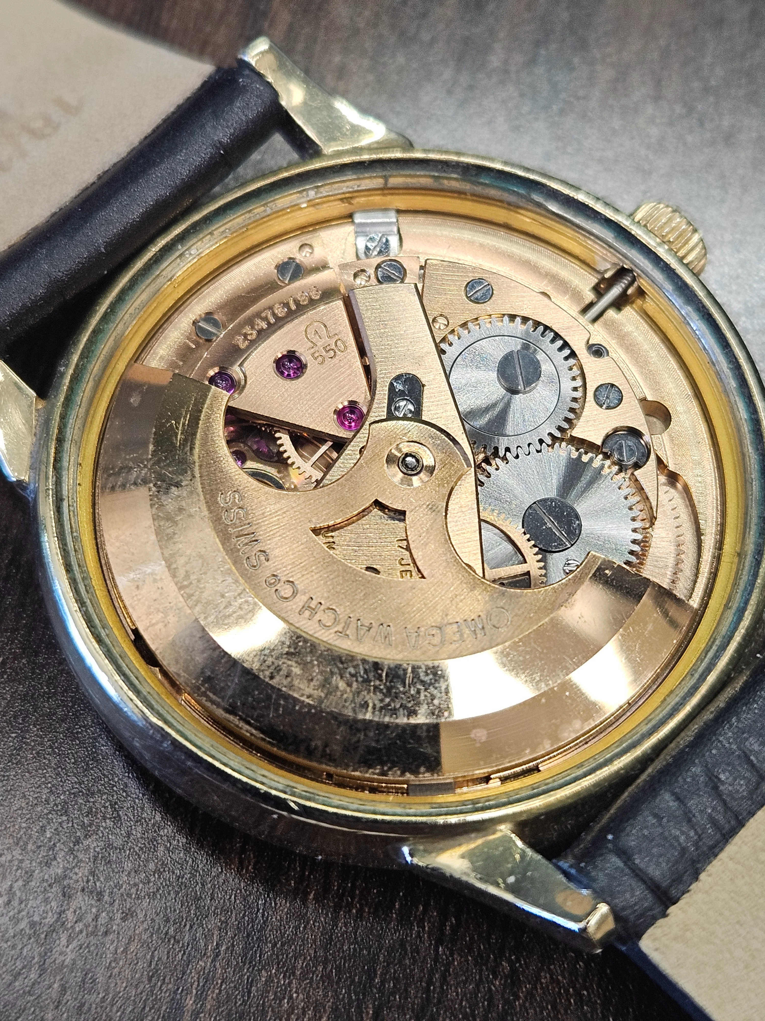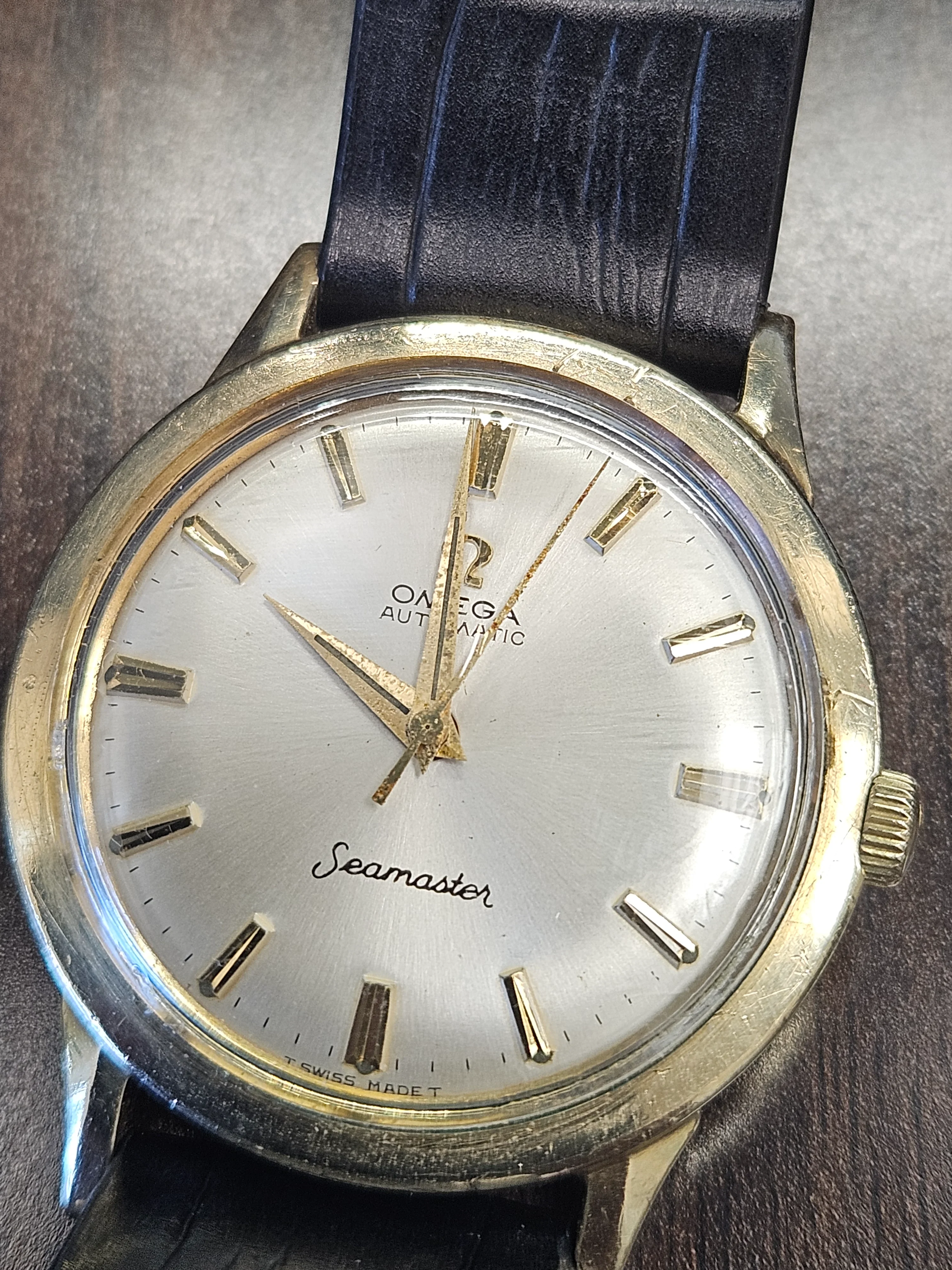 ·Picked up this mid-60s Omega Seamaster Automatic in a US-cased 14K gold-filled case (J. Wadsworth), with a nicely preserved silver sunburst dial signed Omega Automatic Seamaster and correct applied indices. Caseback is engraved “25th Century Service Award - Roy Weaver - 1966,” which lines up well with the era. Inside is an Omega automatic marked Seventeen Jewels, Unadjusted (US import), running at 19,800 bph. On the timegrapher it’s currently about -30 s/day with very low beat error (~0.3 ms), though amplitude is modest (~150°), so a service is likely due. Crown appears Omega-signed and period-correct. Would appreciate thoughts on dial originality, exact movement ID, and whether the case/dial combo looks right for a US-market Seamaster of this period.
