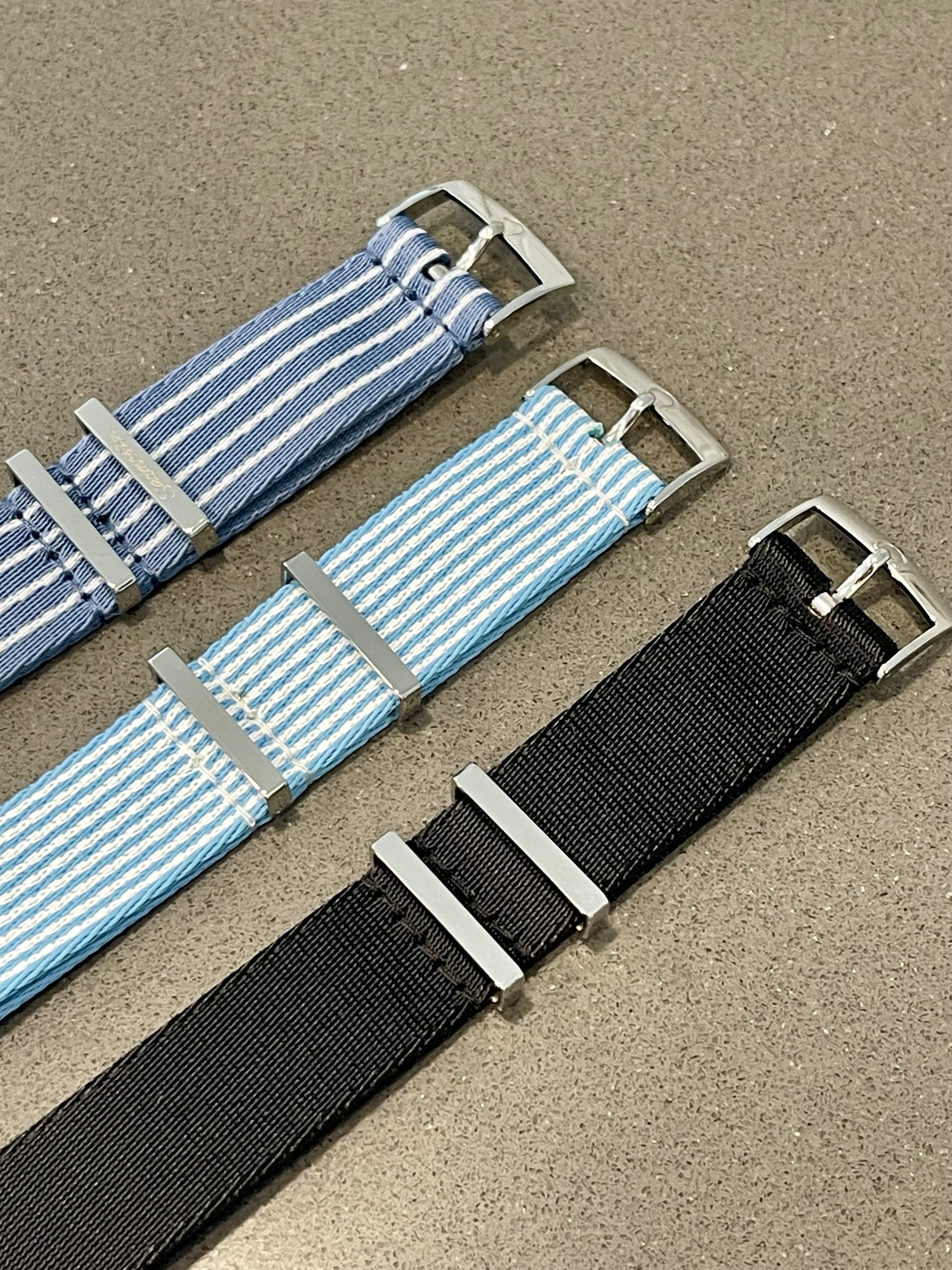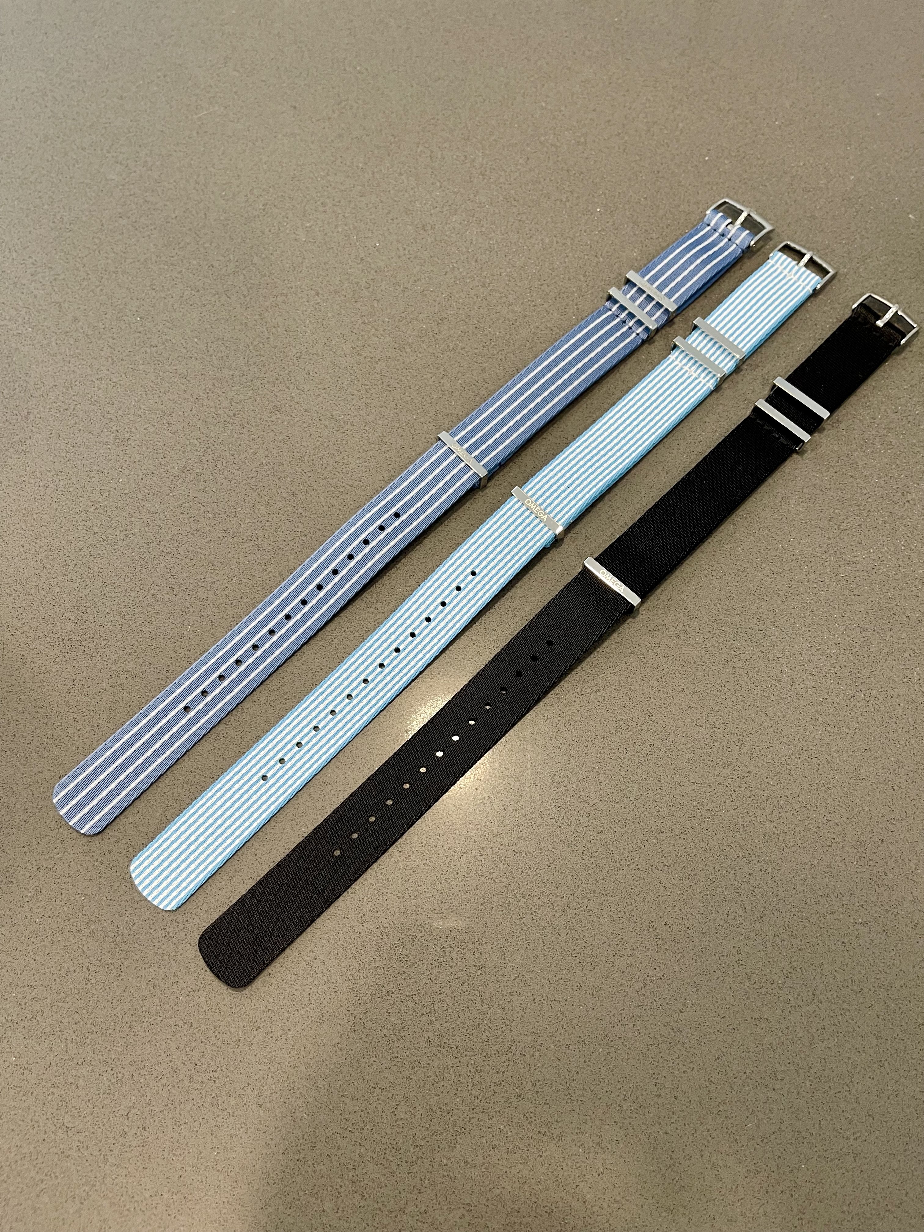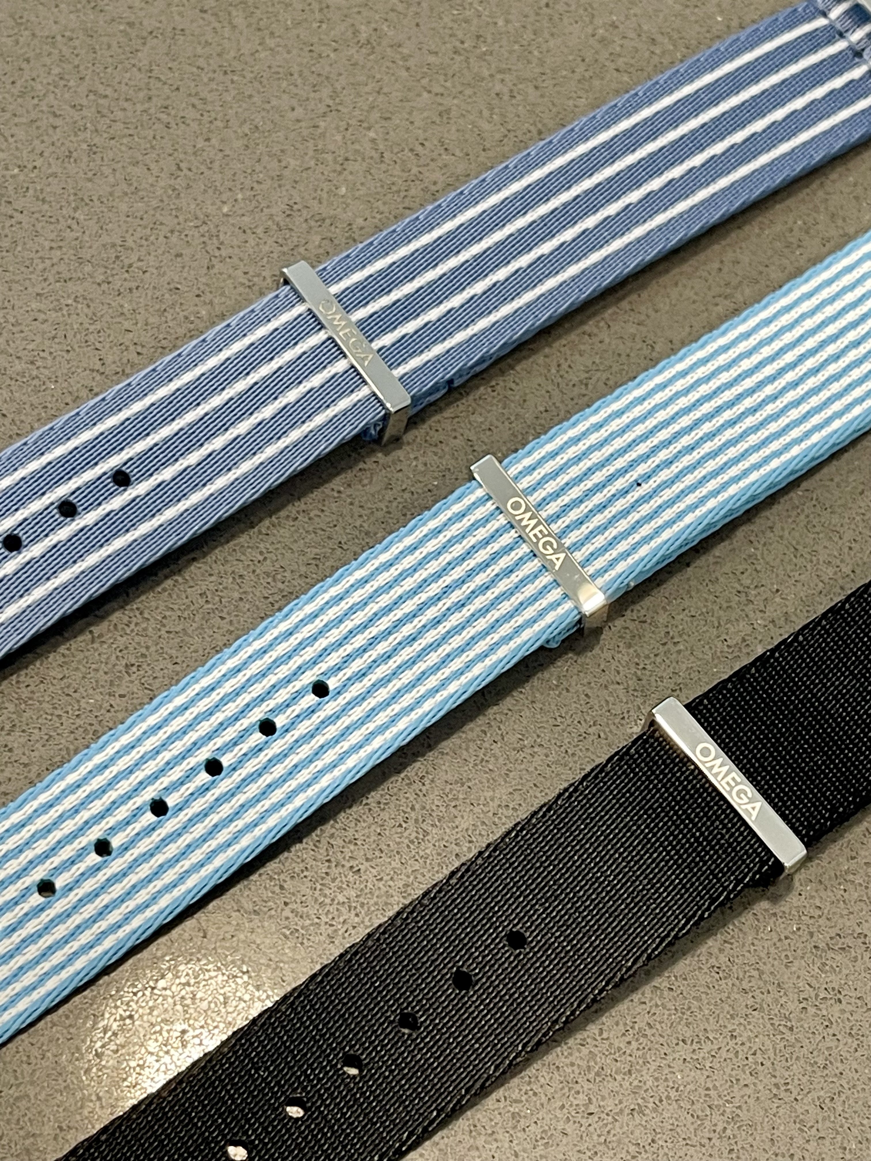 Selling three different OMEGA NATO straps in very gently-used condition. Almost zero signs of wear; each worn maybe 2-3 times.