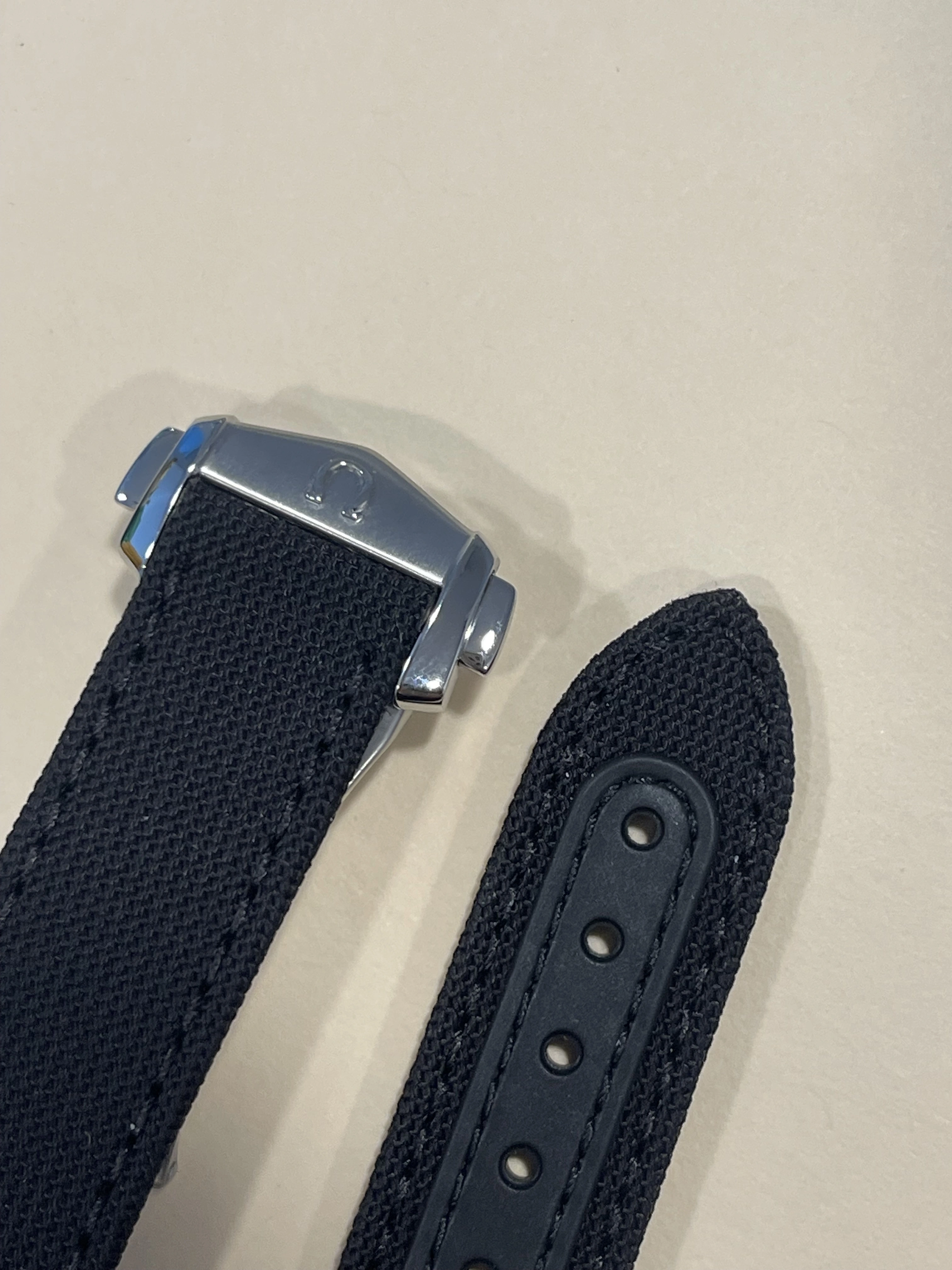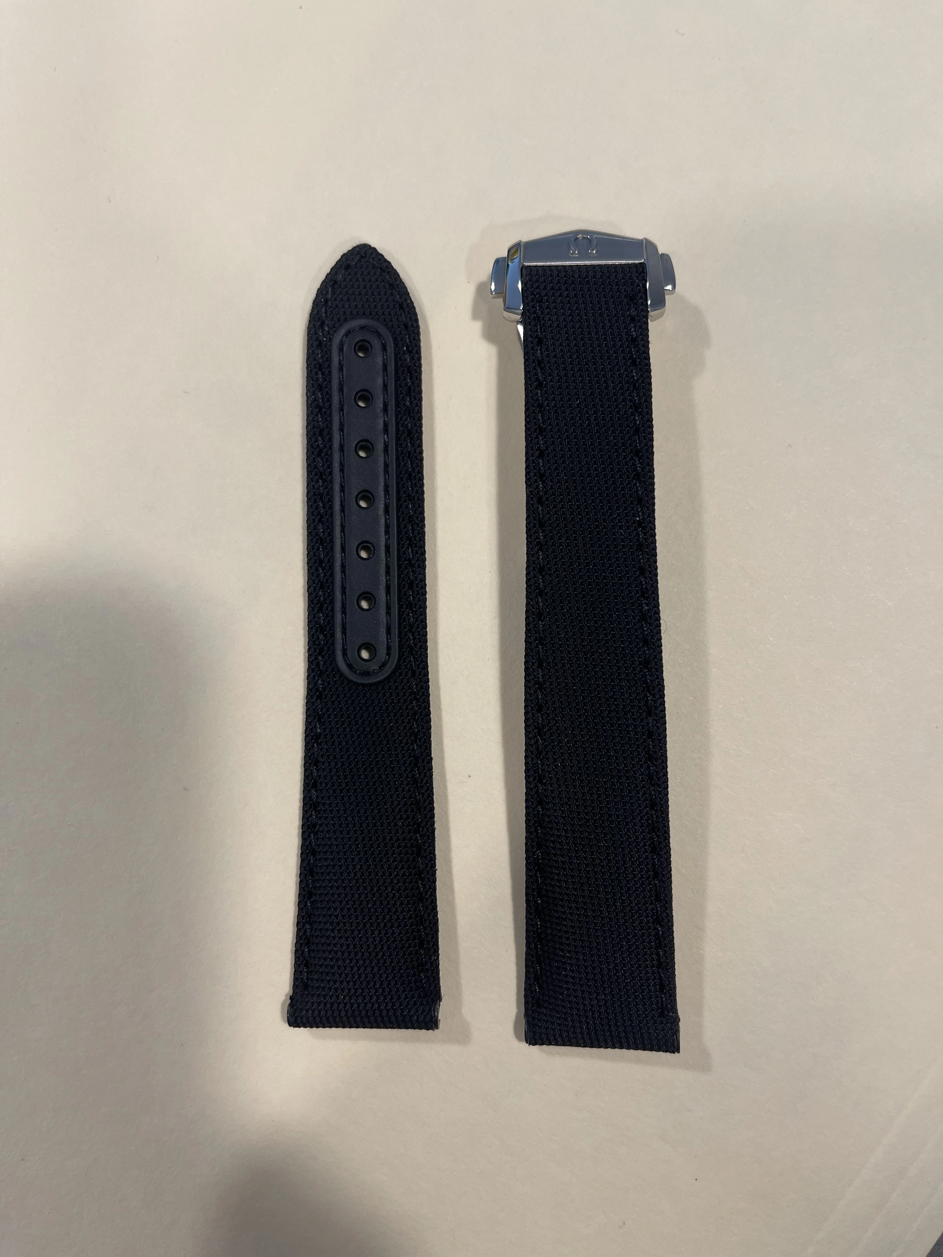 Selling a set of like-new OMEGA 20mm black fabric nylon strap and 20mm black leather calf with 16mm deployant buckle. This fits any of the new 3861 or 1861 Moonwatch variations. Spring bars not included in the sale.