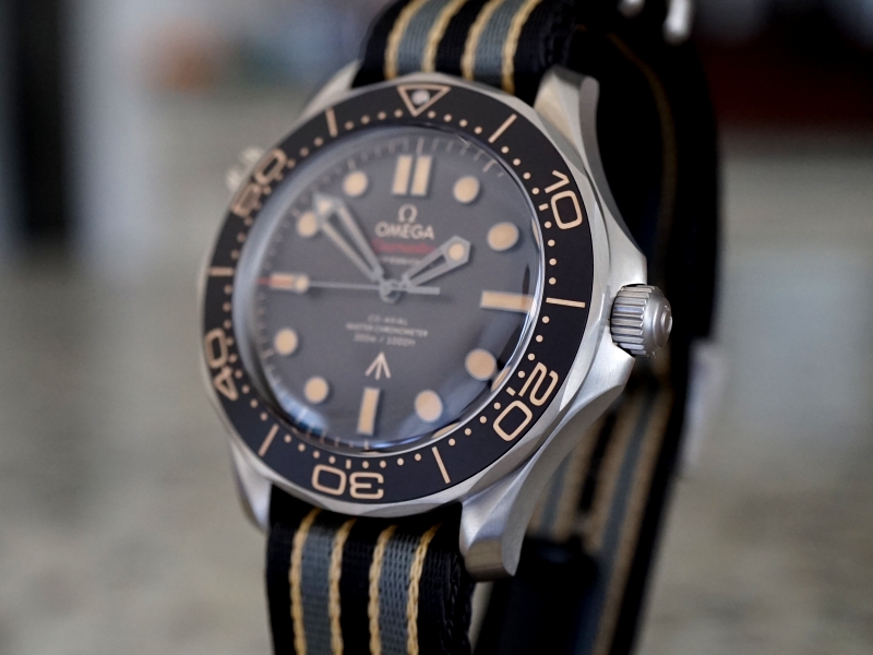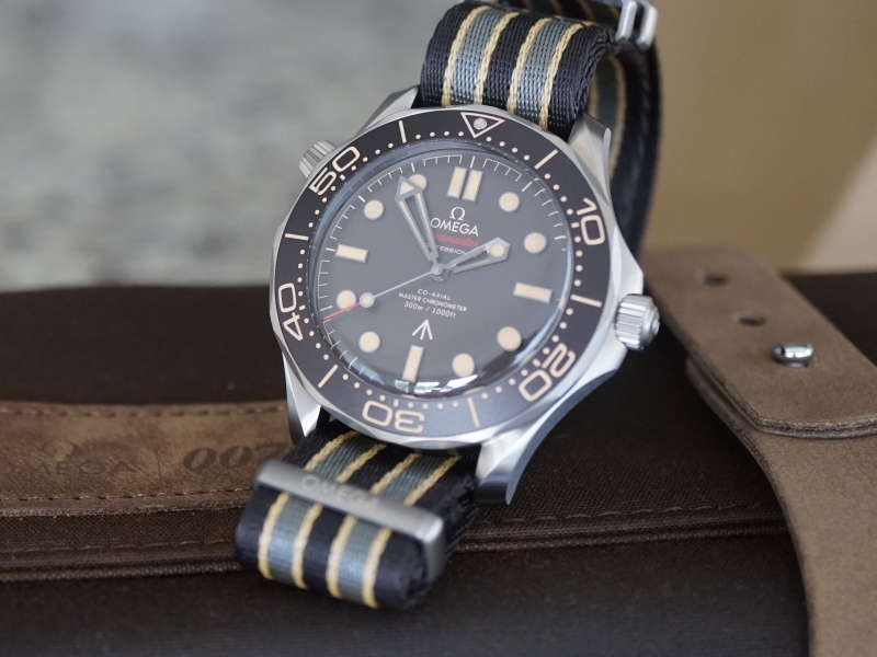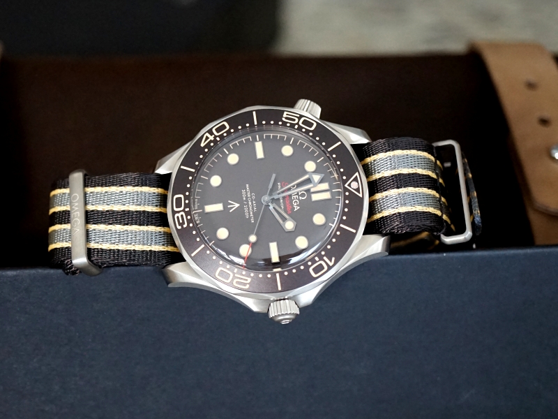 ·Omega 210.92.42.20.01.001 Seamaster Diver 300M Co-Axial Master Chronometer, 21092422001001, 210 92 42 20 01 001, Grade 2 Titanium case on a grey and beige NATO strap with titanium buckle, automatic Omega Co-Axial Master Chronometer caliber 8806 movement, 55-hour power reserve, luminescent hands and hour markers, brown tropical aluminum bezel ring and dial, rotating bezel, diameter: 42mm, thickness: 14mm, domed sapphire crystal, water resistant to 300m, Unworn with box and papers (Sep 2021)