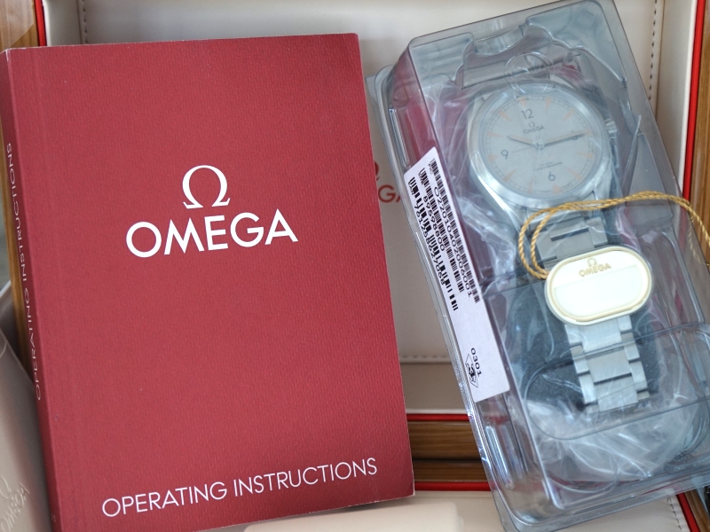 Omega 220.10.40.20.06.001 Railmaster Master Chronometer 22010402006001, stainless steel on a stainless steel bracelet with a folding deployant clasp, automatic Omega Master Chronometer caliber 8806 movement, 55-hour power reserve, center sweep seconds, silver dial with a linear brushed finish, luminous hour markers and hands, sapphire crystal, water resistant to 150 meters, diameter: 38mm, thickness: 12.8mm, Unworn with box and papers