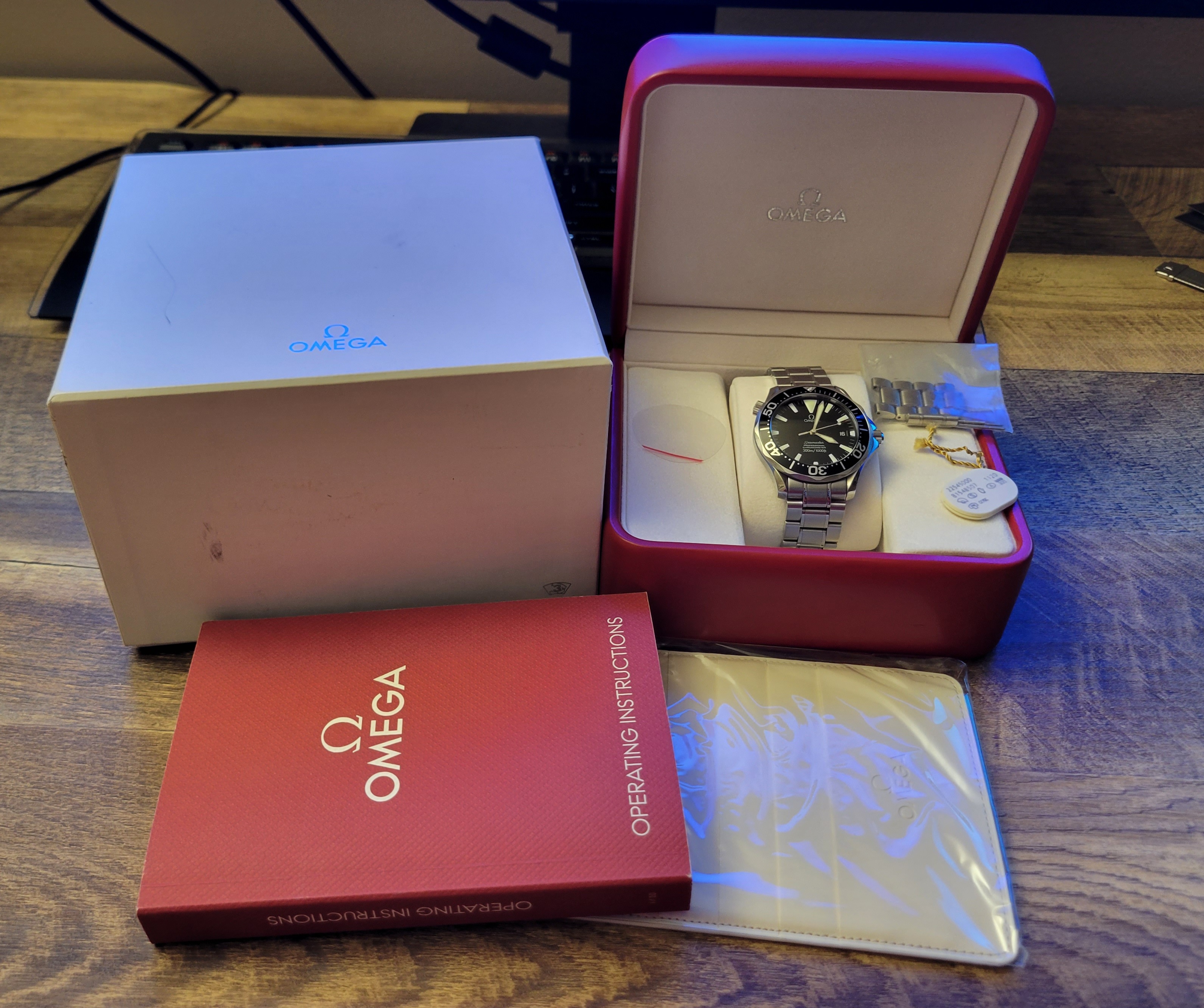 The watch will come with outer/inner box (the red box is not degraded), instruction manual, card sleeve, hang tag, and extra bracelet links including a half link. The watch did not come with the cards from WatchUWant.
