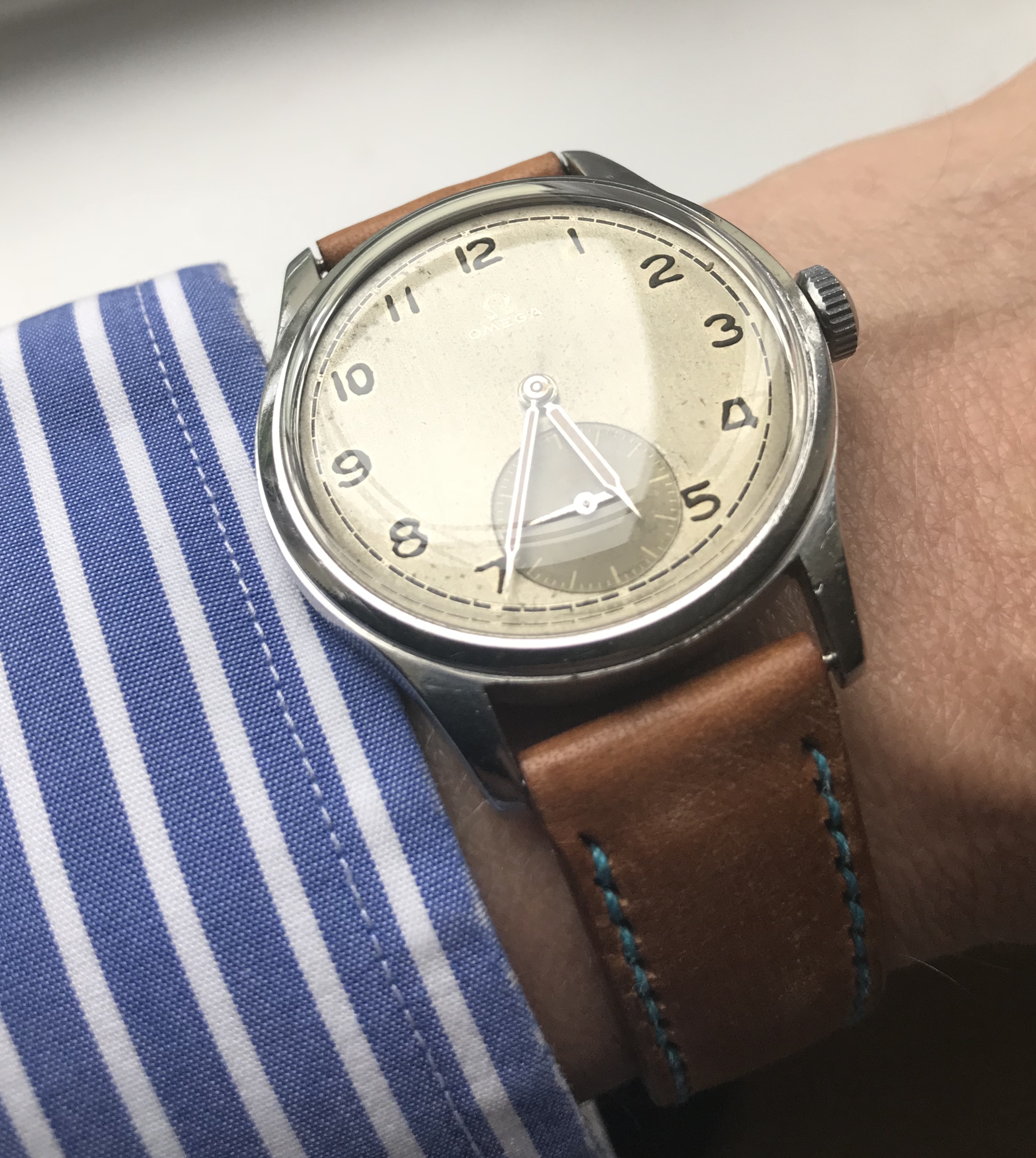 I’m selling my Omega 2383-4 with a nice grey patinated Dial. I’ve seen a few of these with similar Patination both in this version and in its Suveran equivalent. None the less it has real character, I think it’s a lovely watch.
