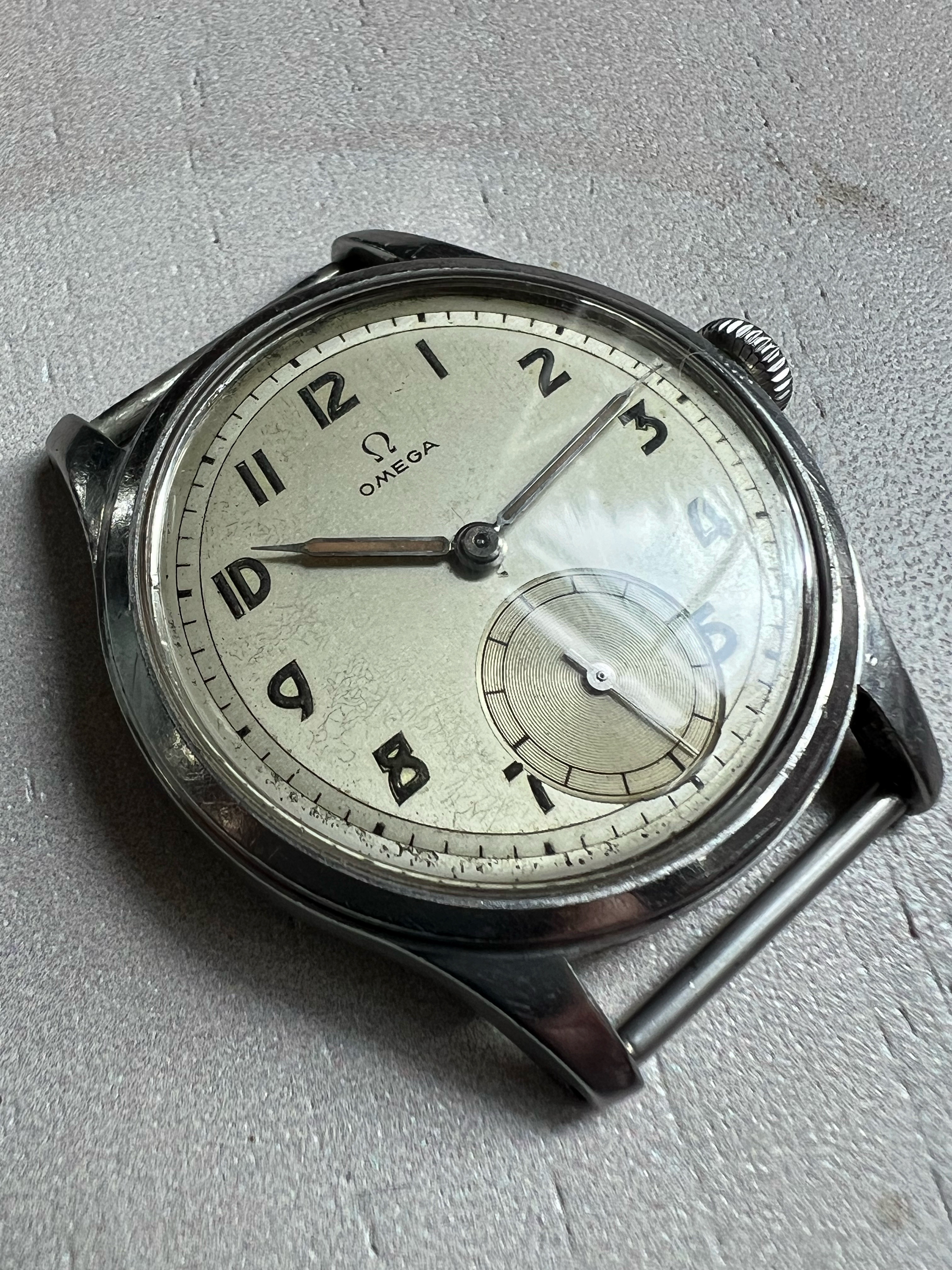 Movement: 30T2 caliber manual wind with serial dating to 1944. Service history unknown, but movement is clean, winds, and runs well.