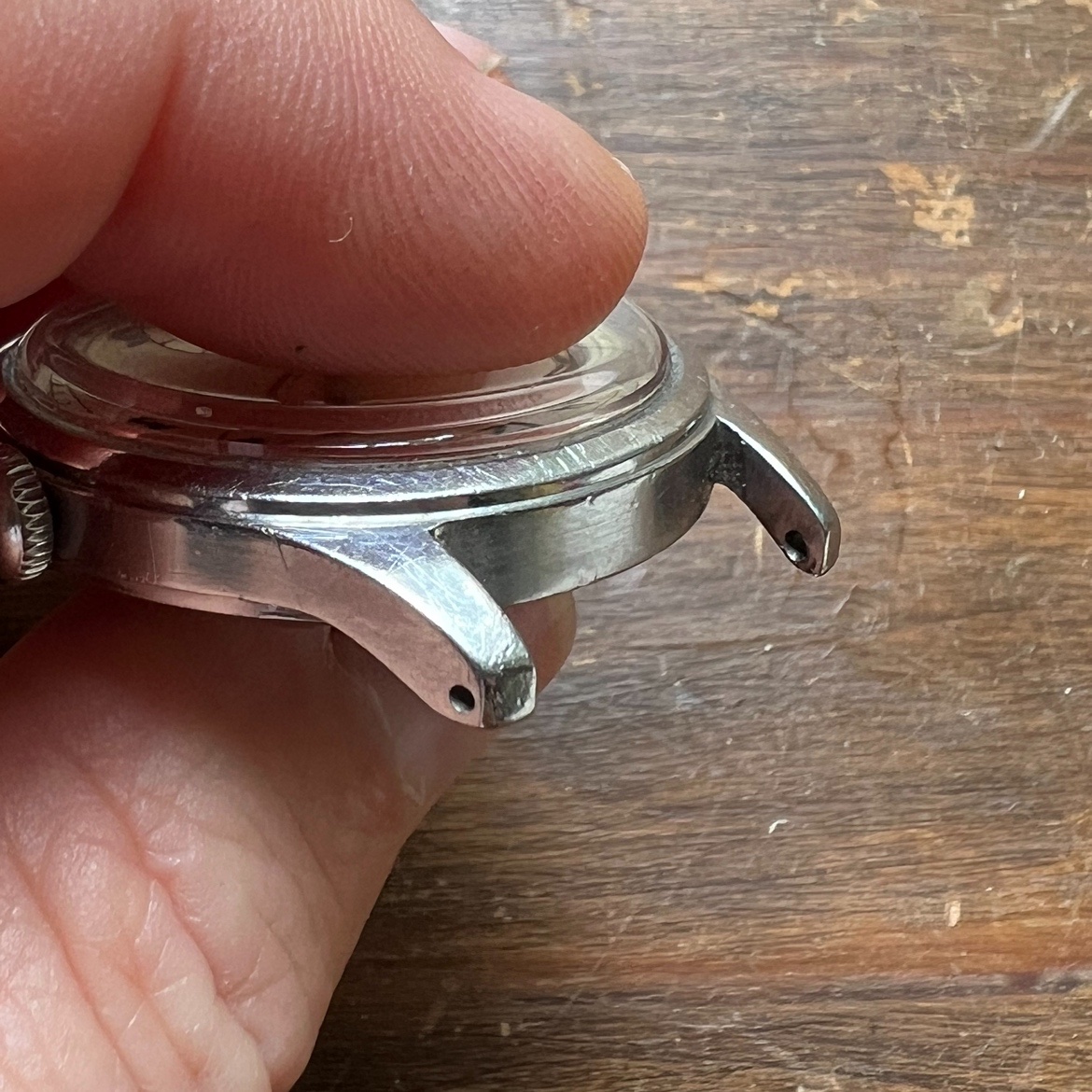 Case: 35.5mm screw back stainless case with 18mm lugs, clearly marked reference numbers on inside of case. Watch shows sleeve wear and is in overall excellent vintage condition.