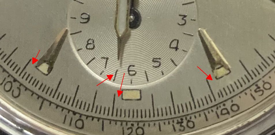 As far as I can see the dial is original and I know that the hands and the dial had been relumed. Is seemed to be not repainted overall, you can still see the circles in the subdials very well. For me it looks like that some numbers and letters had been corrected.
