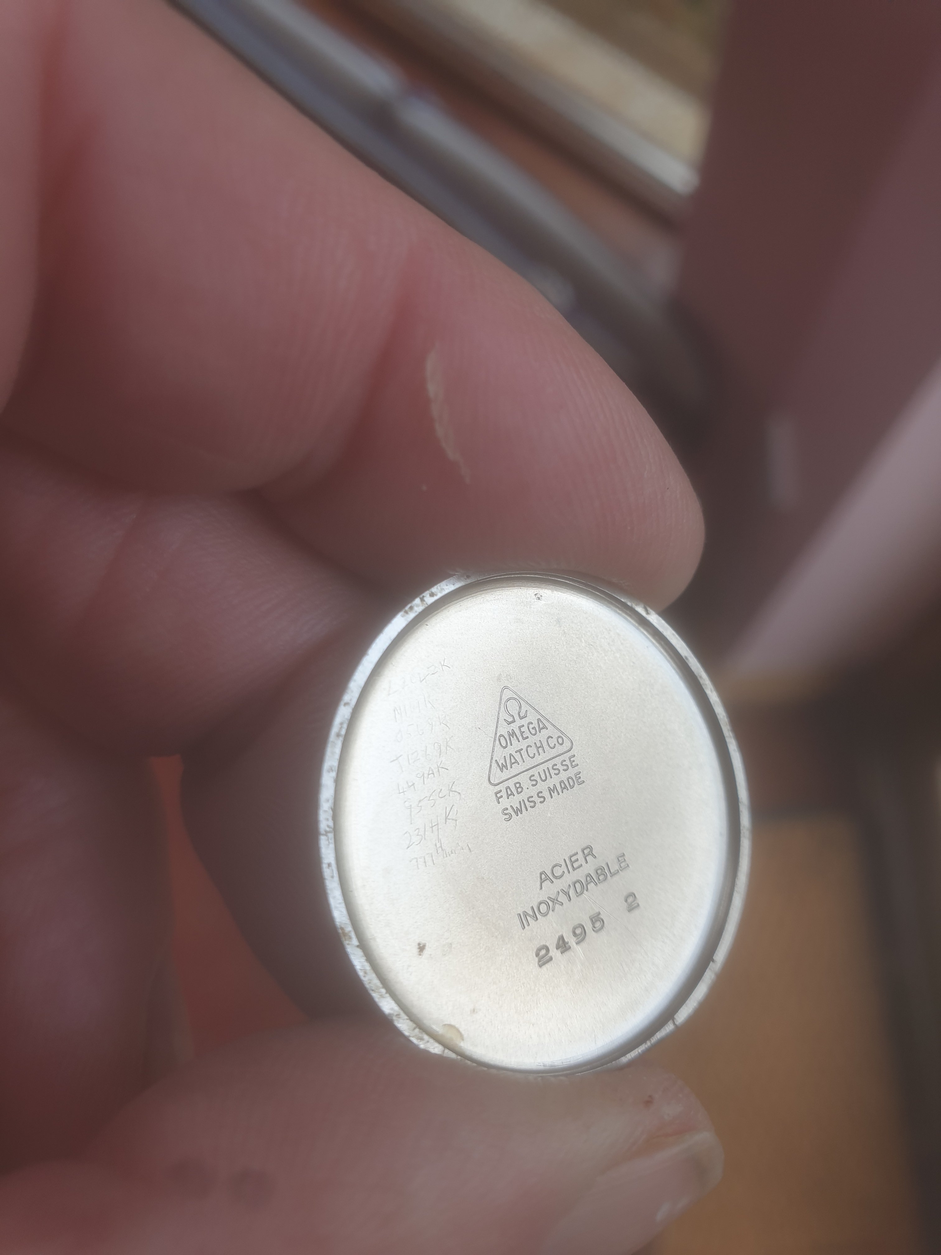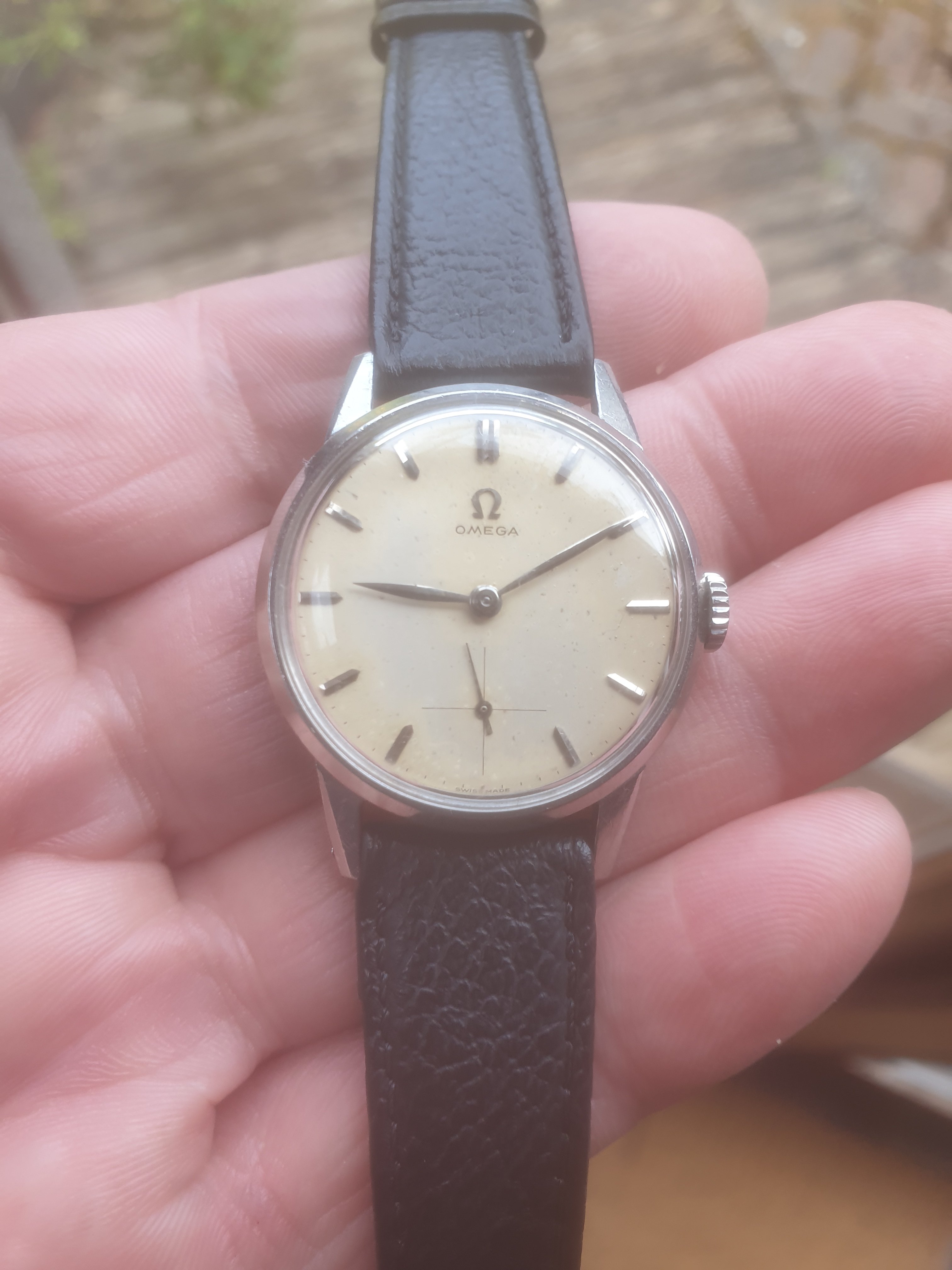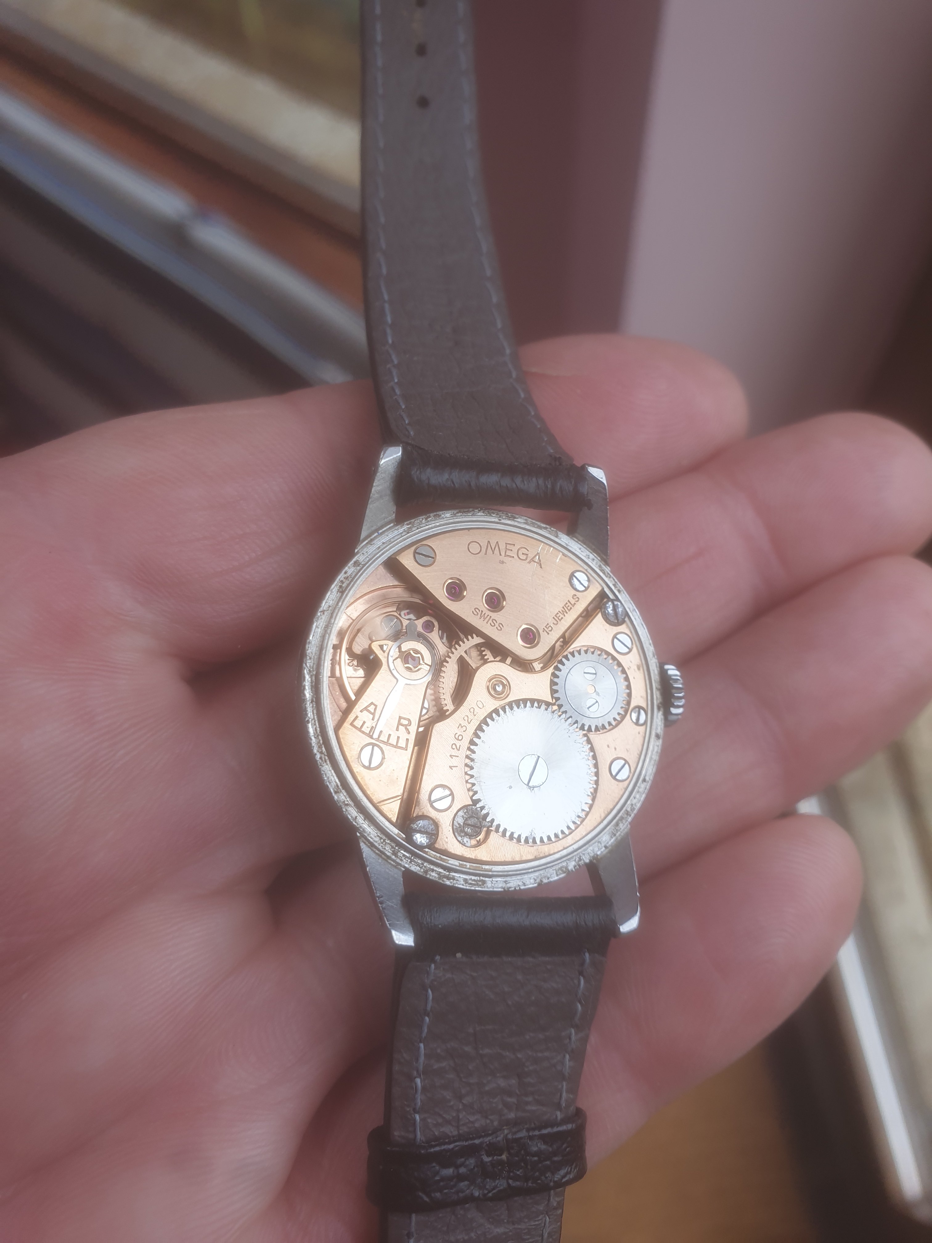Omega 2495-2 dating from 1947 . Watch is in good condition. Nice dial patina and small second hand at 6 o'clock. Watch is keeping good time. Back case has an inscription. PayPal as a gift plus postage to be discussed. Price 350 euro. Thanks to omegaforums and you for looking.