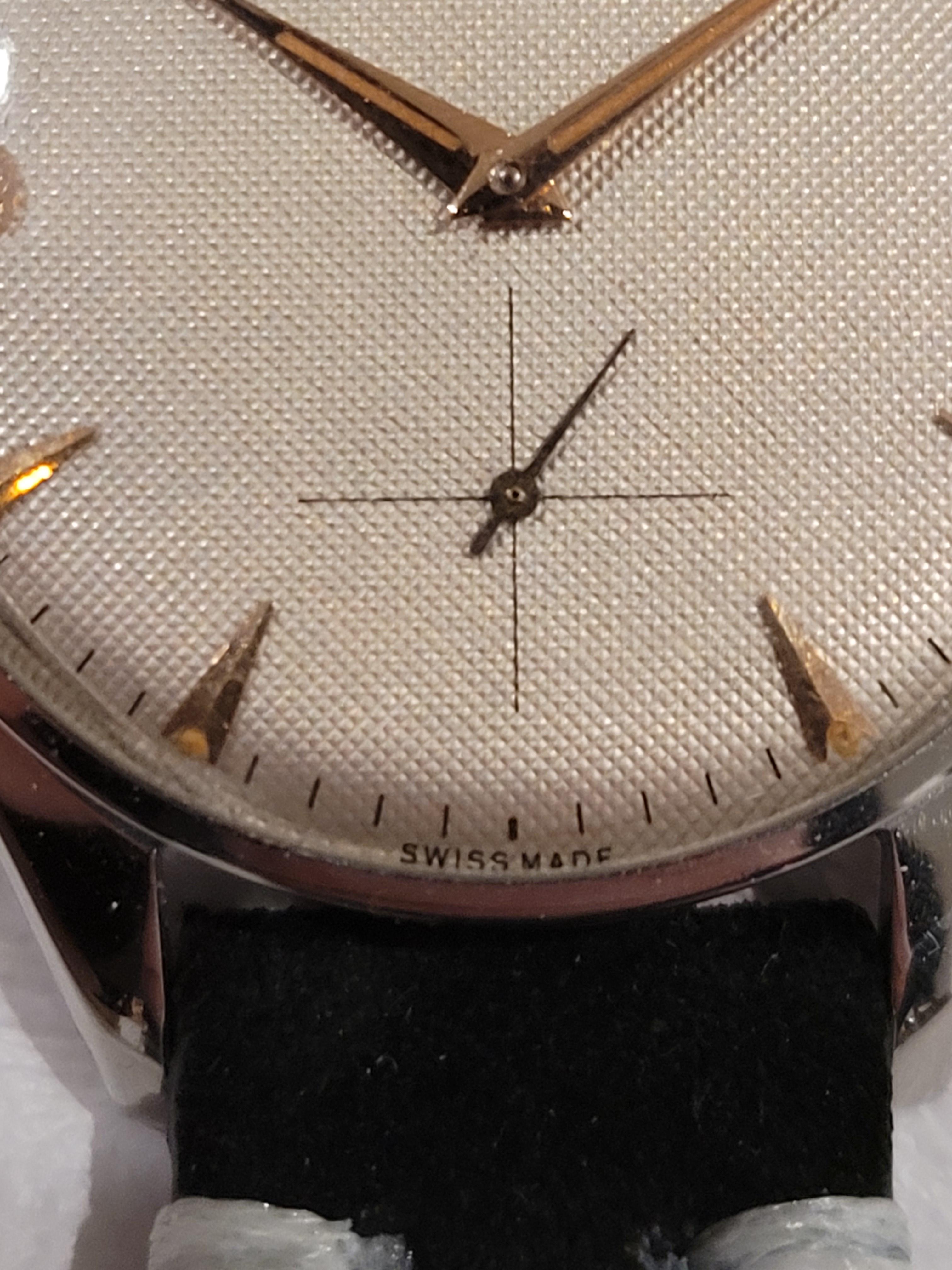 To my eyes, the font of “Swiss Made” looks a little off. Also, I thought the cross-hair sub-seconds was more of a late 1950’s style.