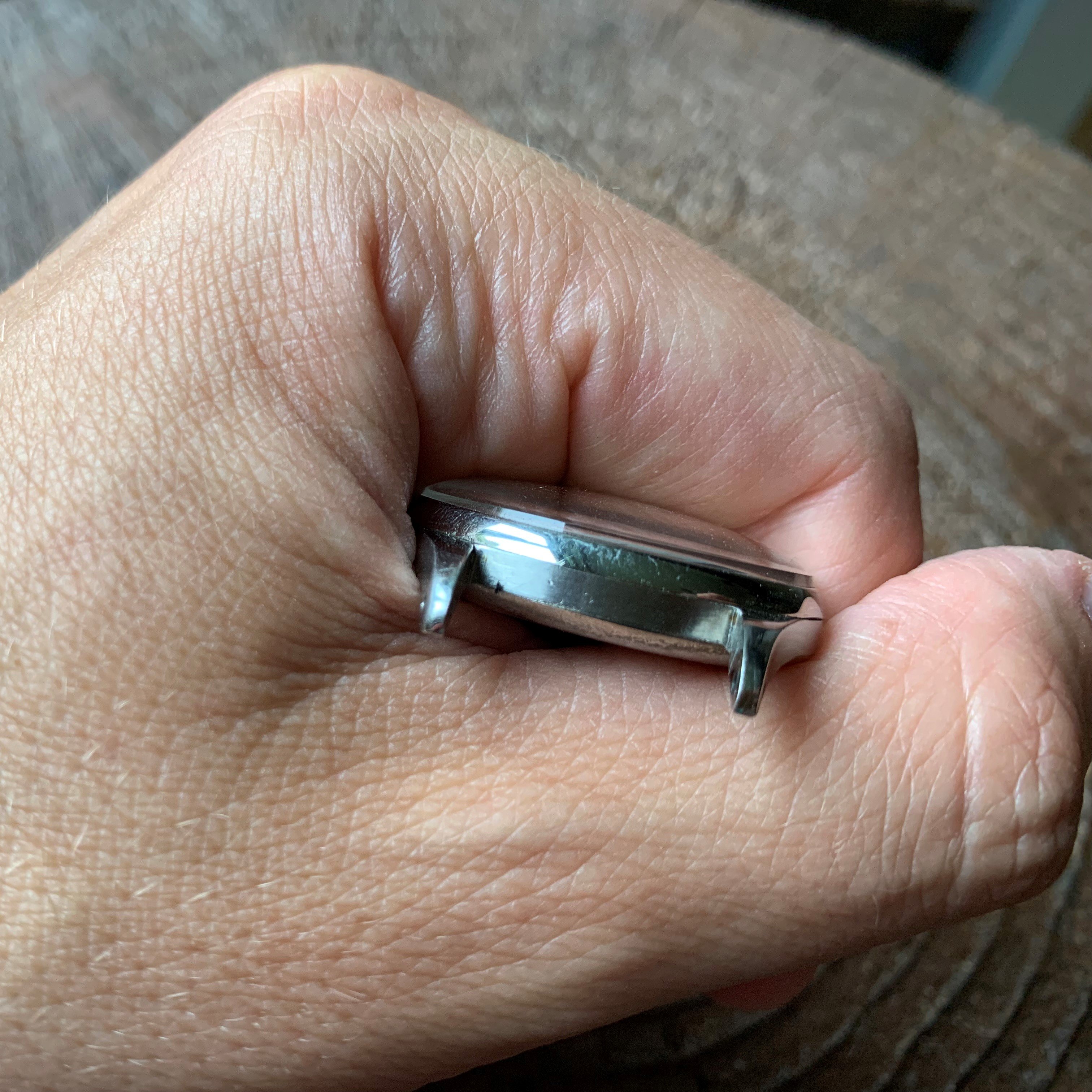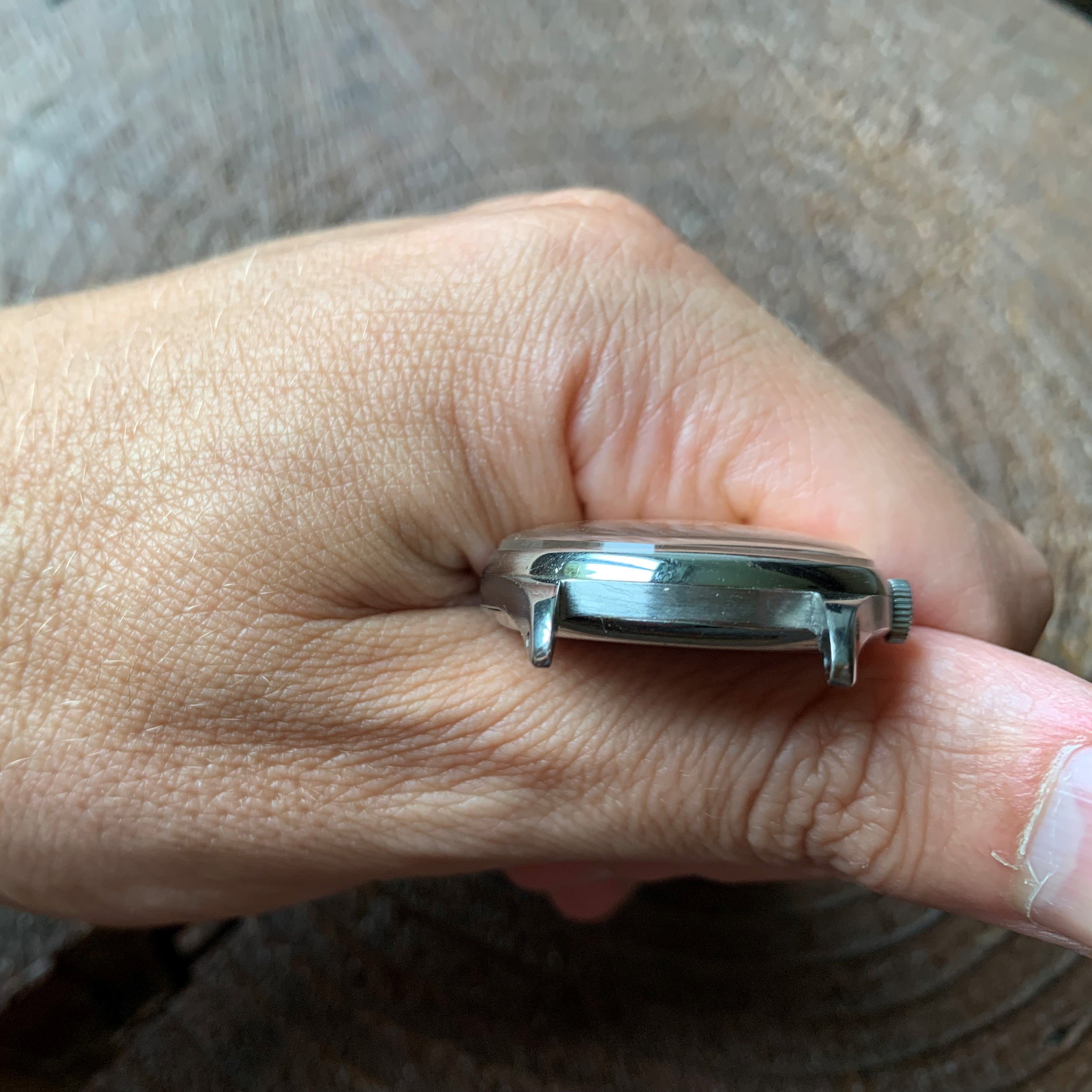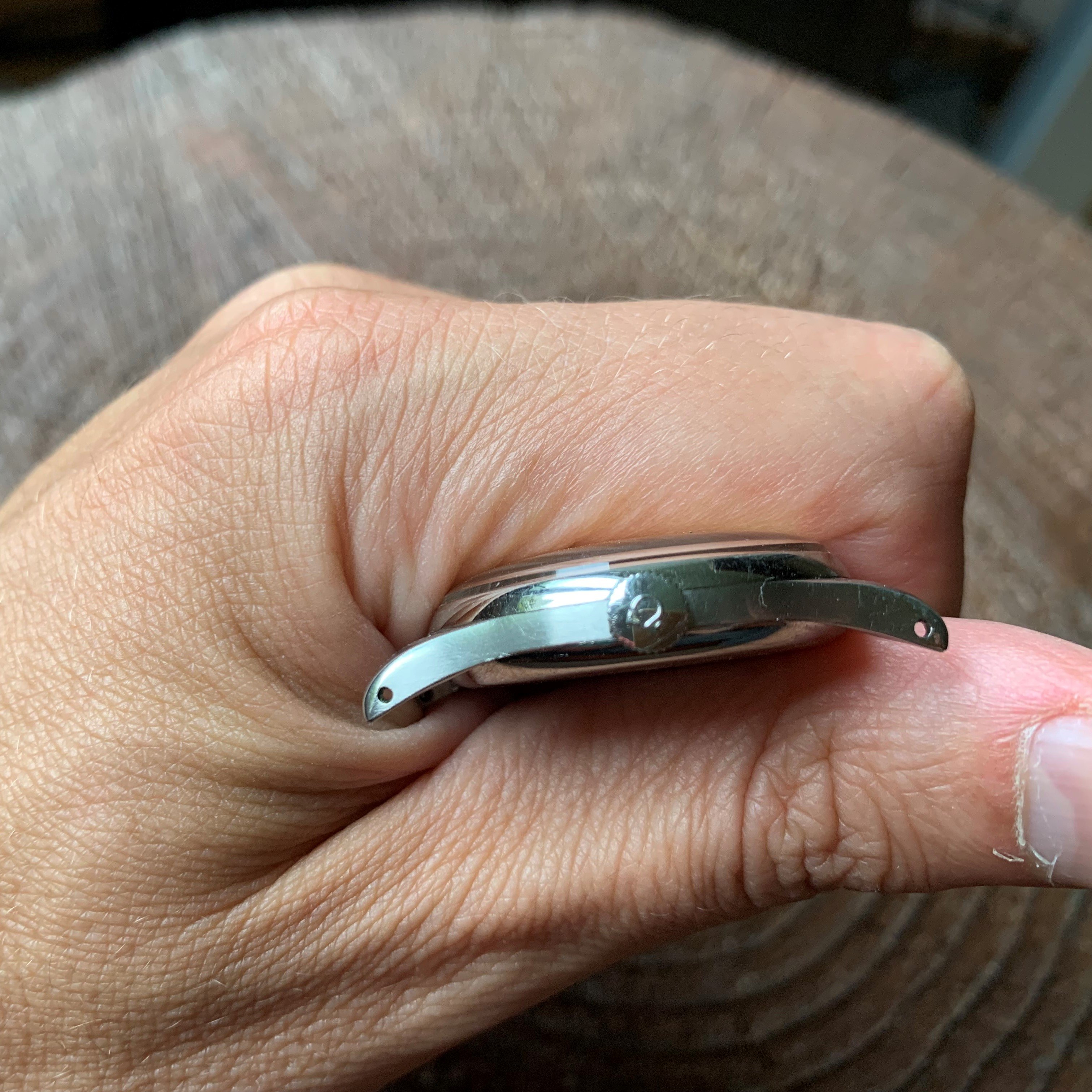 Case is in sharp condition, no major dings or dents. Lugs are 18mm and case is 35mm, so for you folks who like smaller watches I would still consider this unisex.
