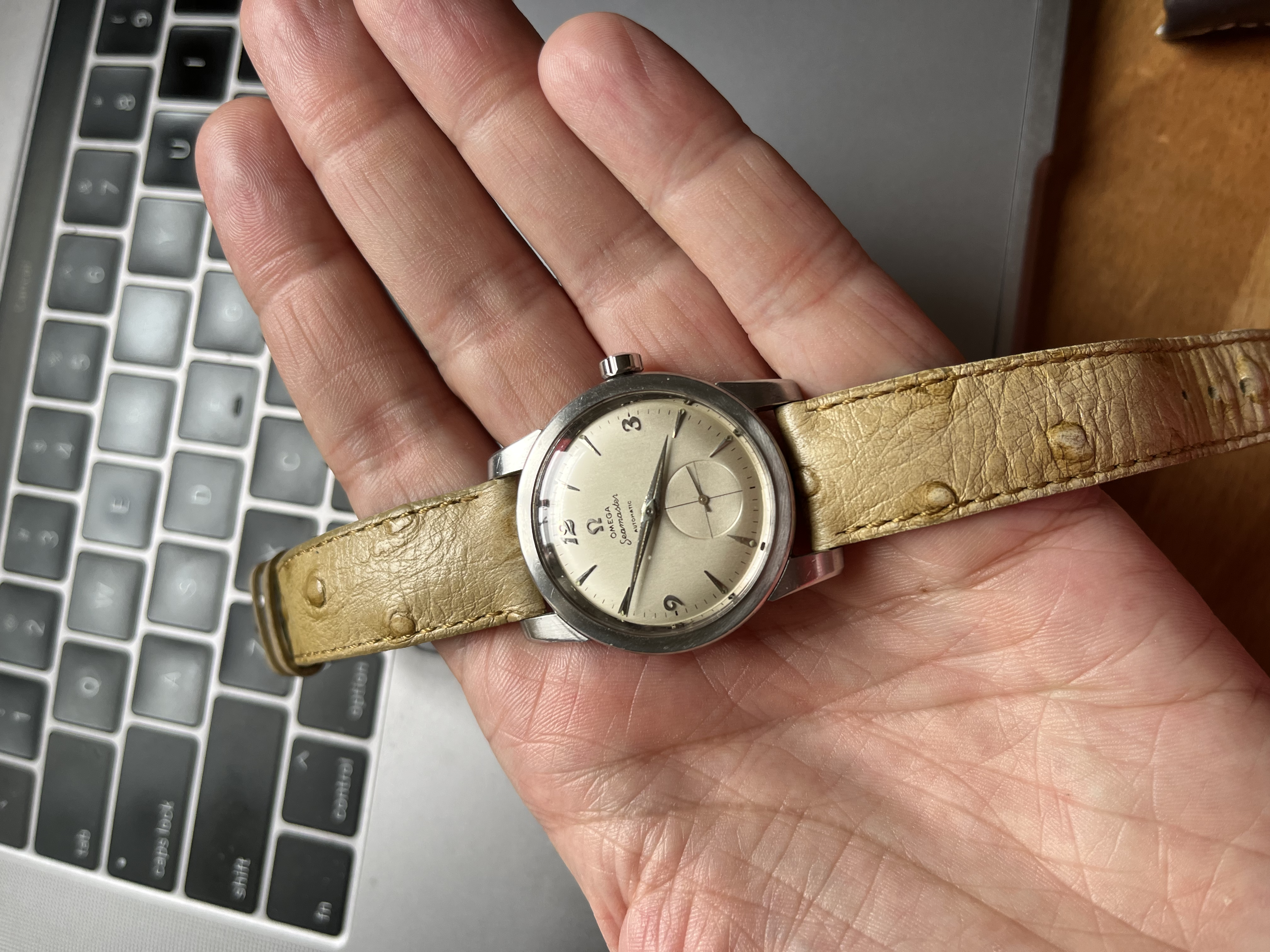 Comes with a nice lemon ostrich leather strap (NOT THE BROWN ONE).