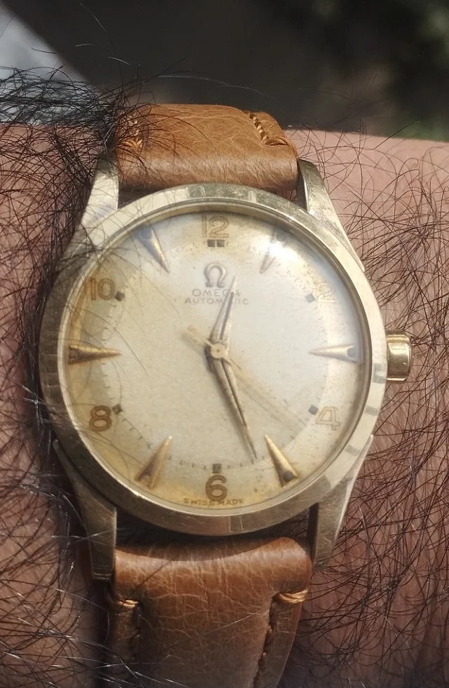 This one has serious condition issues. The dial may have seen some water ingress, or at the very least the « patina » is quite unattractive in my opinion. The case may even have a small hole in it.