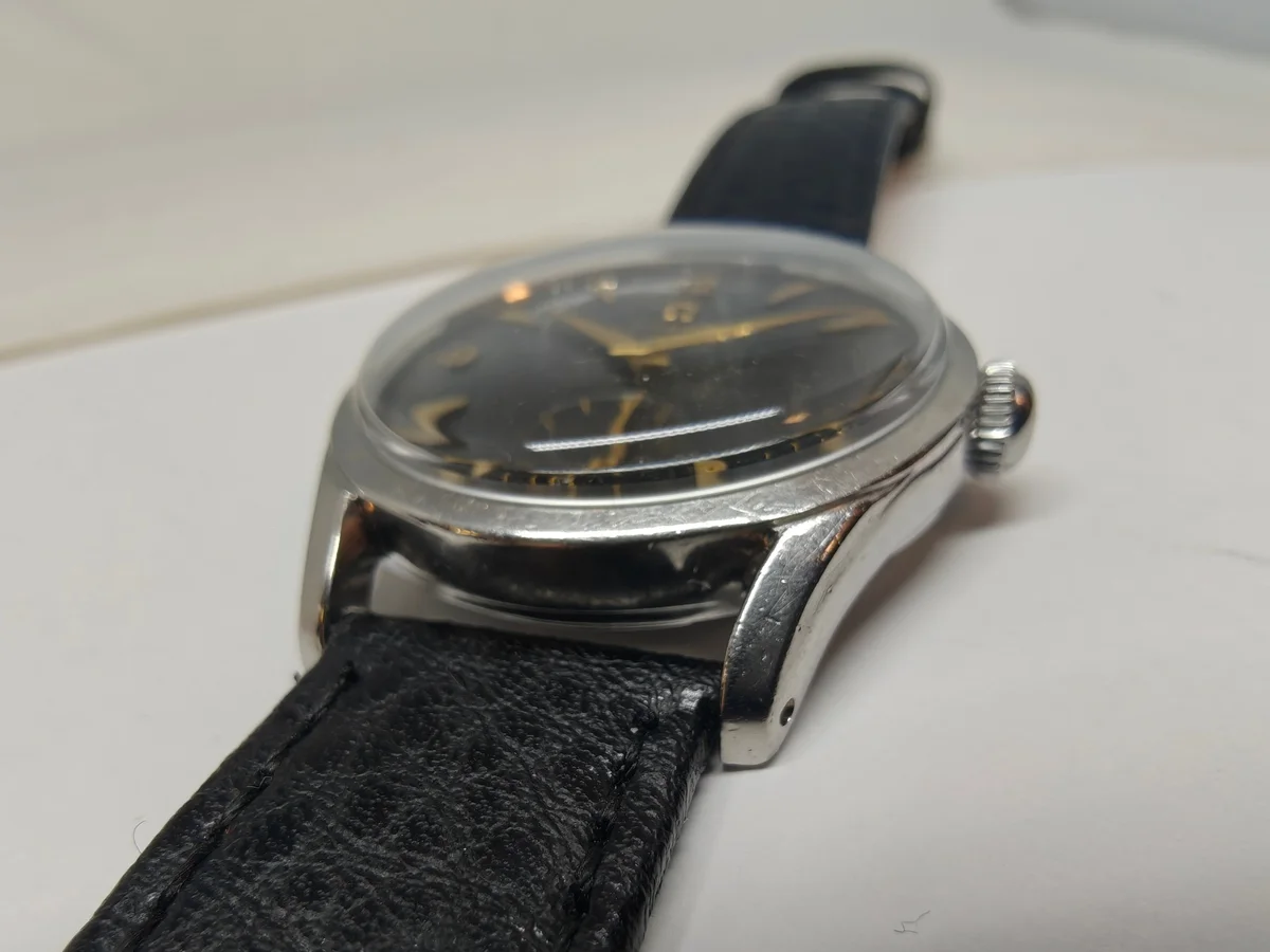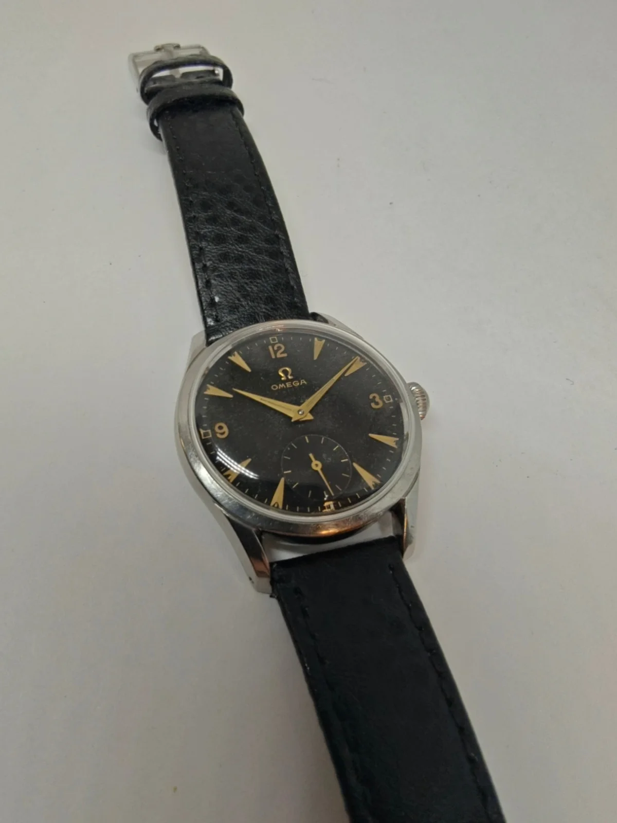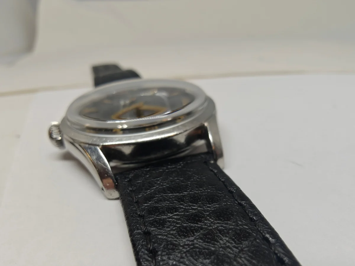 Black leather strap with omega buckle (do not know if it is original to the watch) is included