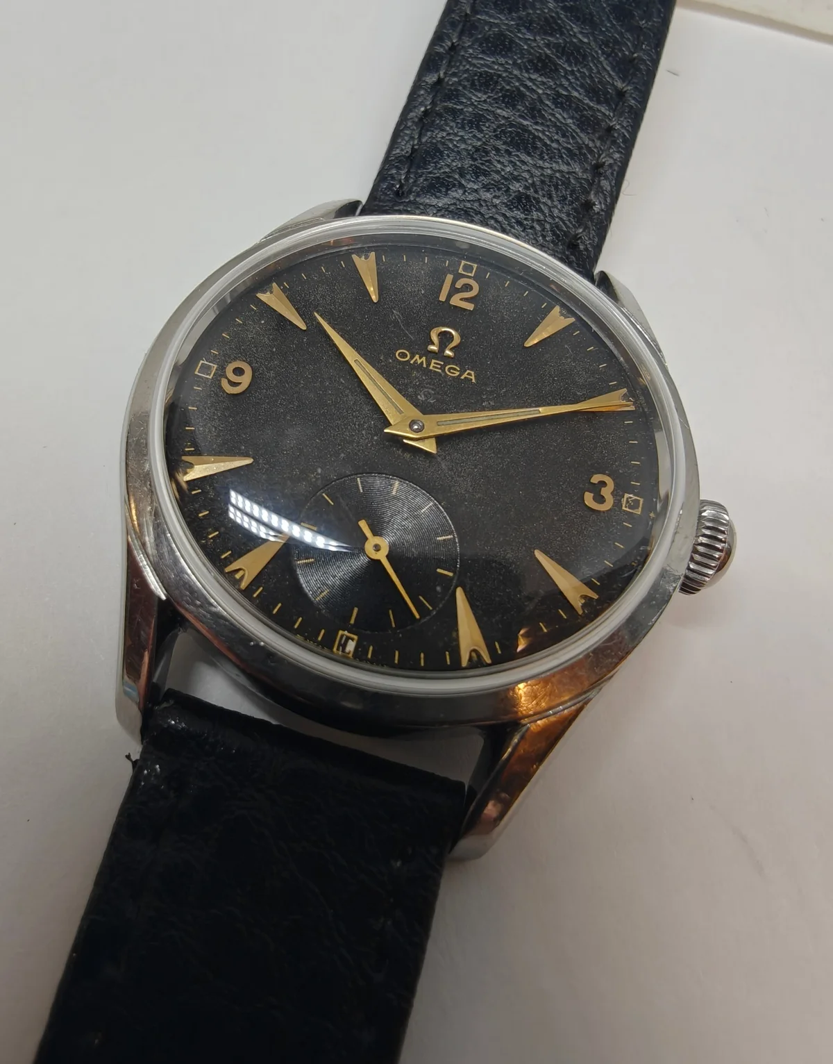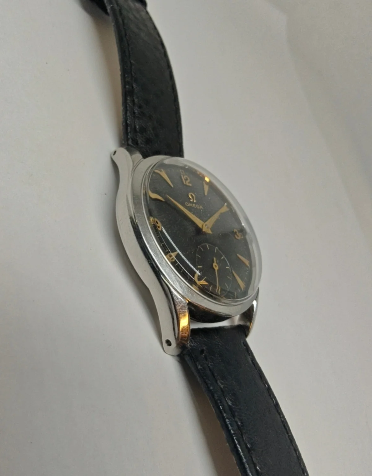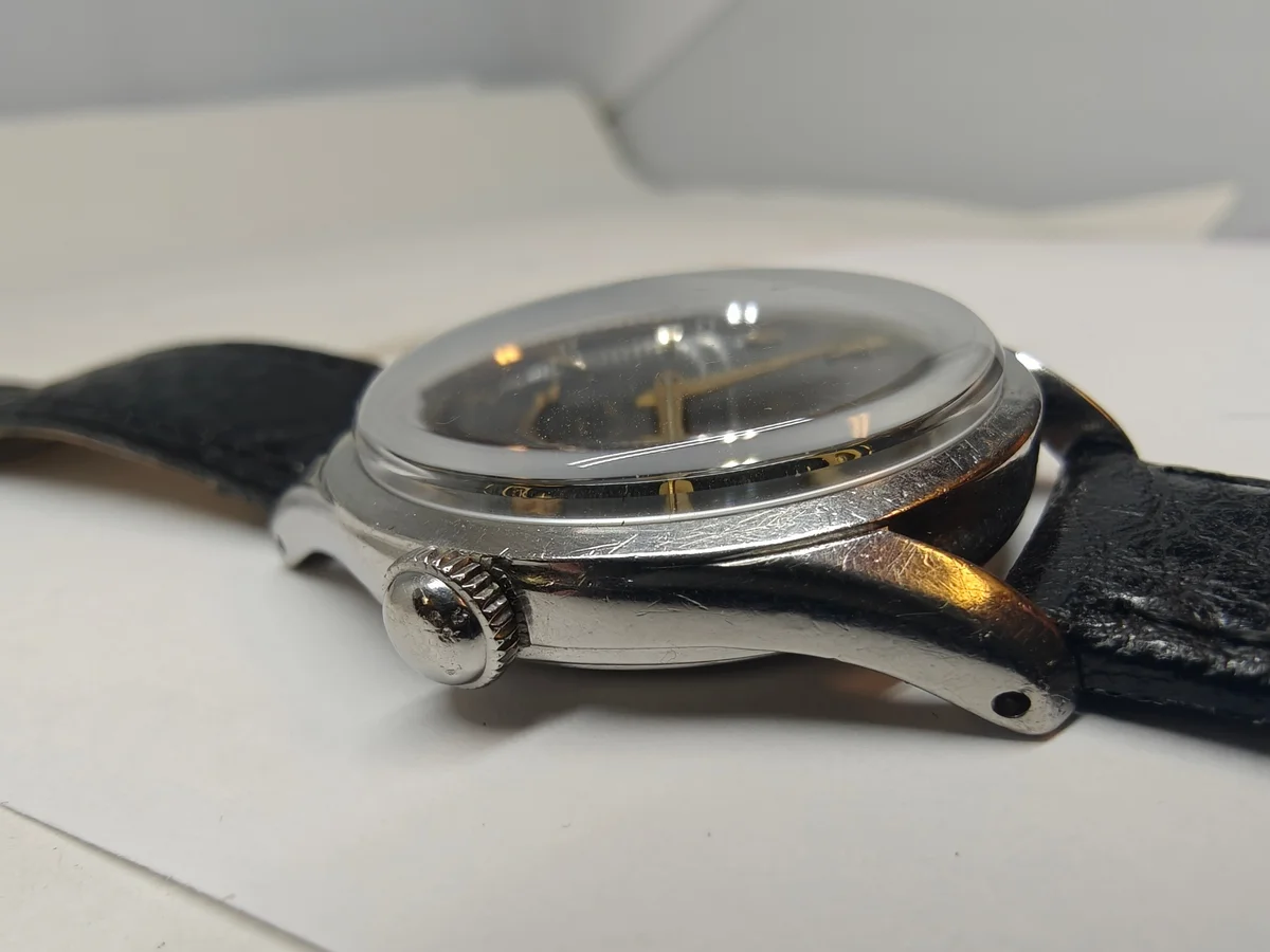 Black leather strap with omega buckle (do not know if it is original to the watch) is included
