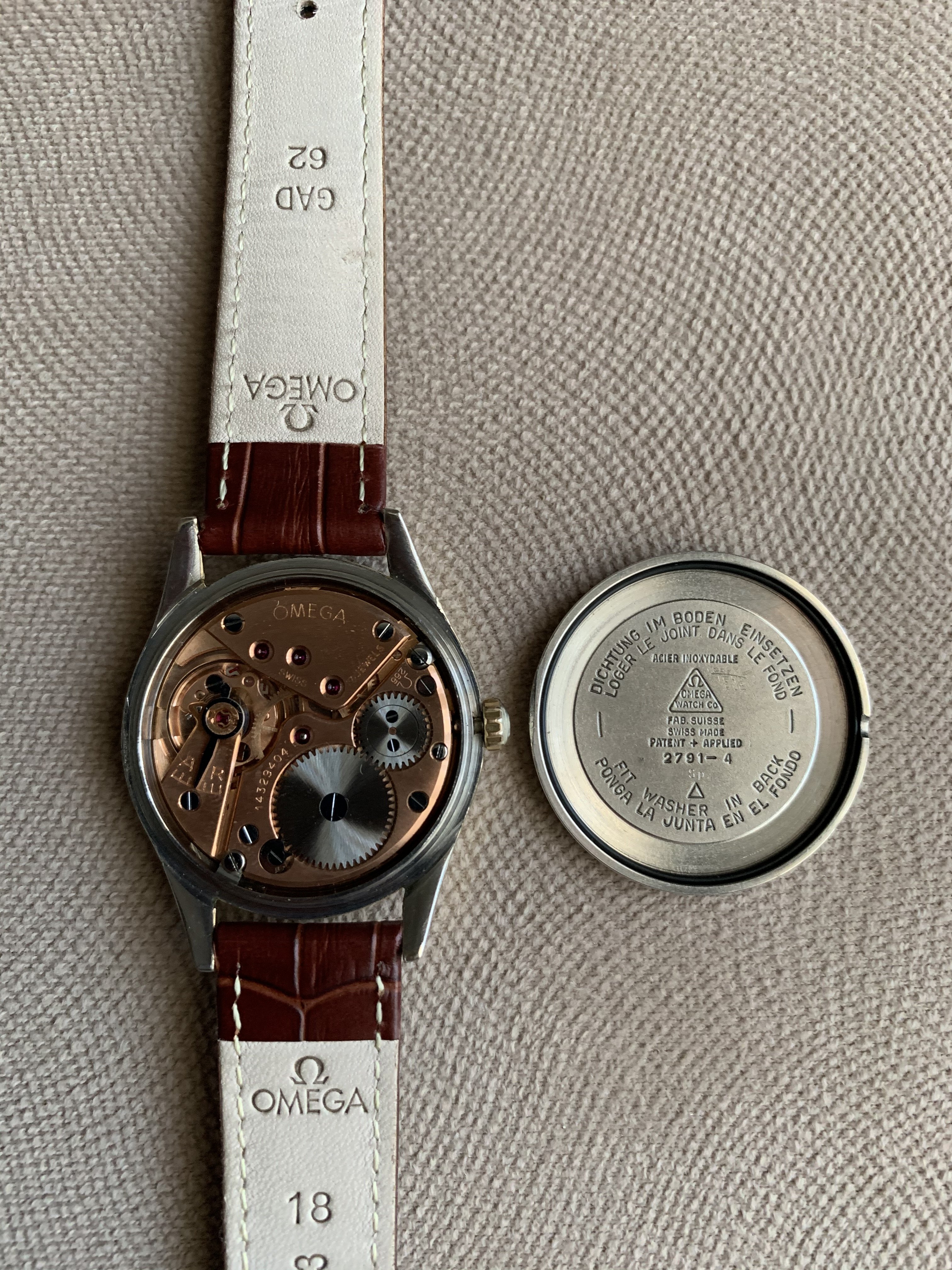Here is for sale a great Omega 2791-4 watch from 1954. The watch is stainless steel gold capped. On sale is the watch with a goldtoned stretch bracelet and brand new leather strap.