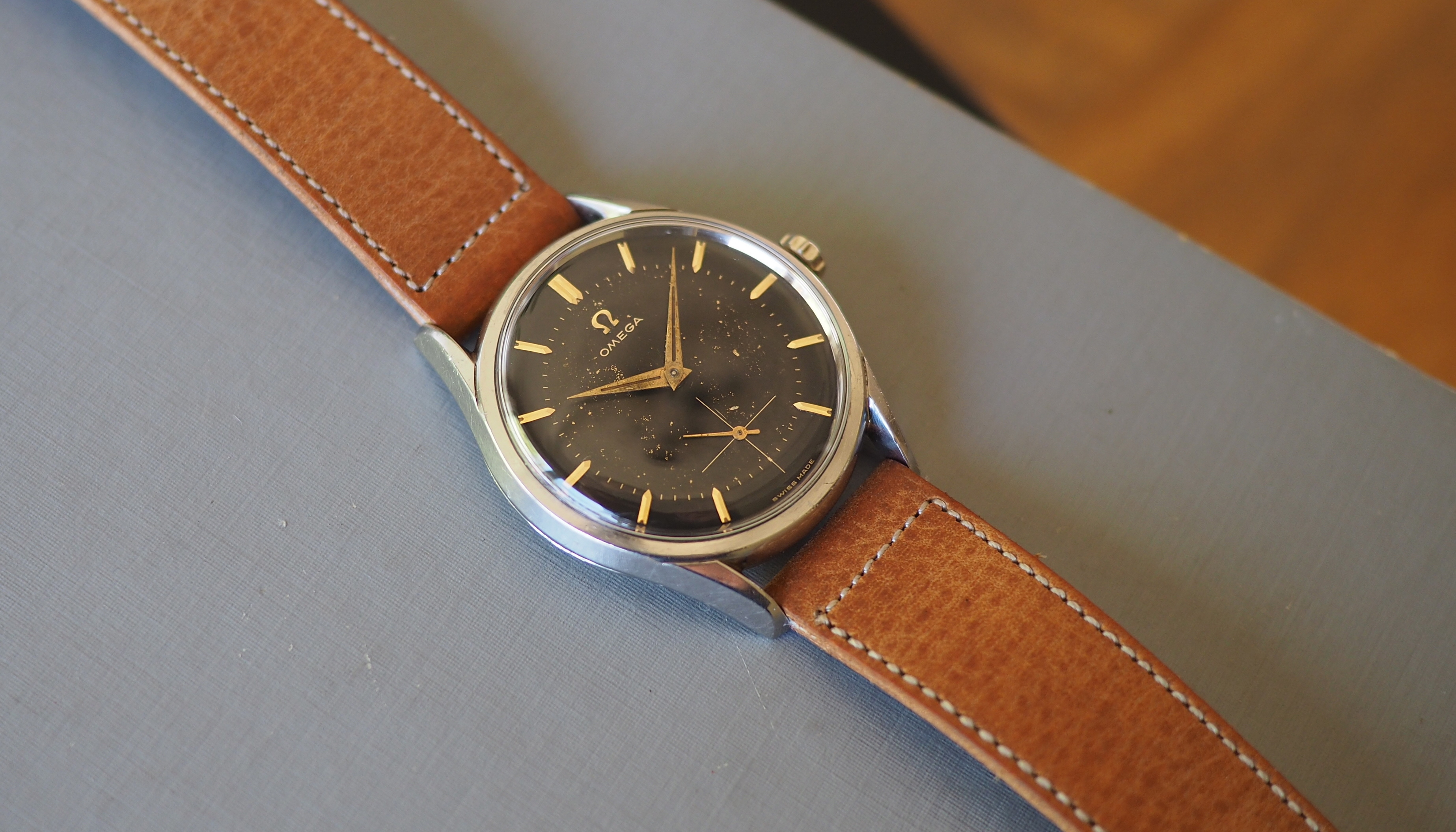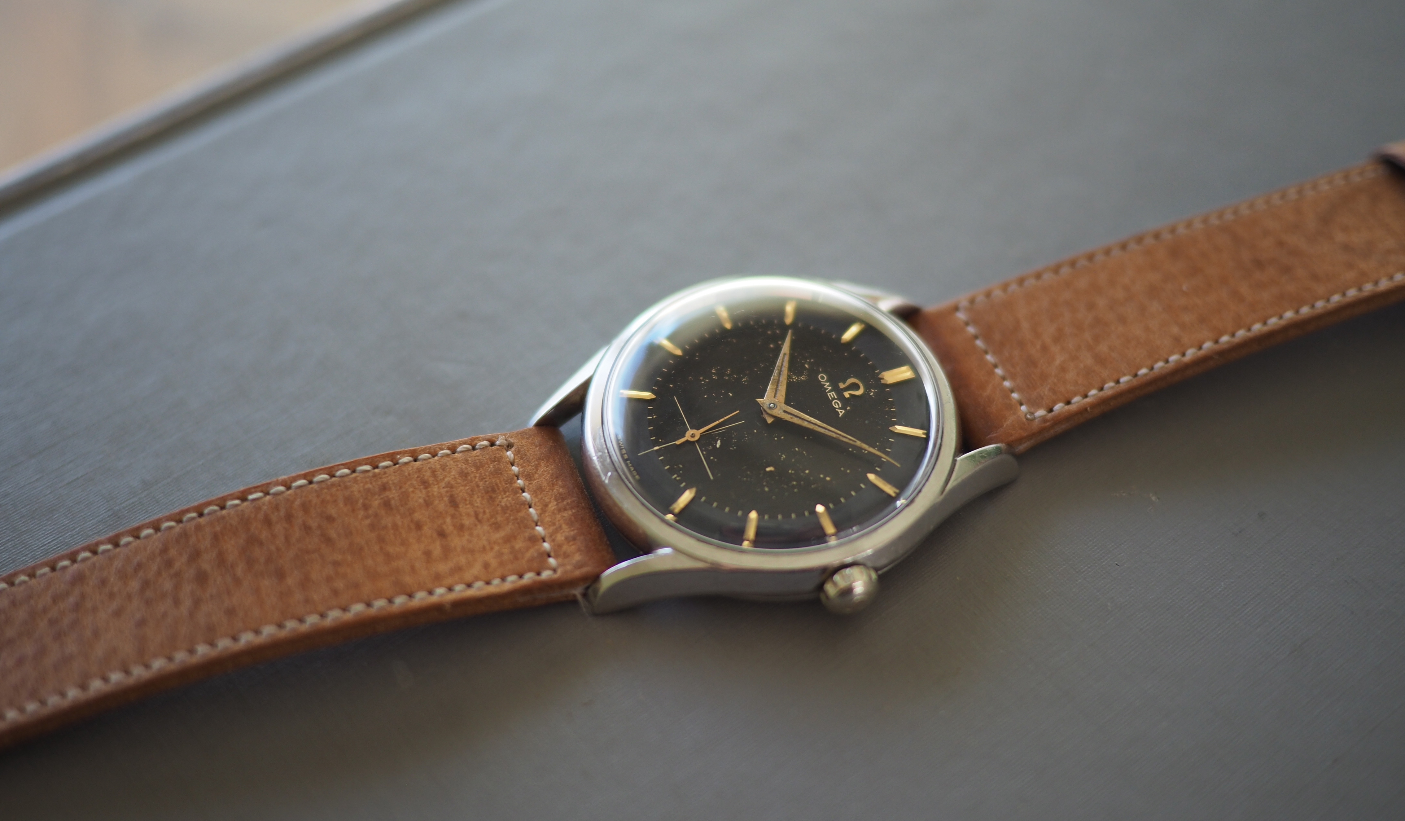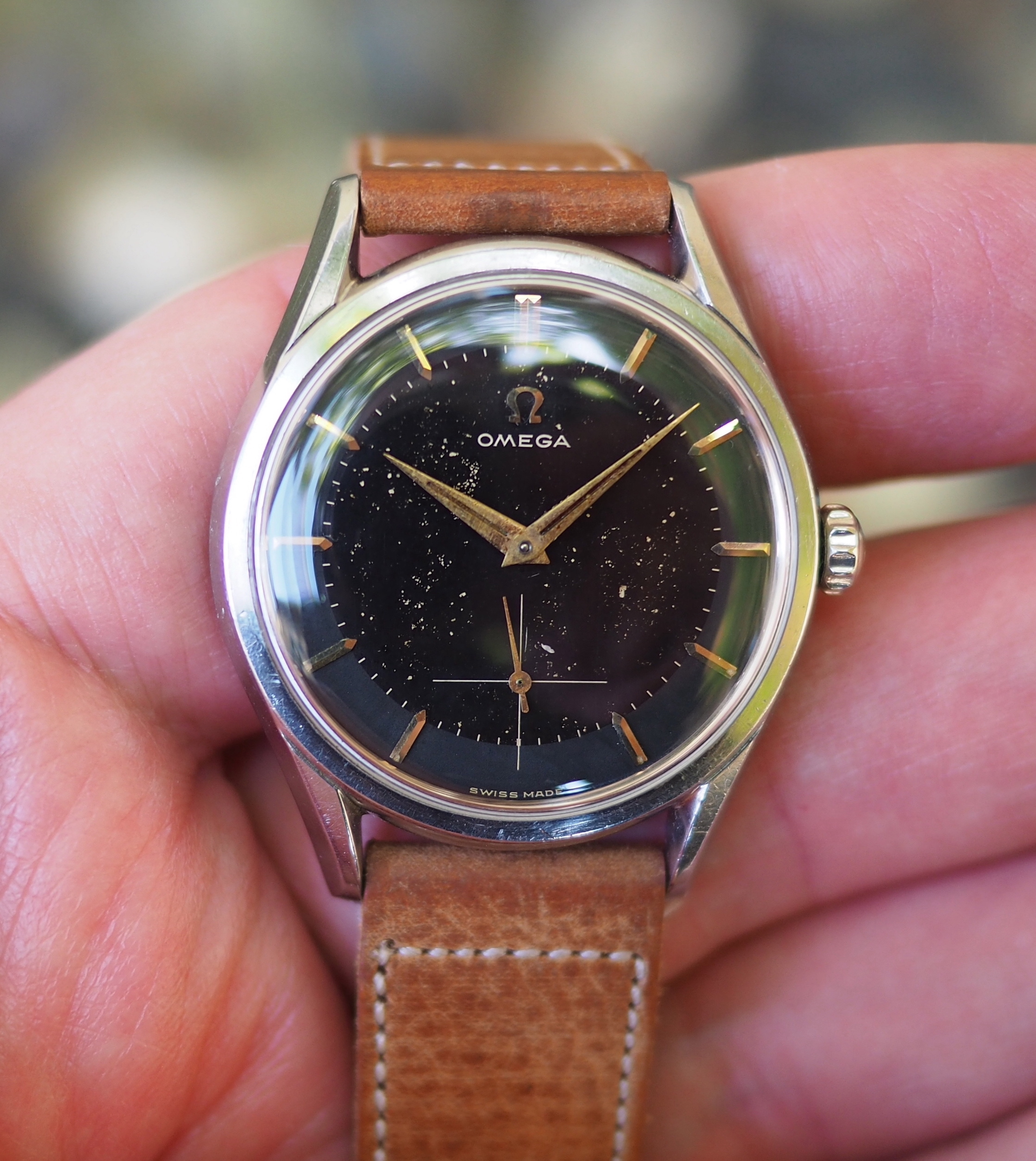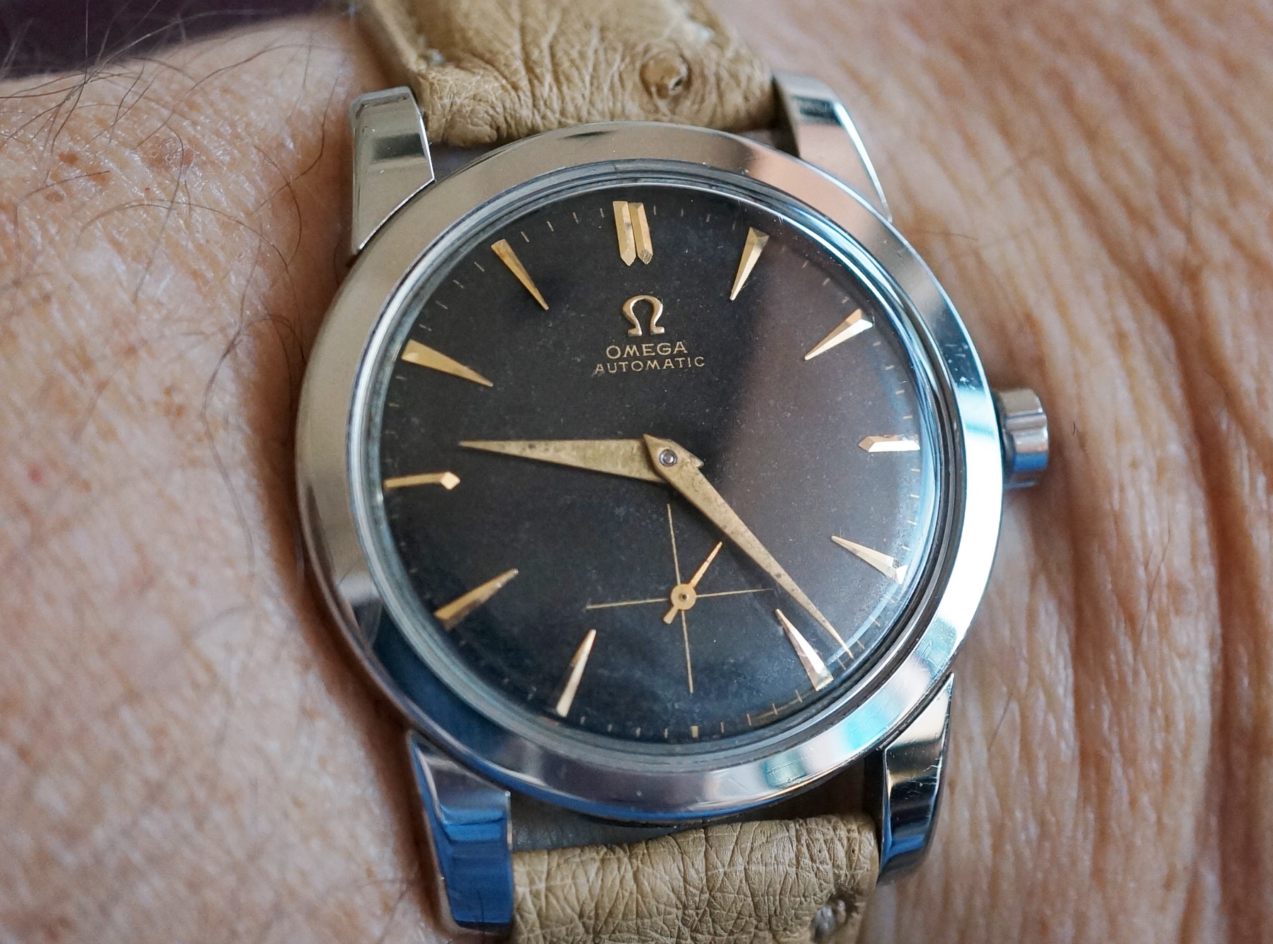 ·This is a recent arrival for me. It's an unmarked Seamaster with a two-tone gilt dial from ~1954.
