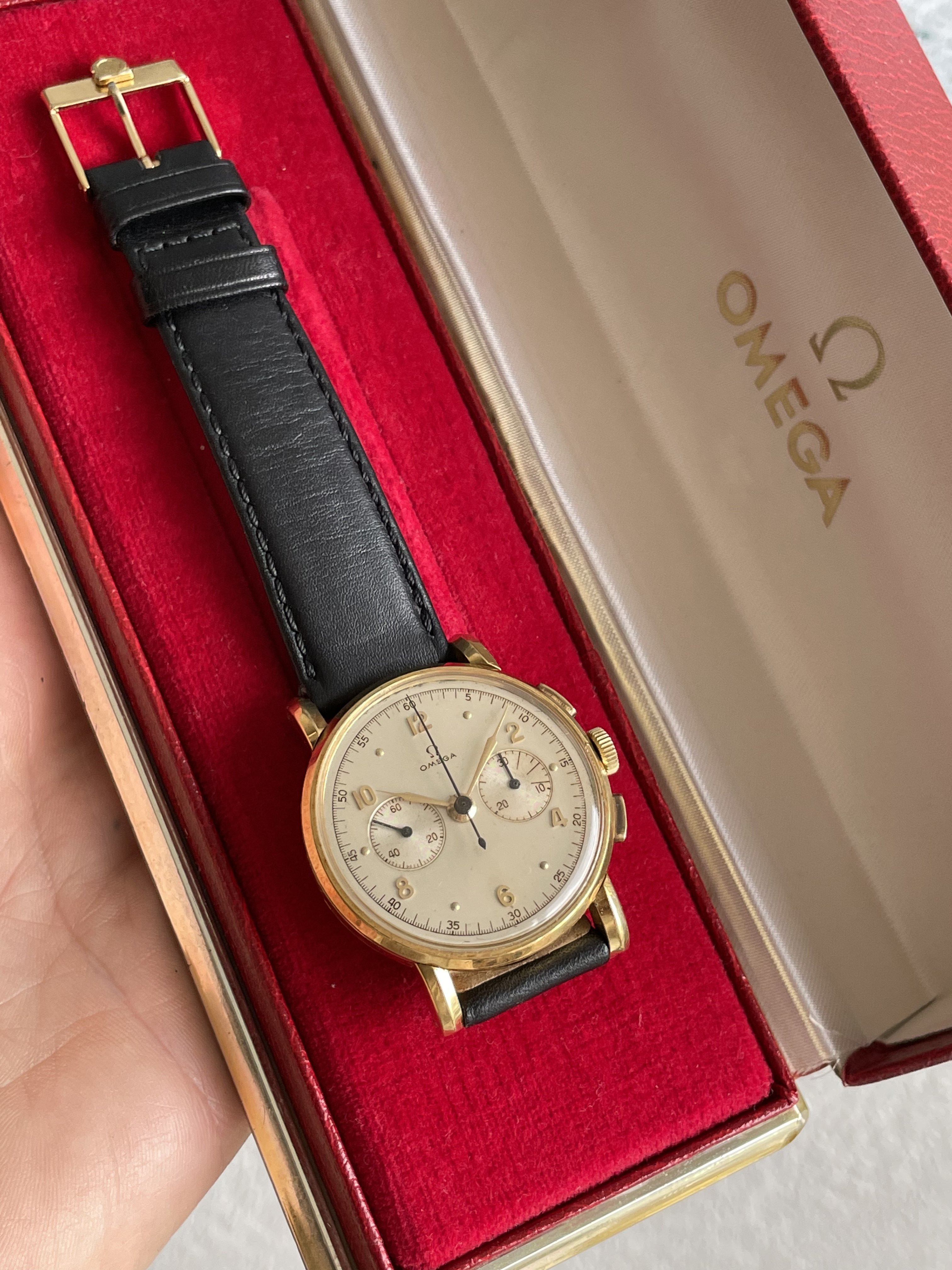 Posts 659 Likes 1,349 trash_gordon ·Apr 21, 2024 Up for sale comes a beautiful Omega Chronograph in 18k Gold The 27CHRO Movement is working properly. Servicehistory is unknown. Case mesures 35mm without the crown. Pricedrop to 2800€ / 2650CHF including shipping Edited: Aug 25, 2024