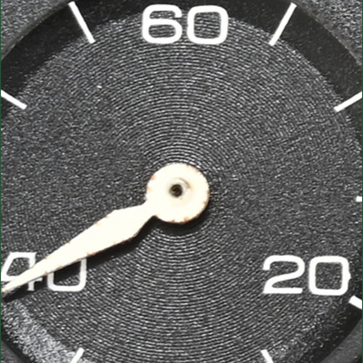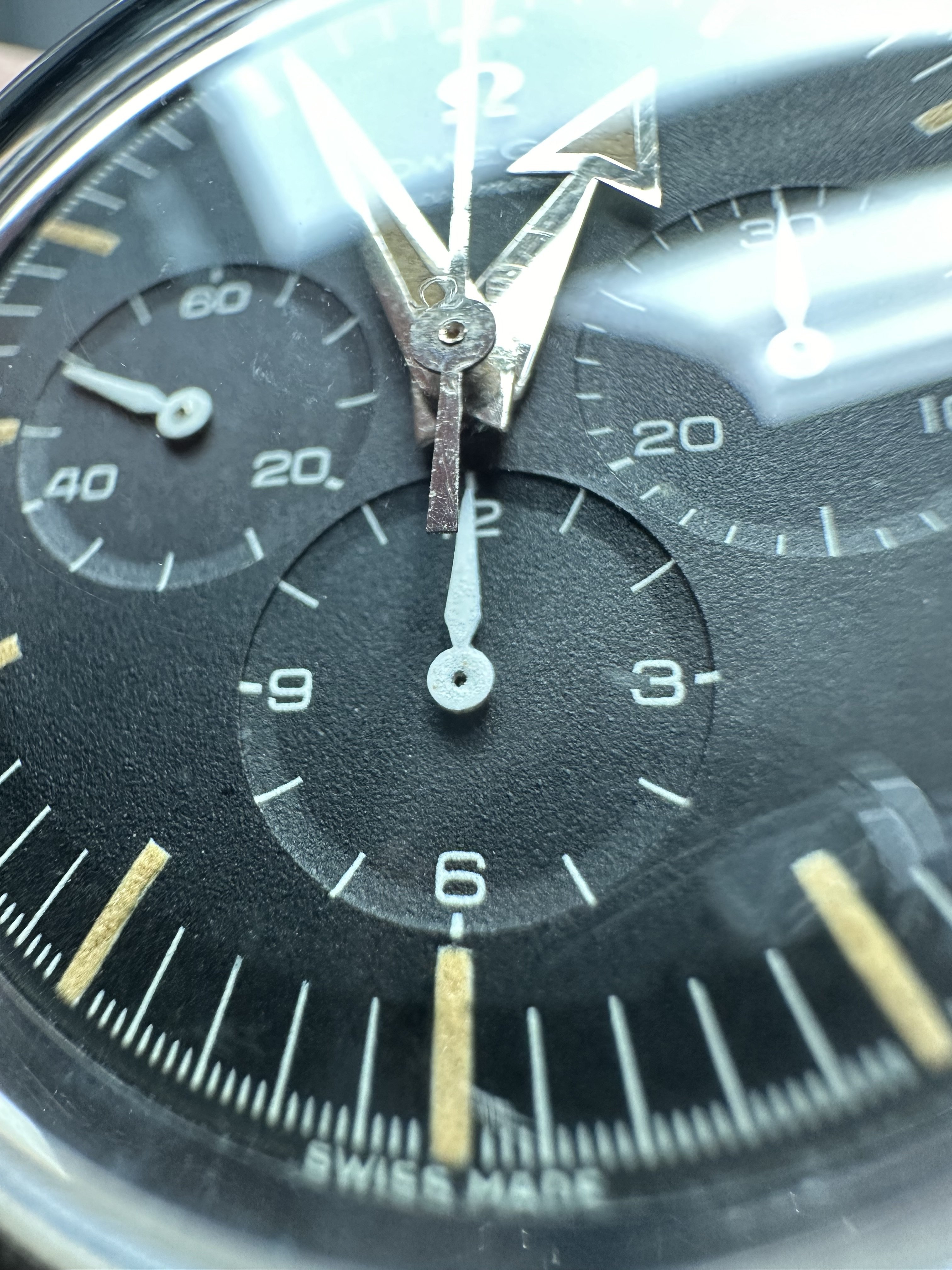 I noticed that on my dial, the chronograph registers doesn’t seem to have the concentric circular ridges on them. And it is also what I observed on several 2915 as well. But I do also see chronograph register ridges on several example. What I thought was, either some batches have them and some don’t? Or it’s due to age, the black paint kind of “smudge” or blurred the ridges and as the 2915 has much finer ridges, they are easier to be hidden, and disguised with age.