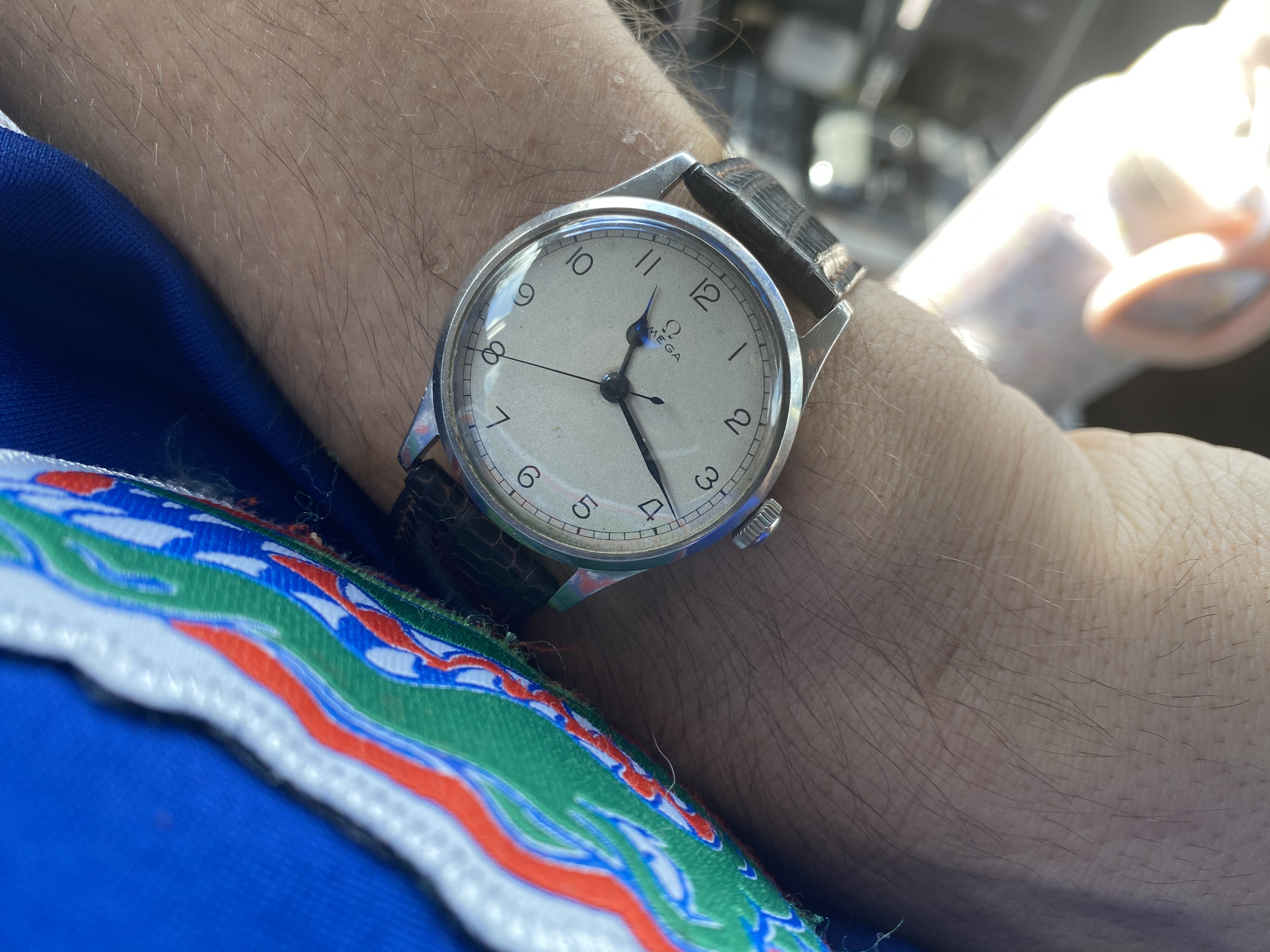 Not a fan of NATO straps because of long term damage to casebacks. That watch has seen a lot in 80 years. Why not give it a break?