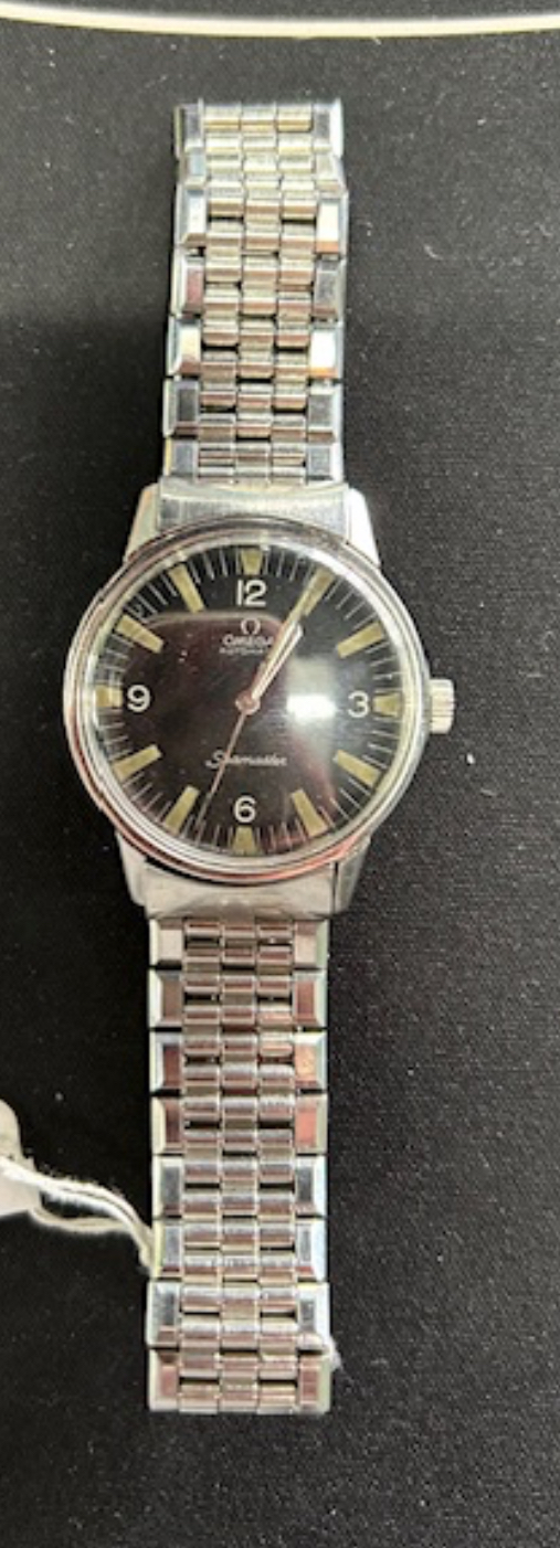 ·I’m looking for advice on the nifty little 34 mm Omega Seamaster 300 I found at an antique store. It’s on a cool little Omega beads of rice bracelet with a glide lock system. From what I’ve found, it seems to be rare, and I would appreciate any advice, including a fair market price since the information on it seems slim.