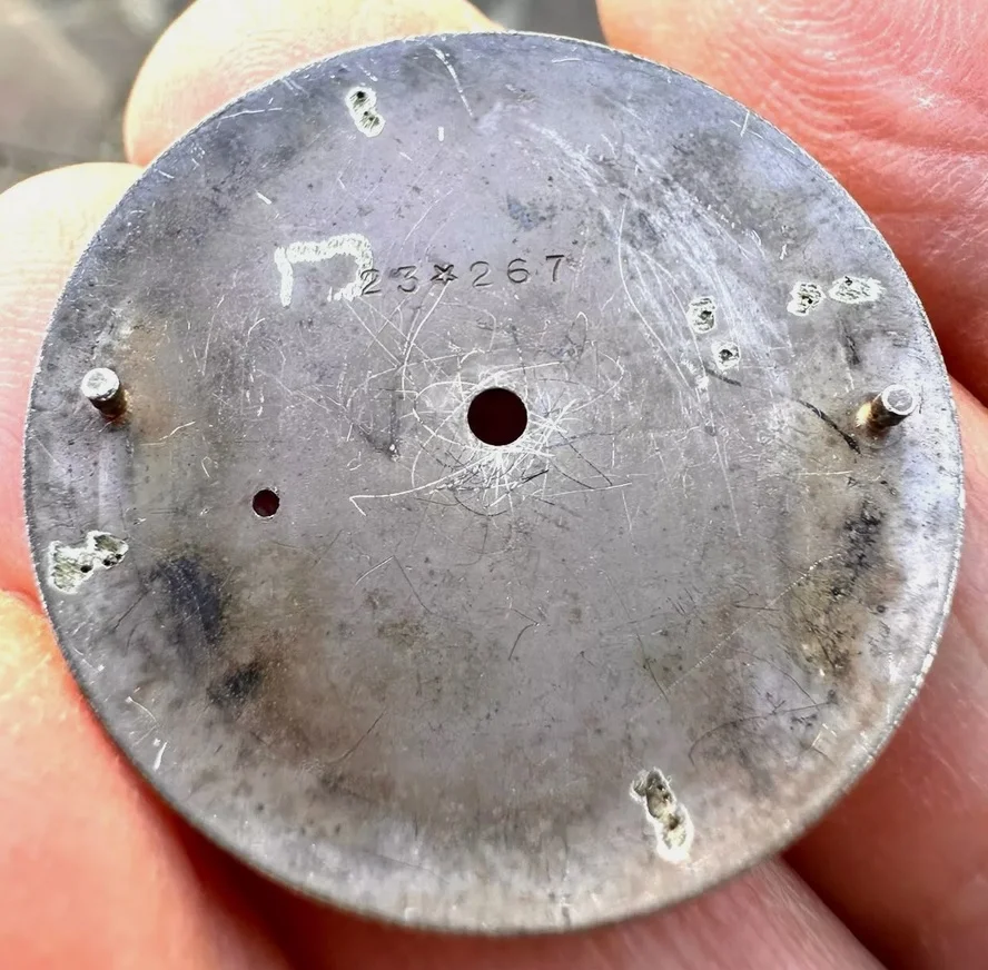 I also do not see the typical scratched in numbers on the back or a redialler's notch.