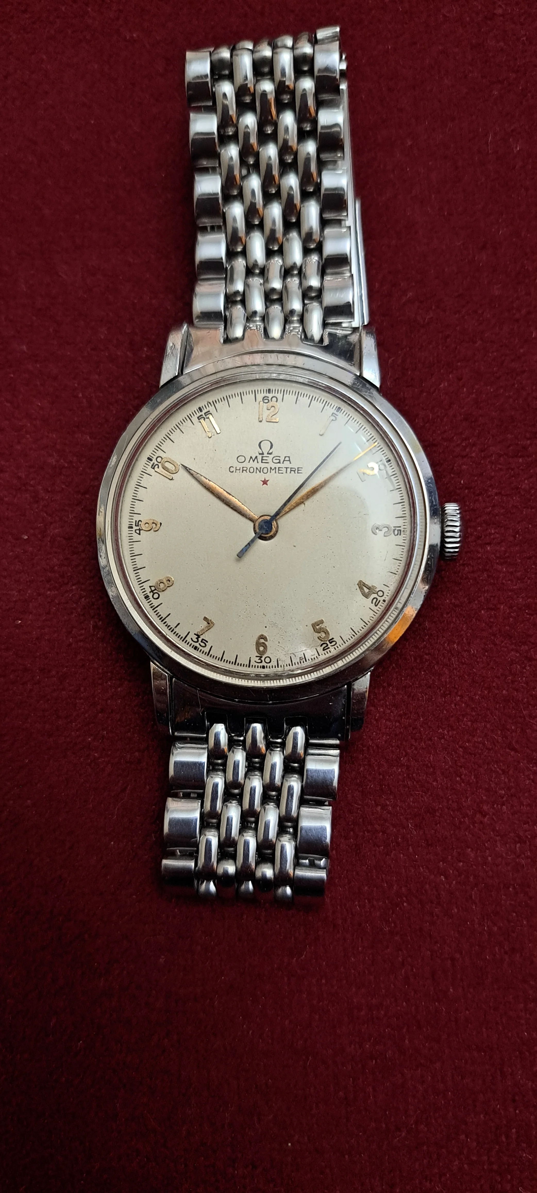 Unfortunately, the dial is repainted and the hands are mismatched. The clasp appears to be authentic, but I think that the rest of the bracelet is aftermarket.