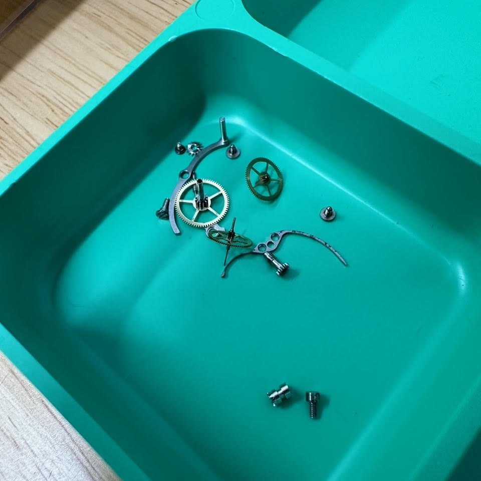 I am collecting parts, and am capable of doing the build, but not confident in my overhaul skillset to trust myself not to ham-fist the hairspring or some other avoidable error servicing the chronograph movement myself. Plus I'd rather it be in the hands with a better ability to acquire replacement parts if needed. Movement is "clean" (no corrosion) but runs -60 sec a day. Beat error 1ms so just needs a cleaning and lube. I don't see excessive wear, chewed up screws or other indications of hack work in the past.