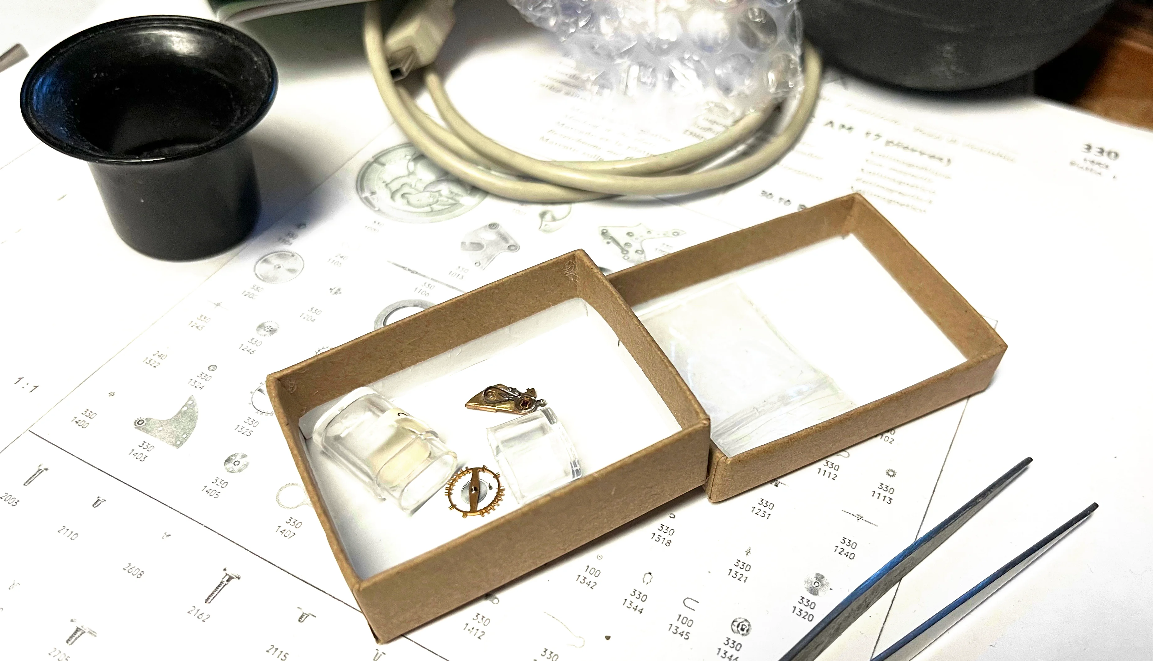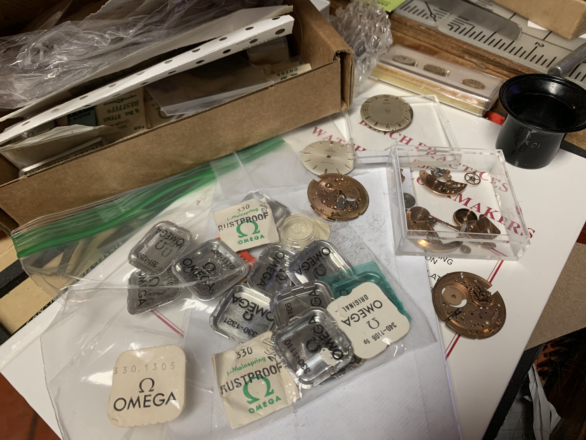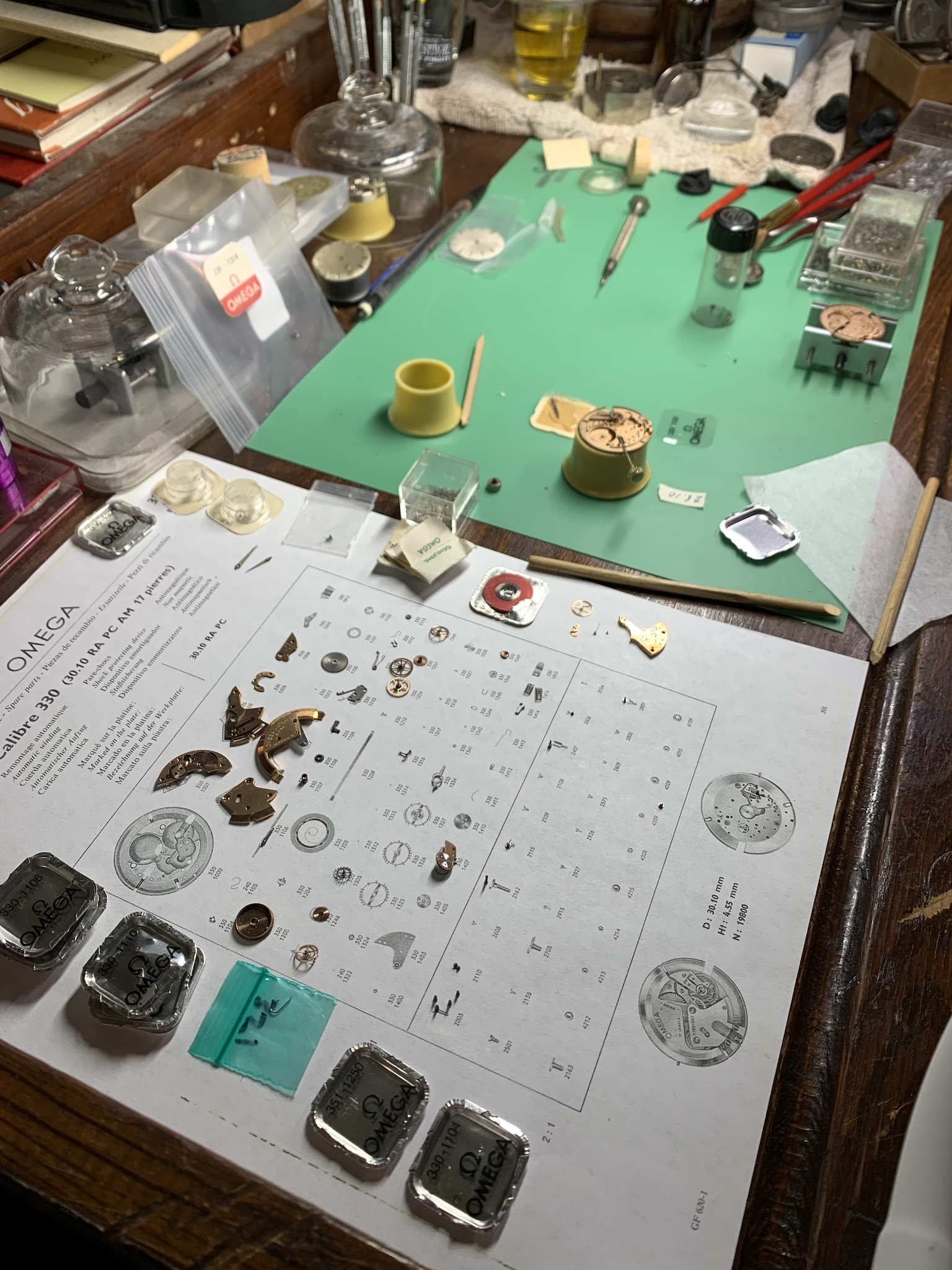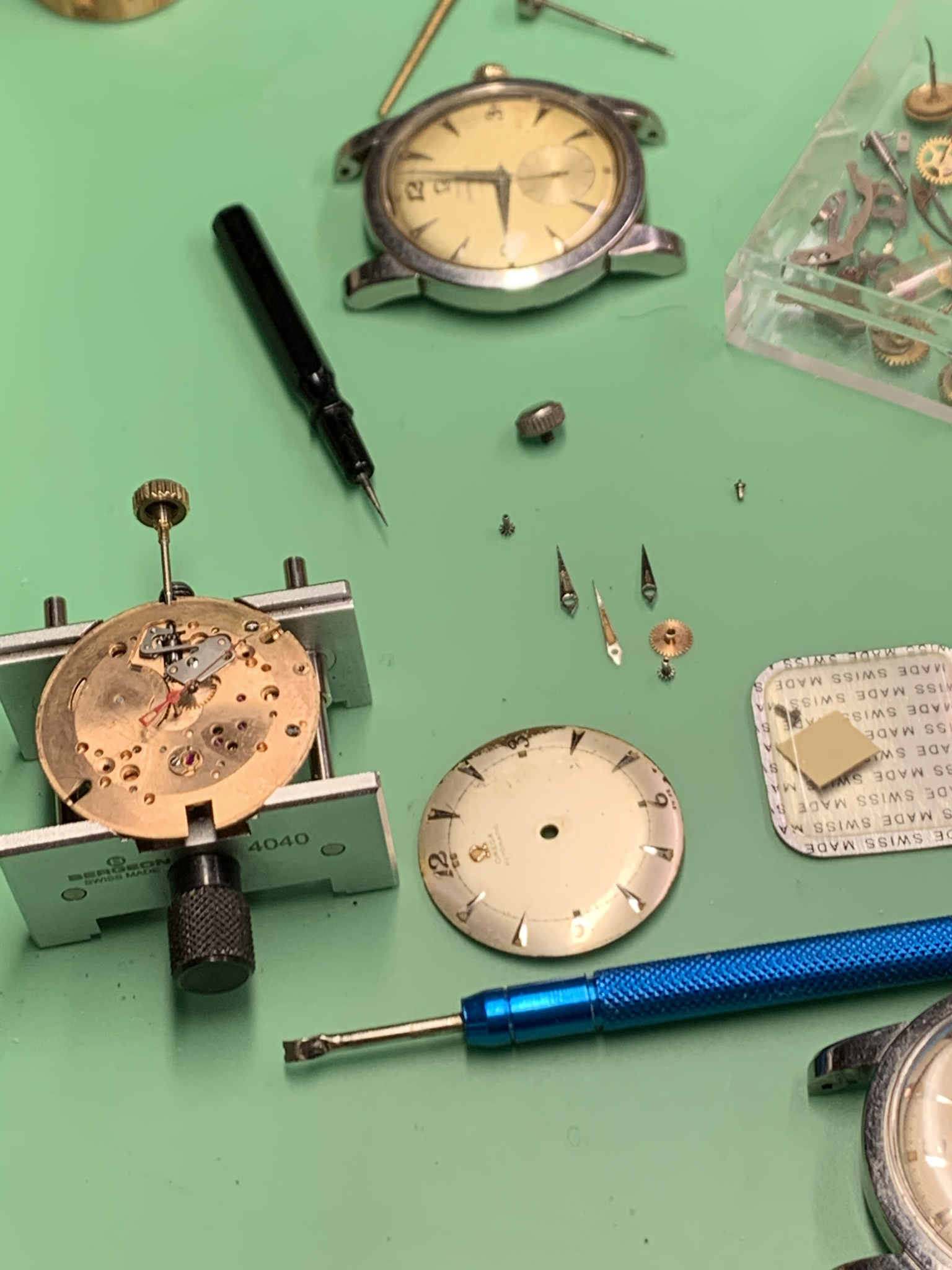 Almost there. But for some missing parts. Years ago I bought a collection of omega spare parts. As can be seen there are a lot of 330 parts.