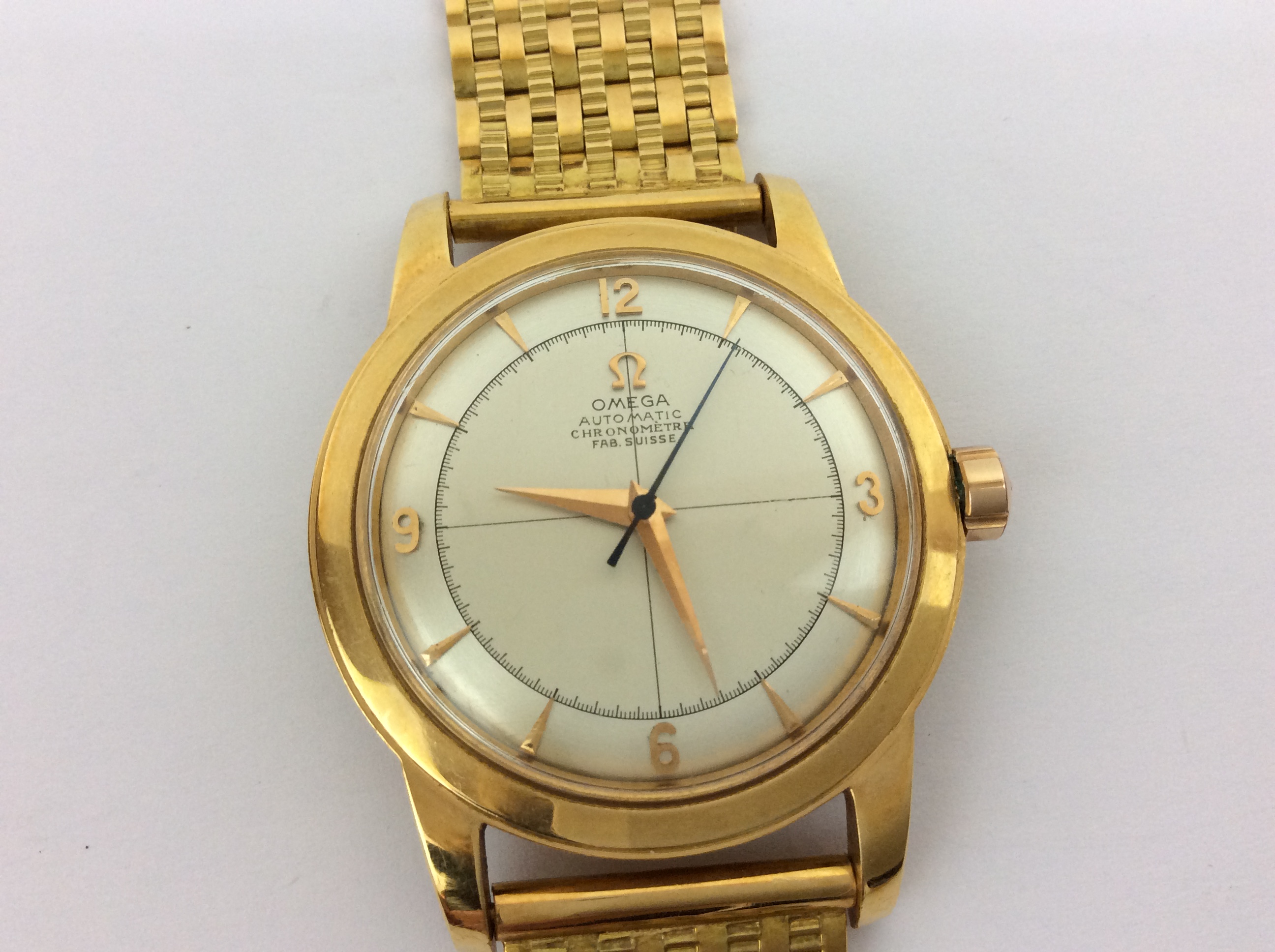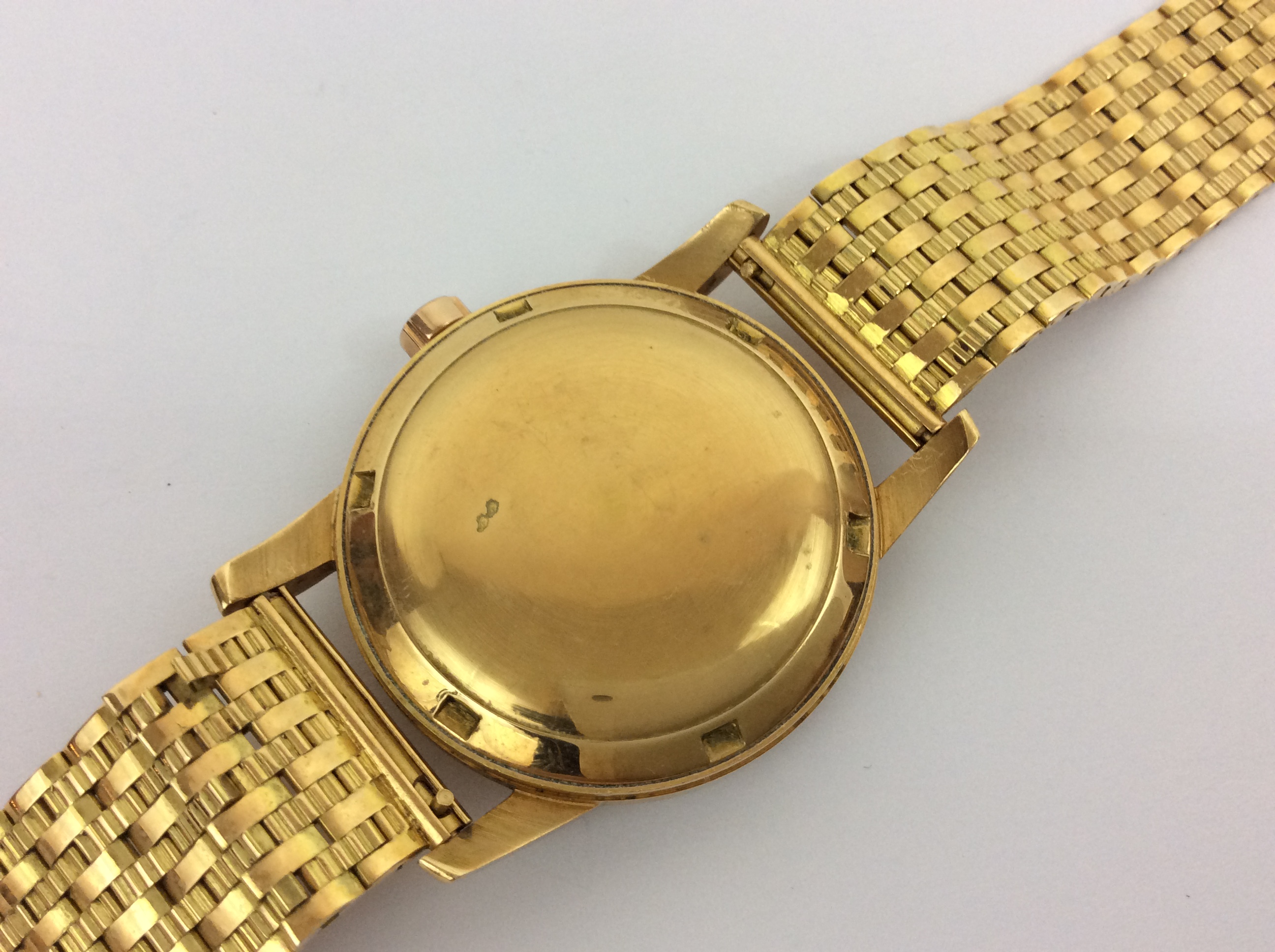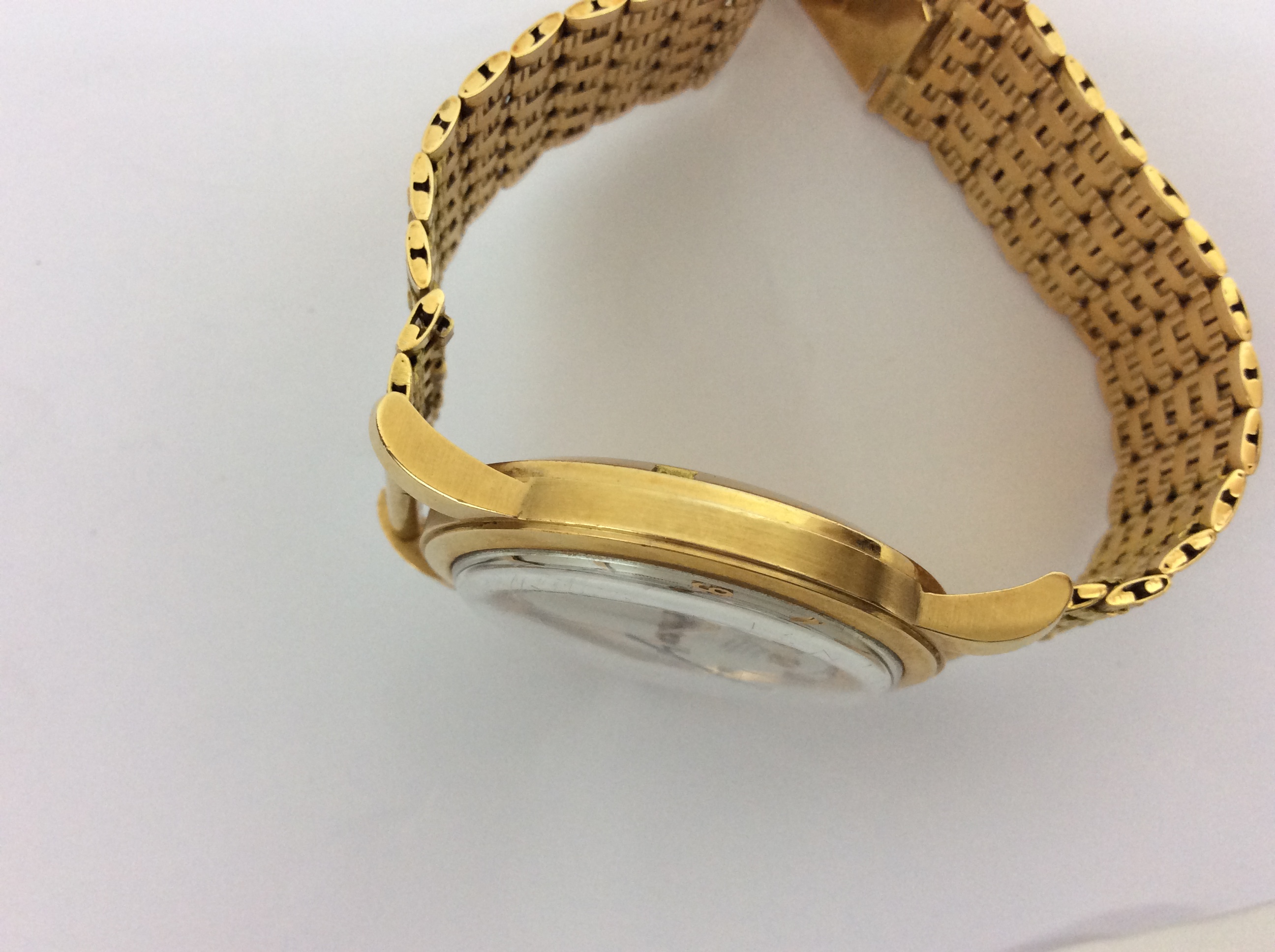 The crown looks like rose gold ( 😕 ). The case looks pretty crisp, with (double) eagle head marking, french for 18k gold, consistent with the Fab. Suisse on the dial.