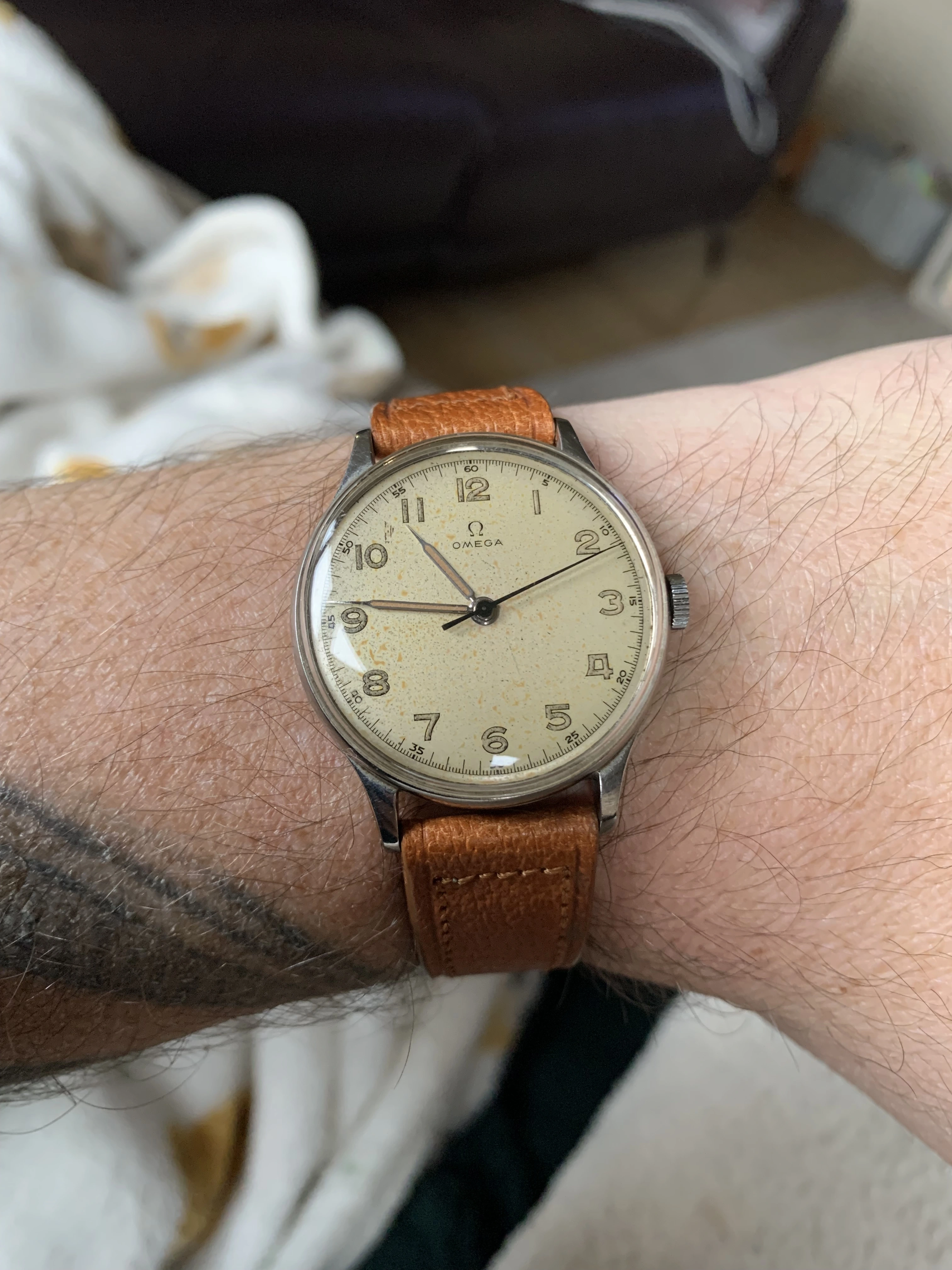 Posts 328 Likes 493 lucentcrow ·Dec 4, 2025 I started with military style watches that led to issued military watches, I gave this to my dad years ago and just put it on a nice strap and putting a bigger crown on as this omega crown isn’t original anyway,