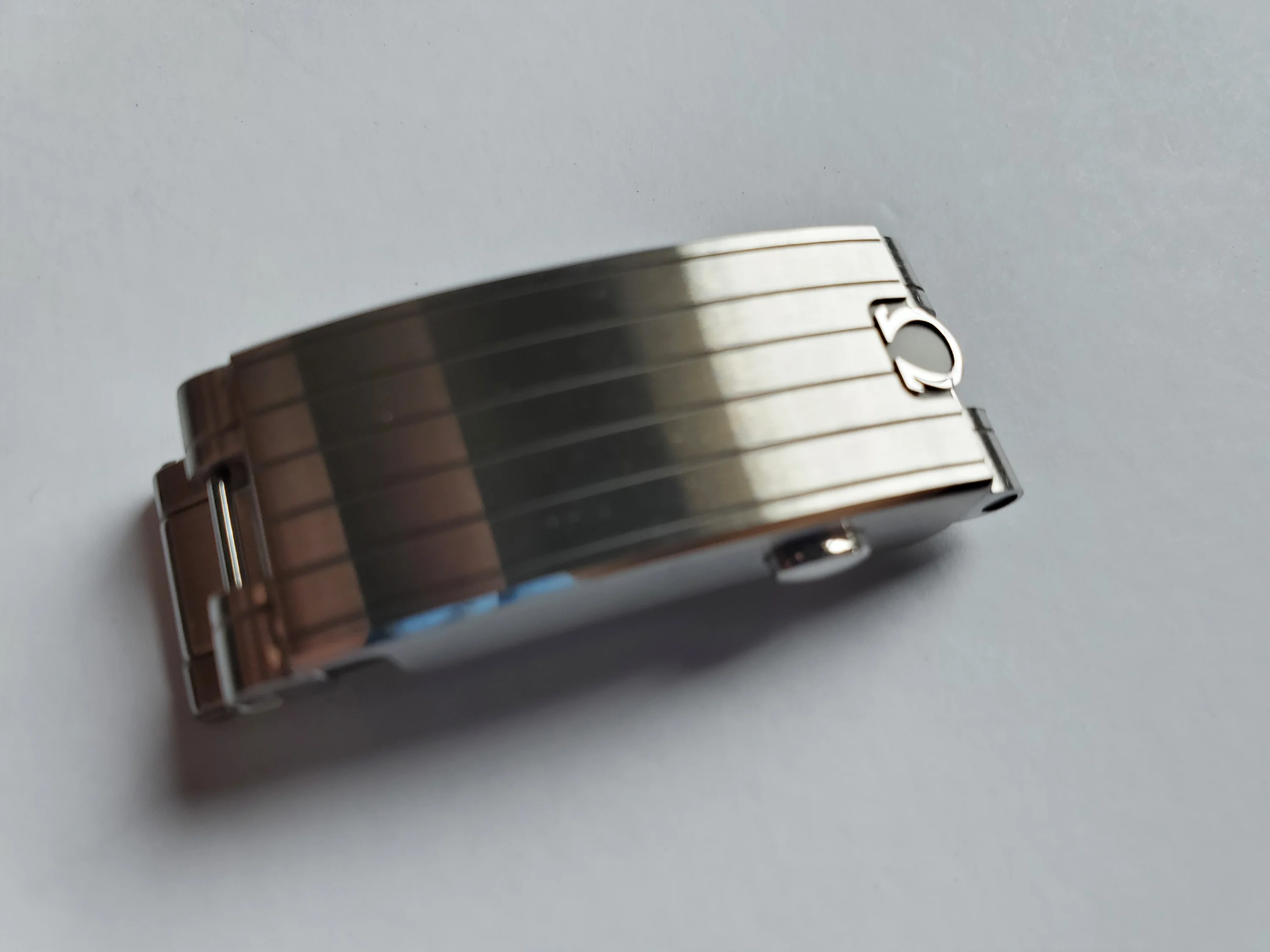 Up for sale is an Omega stainless steel 3861 bracelet clasp micro-adjust upgrade kit. Approx 15mm in width. It's pre-owned, but looks new. Fits the bracelet from the 310.30.42.50.01.001 (hesalite) and 310.30.42.50.01.002 (sapphire). Includes all the necessary parts for a quick replacement-- just remove 4 screws and 2 pins then reverse, as if you were sizing a normal bracelet link. Please ensure compatibility with your watch before purchase.