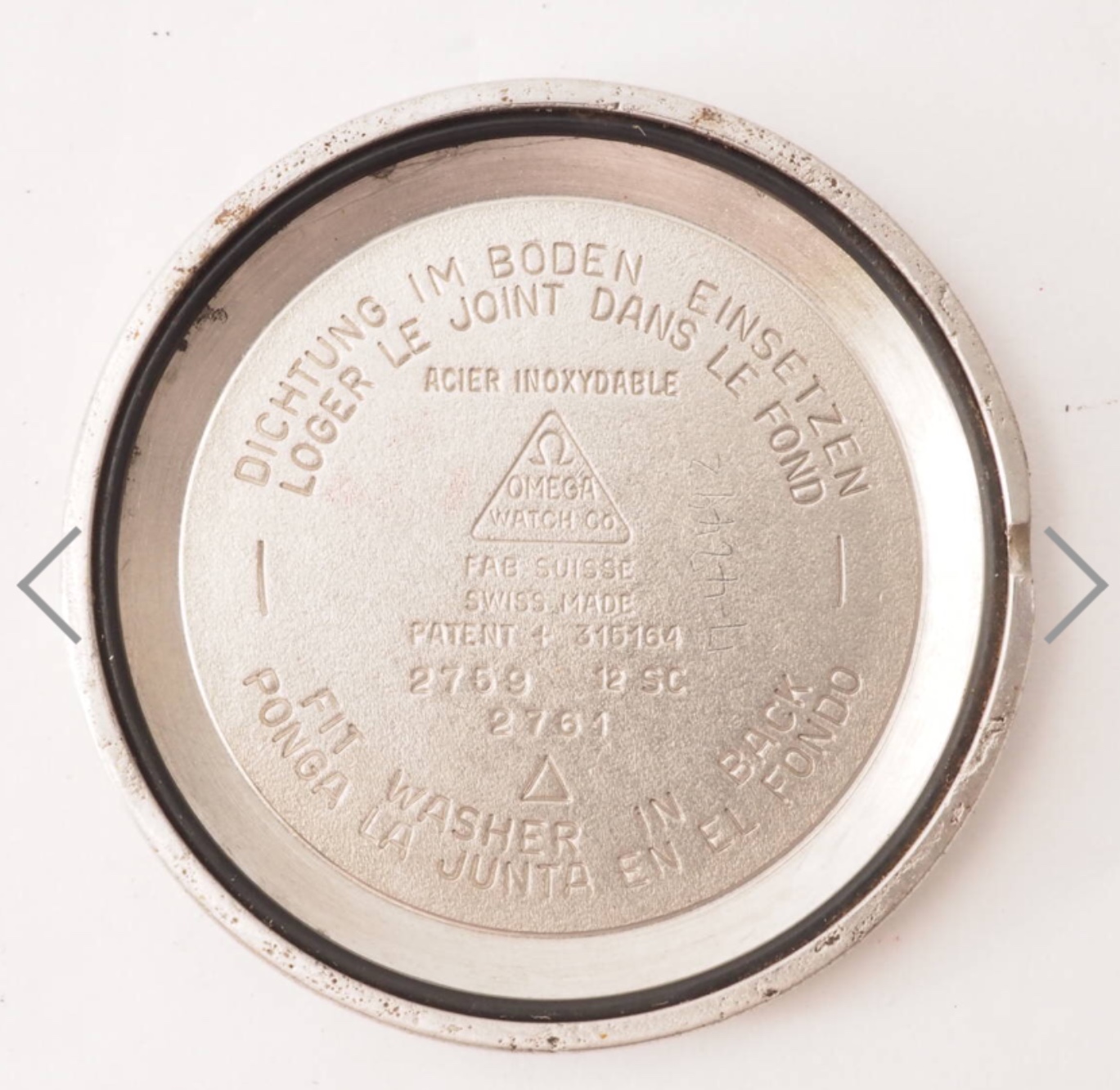 Written in the circle at the bottom and top is the info that the gasket belongs in the caseback (in 4 languages: English, German, Spanish, French). The numbers are the references - the caseback is used for both references 2759 and 2761, two Omega models that used the same case. The “12” is the sub-reference, possibly indicating a dial Lay-out (or a few) and meaning it’s a later model of that reference. “SC” means seconde central - it’s a center second, as opposed to a subdial second. Acier indoxyable means stainless steel. Omega doesn’t need translating, Fab Suisse is the same as Swiss Made, for the patent I’m not entirely sure if that’s the patent for the case, the entire watch, …