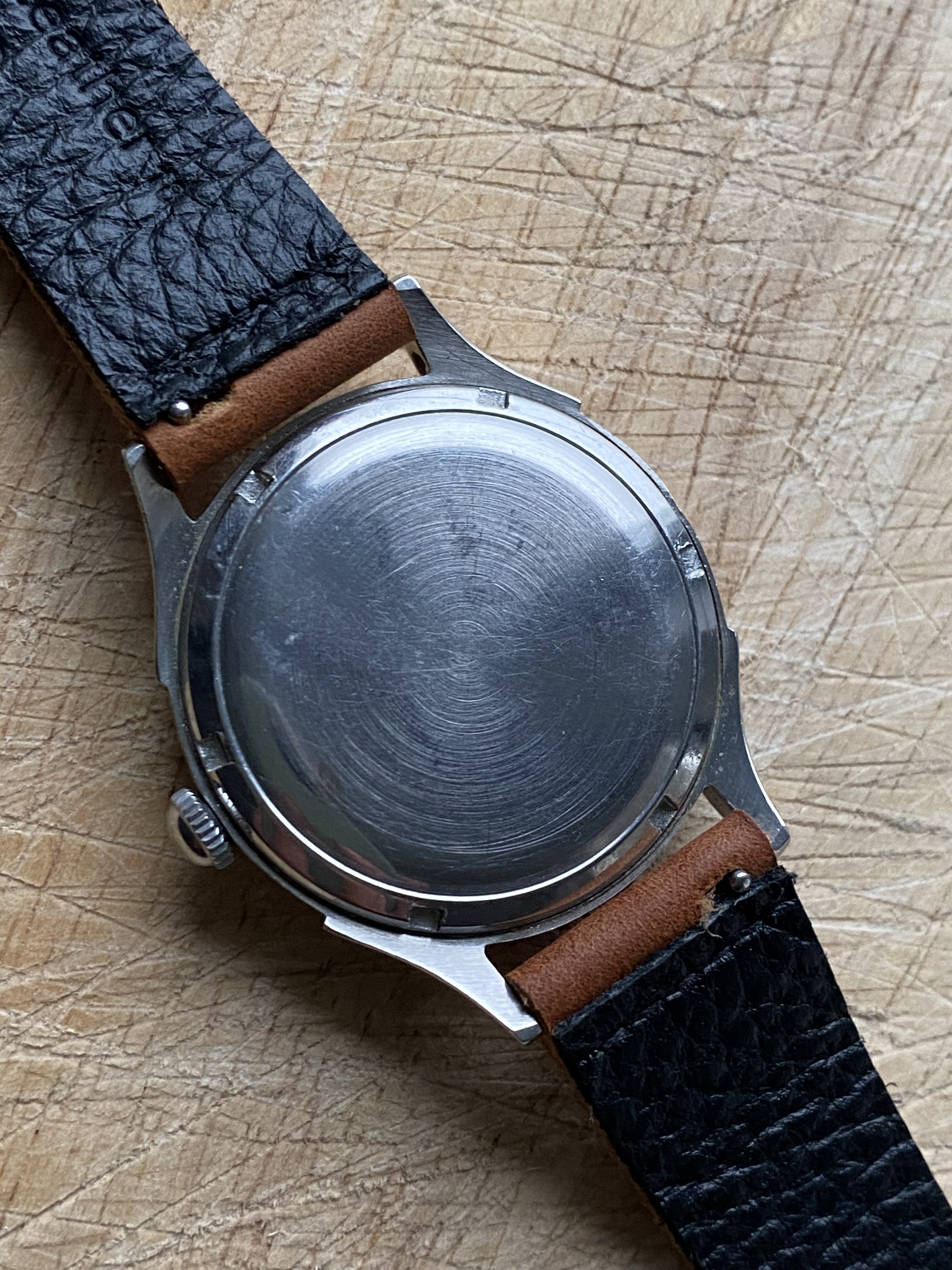Movement: Original cal. 354 automatic in clean condition. It’s the development of the cal. 351, introduced in 1952, if I’m not mistaken, so this should be one of the earlier 354s. It starts quickly, runs well, sets buttery smooth, keeps good time. Service history is unknown, though. Serial dates the watch to 1952.